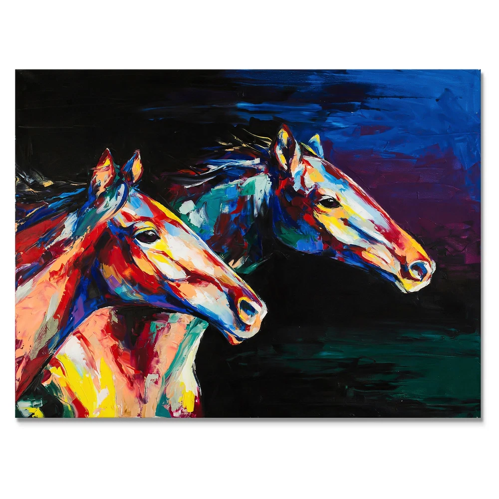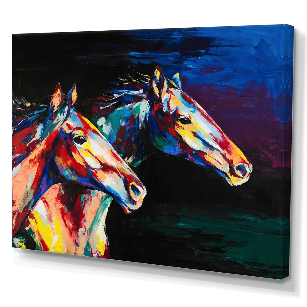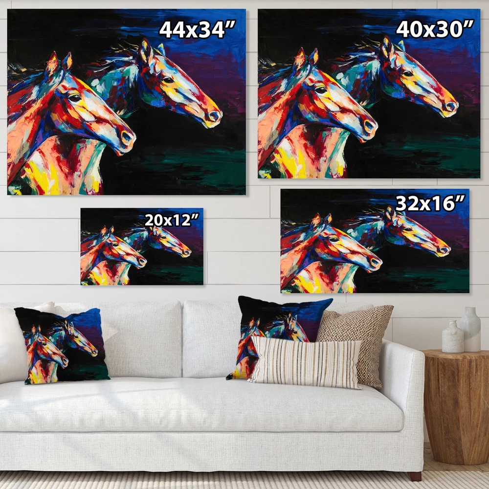 This beautiful Colorful Horses Brush Portrait Canvas Art is printed using the highest quality fade resistant ink on canvas. Every one of our fine art giclee canvas prints is printed on premium quality cotton canvas, using the finest quality inks which will not fade over time. Each giclee print is stretched tightly over a 1 inch wood sub frame for small size prints or a 1.5 inch wood sub frame for large size prints (40x30 60x28 ...) ensuring the canvas is taught and does not buckle. This canvas art print is gallery-wrapped (the design continues on the sides) , giving it a real art gallery feel. All of our canvas prints are carefully packaged with plastic protection, fragile labeling and sturdy boxes to ensure a safe delivery. Every canvas print arrives ready to hang on the wall, with the Free Shipping Over $49.99* Details Designart "Colorful Horses Brush Portrait" Traditional Canvas Wall Art Product Description: This beautiful Colorful Horses Brush Portrait Canvas Art is printed using the highest quality fade resistant ink on canvas. Every one of our fine art giclee canvas prints is printed on premium quality cotton canvas, using the finest quality inks which will not fade over time. Each giclee print is stretched tightly over a 1 inch wood sub frame for small size prints or a 1.5 inch wood sub frame for large size prints (40x30 60x28 ...) ensuring the canvas is taught and does not buckle. This canvas art print is gallery-wrapped (the design continues on the sides) , giving it a real art gallery feel. All of our canvas prints are carefully packaged with plastic protection, fragile labeling and sturdy boxes to ensure a safe delivery. Every canvas print arrives ready to hang on the wall, with the hanging kits included. - Style Traditional - Subject Animals, Animals,Horse - Color Multi-Color - This canvas giclee print is gallery-wrapped (the design continues on the sides) , giving it a real art gallery feel. - Premium quality cotton canvas. - Arrives ready to hang on the wall - Easy to Hang