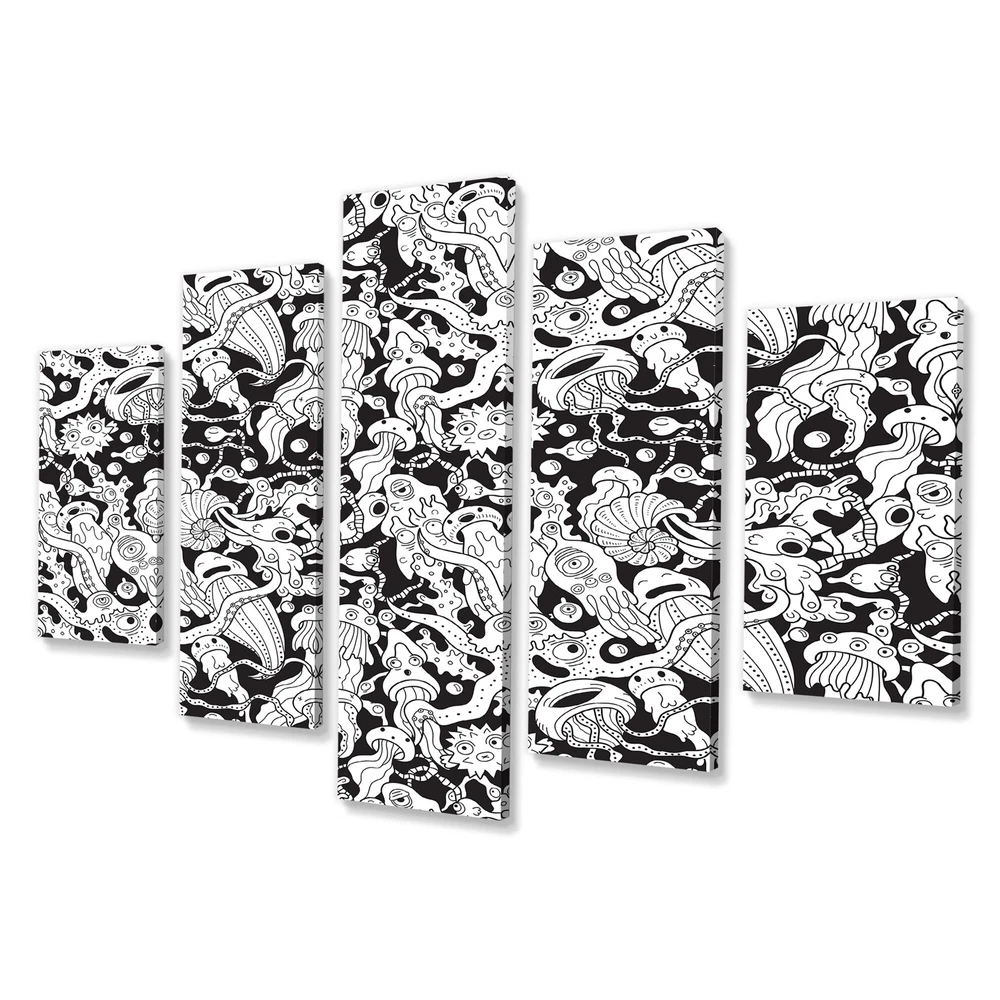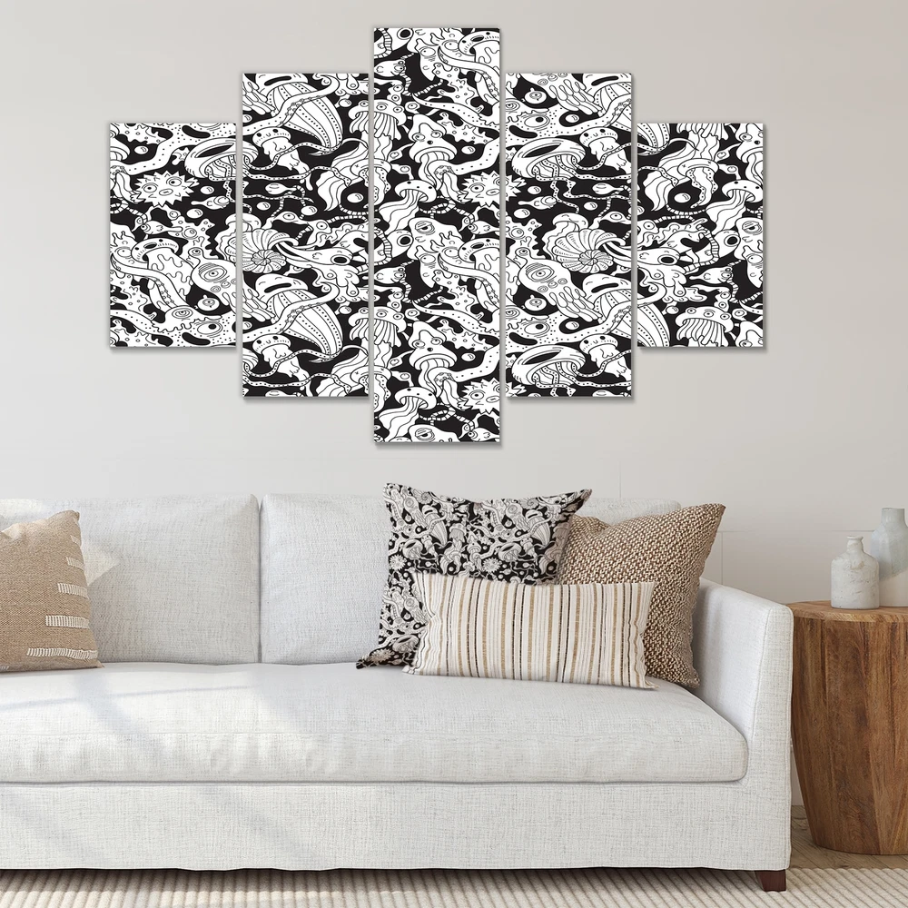 This beautiful Deep Sea Monsters In Black And White Multipanels canvas art is printed using the highest quality fade-resistant ink on canvas. Every one of our fine art giclee canvas prints is printed on premium quality cotton canvas, using the finest quality inks which will not fade over time. Each giclee print is stretched tightly over a 1-inch wood subframe ensuring the canvas is taught and does not buckle. This canvas art print is gallery-wrapped (the design continues on the sides), giving it a real art gallery feel. All of our canvas prints are carefully packaged with plastic protection, fragile labeling, and sturdy boxes to ensure safe delivery. Every canvas print arrives ready to hang on the wall, with the hanging kits included.- Style : Patterned- Subject : Animals, Abstract- Color Free Shipping Over $49.99* Details Designart "Deep Sea Monsters In Black And White" Patterned Canvas Wall Art Print Product Description: This beautiful Deep Sea Monsters In Black And White Multipanels canvas art is printed using the highest quality fade-resistant ink on canvas. Every one of our fine art giclee canvas prints is printed on premium quality cotton canvas, using the finest quality inks which will not fade over time. Each giclee print is stretched tightly over a 1-inch wood subframe ensuring the canvas is taught and does not buckle. This canvas art print is gallery-wrapped (the design continues on the sides), giving it a real art gallery feel. All of our canvas prints are carefully packaged with plastic protection, fragile labeling, and sturdy boxes to ensure safe delivery. Every canvas print arrives ready to hang on the wall, with the hanging kits included. - Style Patterned - Subject Animals, Abstract - Color Black - This canvas giclee print is gallery-wrapped (the design continues on the sides) , giving it a real art gallery feel. - Premium quality cotton canvas. - Arrives ready to hang on the wall - Easy to Hang