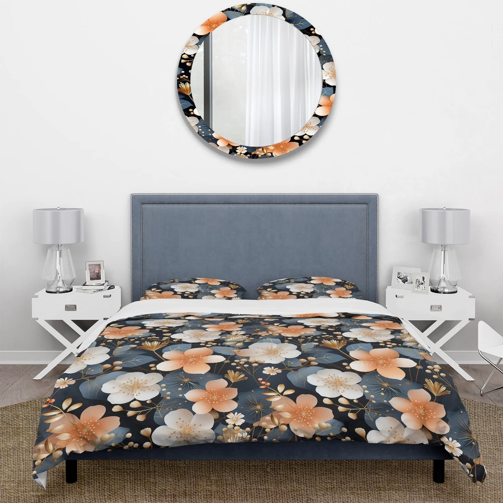 There is just nothing better than a beautiful, inviting comfortable bed after a long day. This Floral bed set is created using the richest colors stemming from high density Italian ink and the softest fabrics making it the perfect way to spruce up your bedroom, while keeping it ultra-comfortable. This luxurious Divine Dreams Floral Pattern III bed design is made with 100% microfiber polyester, making it ultra-soft to ensure you sleep comfortably all night long. This Cottage set includes 1 Bed Cover and 2 Shams and is available in twin, queen and king sizes.This Bedding Set is easily integrated into your already decorated space.What's Included? - Duvet Cover - Shams - Pillow Cases not included but can be buy separately - Comforter Insert NOT INCLUDEDFeatures - Printed Free Shipping Over $49.99* Details Designart "Divine Dreams Floral Pattern III" Green Cottage Bedding Set With Product Description: There is just nothing better than a beautiful, inviting comfortable bed after a long day. This Floral bed set is created using the richest colors stemming from high density Italian ink and the softest fabrics making it the perfect way to spruce up your bedroom, while keeping it ultra-comfortable. This luxurious Divine Dreams Floral Pattern III bed design is made with 100% microfiber polyester, making it ultra-soft to ensure you sleep comfortably all night long. This Cottage set includes 1 Bed Cover and 2 Shams and is available in twin, queen and king sizes. This Bedding Set is easily integrated into your already decorated space. What's Included? - Duvet Cover - Shams - Pillow Cases not included but can be buy separately - Comforter Insert NOT INCLUDED Features - Printed using High Density Italian Ink making the colors extra vibrant. - Made from ultra-soft, lightweight 100% microfiber polyester. Wrinkle resistant fabric. Down-like comfort, odorless. - The Cottage bed set includes one bed cover and two standard pillow shams to create a complete and stylish look. - The elegant and soft colors are both trendy and fun to brighten and update your bedroom. - Made in Canada - Decorative Wall Art and throw pillows to match this set are available but sold separately. - Actual comforter inserts and pillow inserts are not included. This set includes the two pillow shams and comforter cover only. King Dimensions: - 1 Duvet Cover104 inches wide x 88 inches long - 2 King Shams20 inches wide x 36 inches long Queen Dimensions: - 1 Duvet Cover88 inches wide x 88 inches long - 2 Standard Shams16 inches wide x 26 inches long Twin Dimensions: - 1 Duvet Cover68 inches wide x 88 inches long - 1 Standard Sham16 inches wide x 26 inches long Product Details - MaterialPolyester. - PatternFloral - ColorPeach; Green - StyleCottage; traditional - ReversibleNo Directions: Fabric Care InstructionsMachine wash on cold gentle cycle. Wash separately on first wash. Use only non- chlorine bleach when needed. Tumble dry low. Remove promptly.
