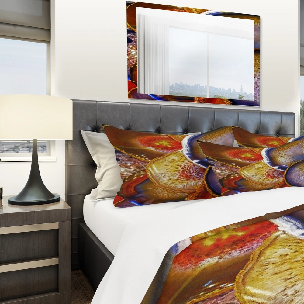 Transform your bedroom into a luxurious retreat with the Designart 'Energy Stones Polished in Flat Shape' Modern & Contemporary Bedding Set. Made with the softest fabrics and high density Italian ink, this set boasts of rich colors that are inviting and comfortable. Crafted from 100% microfiber polyester, the bedding is ultra-soft, lightweight, and wrinkle-resistant, ensuring a restful night's sleep. This set includes one duvet cover and two shams, perfect for creating a complete and stylish look in your bedroom. Available in twin, queen, and king sizes, this set is easily integrated into your already decorated space.Features: Vibrant colors printed using High Density Italian Ink Ultra-soft microfiber polyester that's lightweight and wrinkle-resistant One bed cover and two standard Free Shipping Over $49.99* Details Designart 'Energy Stones Polished in Flat Shape' Modern & Contemporary Bedding Product Description: Transform your bedroom into a luxurious retreat with the Designart 'Energy Stones Polished in Flat Shape' Modern & Contemporary Bedding Set. Made with the softest fabrics and high density Italian ink, this set boasts of rich colors that are inviting and comfortable. Crafted from 100% microfiber polyester, the bedding is ultra-soft, lightweight, and wrinkle-resistant, ensuring a restful night's sleep. This set includes one duvet cover and two shams, perfect for creating a complete and stylish look in your bedroom. Available in twin, queen, and king sizes, this set is easily integrated into your already decorated space. Features: Vibrant colors printed using High Density Italian Ink Ultra-soft microfiber polyester that's lightweight and wrinkle-resistant One bed cover and two standard pillow shams included in the Modern & Contemporary set Trendy and fun colors to brighten and update your bedroom Made in Canada Comforter inserts and pillow inserts not included King Dimensions: 1 Duvet Cover104 inches wide x 88 inches long 2 King Shams20 inches wide x 36 inches long Queen Dimensions: 1 Duvet Cover88 inches wide x 88 inches long 2 Standard Shams16 inches wide x 26 inches long Twin Dimensions: 1 Duvet Cover68 inches wide x 88 inches long 1 Standard Sham16 inches wide x 26 inches long Product Details: MaterialPolyester PatternAbstract ColorBrown StyleAbstract, Modern & Contemporary ReversibleNo Care Instructions: Machine wash on cold gentle cycle. Wash separately on first wash. Use only non-chlorine bleach when needed. Tumble dry low. Remove promptly.