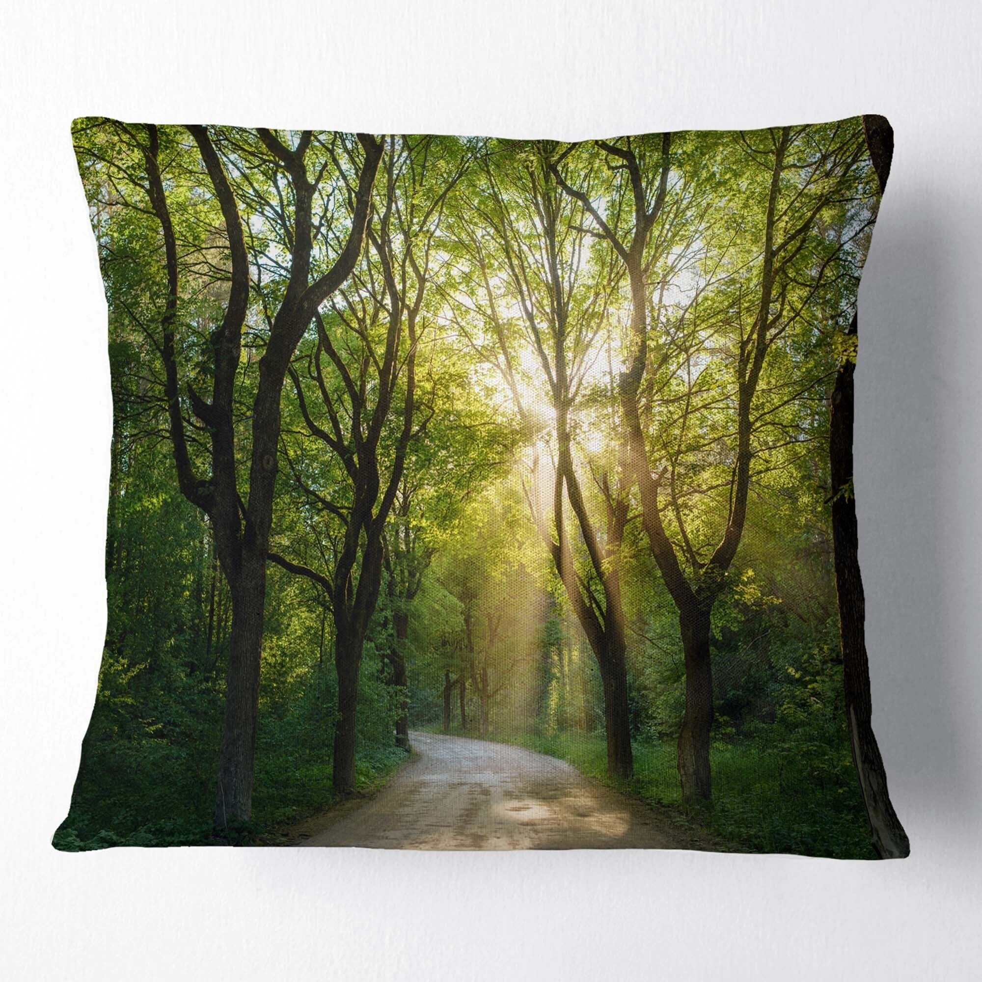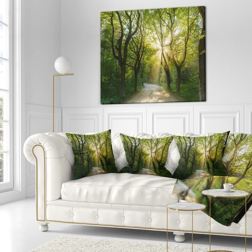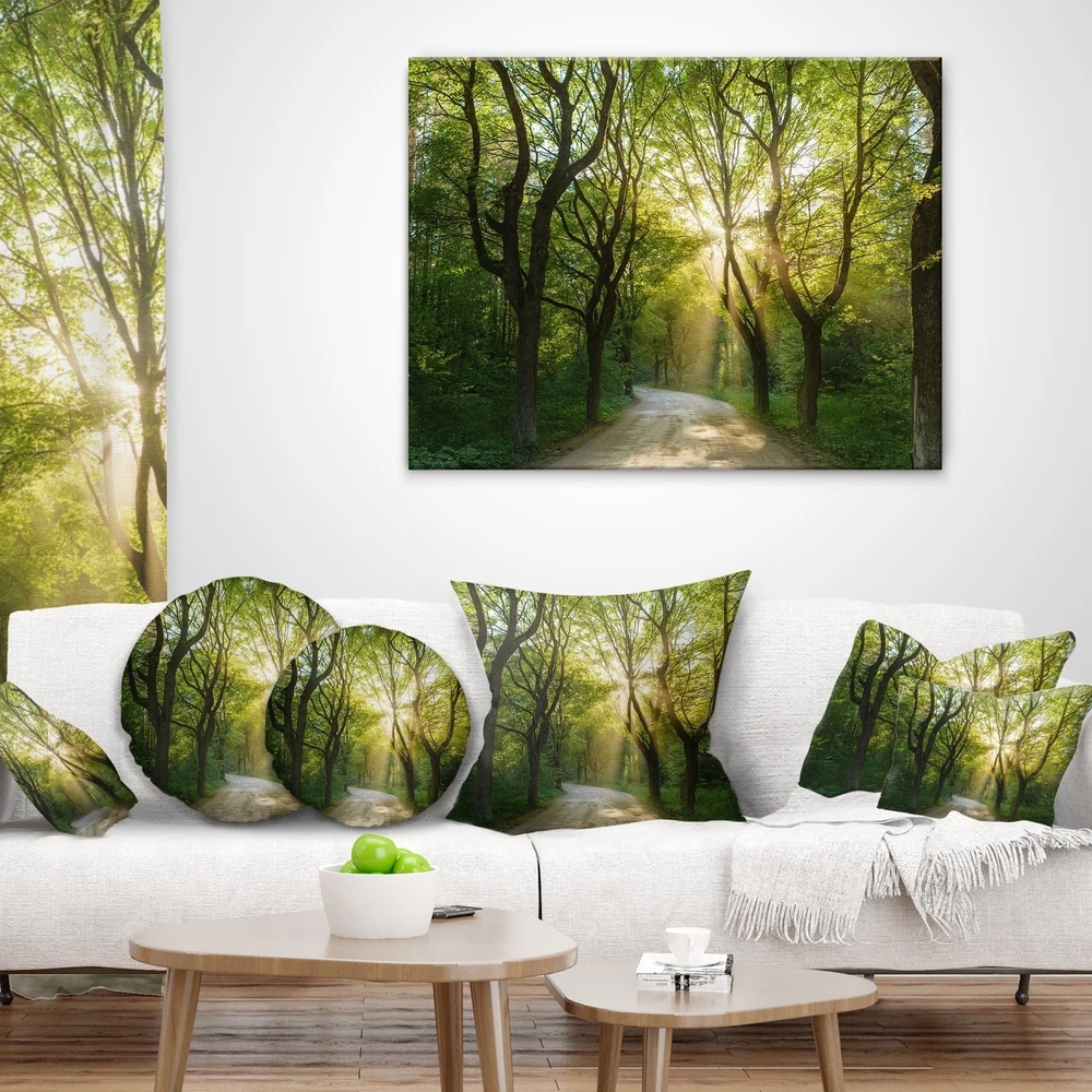 Decorative Throw Pillows for Couch Bed Sofa with Zip CoversAn easy, fun way to add a pop of color or bring new life to any room in your home or office is with these beautiful Landscape throw pillows. Dress up your bed, sofa or lounger with this decorative design art pillows. Perfect as Traditional bedroom décor, lounge décor Cottage living room décor. It adds a fun accent to any room. Throw pillows really do work wonders: they can transform any room from uninviting discomfort to warm and welcoming. And they really do go almost anywhere - arrange a couple on the couch or sofa, place one in your overstuffed chair for extra coziness, toss a couple on the bed and prop yourself up for a great read.These Landscapes pillow is printed using High Color Density Italian inks to create a vibrantly Free Shipping Over $49.99* Details Designart 'Evening in Green Forest' Landscape Printed Throw Pillow Product Description: Decorative Throw Pillows for Couch Bed Sofa with Zip Covers An easy, fun way to add a pop of color or bring new life to any room in your home or office is with these beautiful Landscape throw pillows. Dress up your bed, sofa or lounger with this decorative design art pillows. Perfect as Traditional bedroom décor, lounge décor Cottage living room décor. It adds a fun accent to any room. Throw pillows really do work wondersthey can transform any room from uninviting discomfort to warm and welcoming. And they really do go almost anywhere - arrange a couple on the couch or sofa, place one in your overstuffed chair for extra coziness, toss a couple on the bed and prop yourself up for a great read. These Landscapes pillow is printed using High Color Density Italian inks to create a vibrantly colored, sharp artwork. Features: Perfect accent to any furniture piece Basic shapes with a modern graphic design twist Printed on 100% light weight polyester Cushion filled with 100% polyester fill Wrinkle resistant fabric Zip Closure so you can remove the pillow from its' cover Down-like comfort - Odorless 100% Hypoallergenic Machine Wash Cold Separately, Gently Cycle Only, No bleach, hang to dry Print on Demand with High Density Italian Ink Available in Several sizes Attribute :Traditional, Cottage, Fine Art Giclee Subject Landscapes, Country Charm, Photography