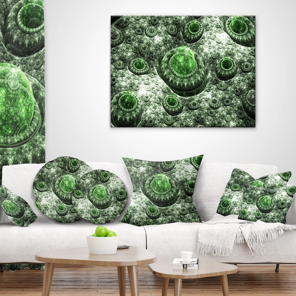 Decorative Throw Pillows for Couch Bed Sofa with Zip CoversAn easy, fun way to add a pop of color or bring new life to any room in your home or office is with these beautiful Abstract throw pillows. Dress up your bed, sofa or lounger with this decorative design art pillows. Perfect as Contemporary bedroom décor, lounge décor Modern living room décor. It adds a fun accent to any room. Throw pillows really do work wonders: they can transform any room from uninviting discomfort to warm and welcoming. And they really do go almost anywhere - arrange a couple on the couch or sofa, place one in your overstuffed chair for extra coziness, toss a couple on the bed and prop yourself up for a great read.These Abstract pillow is printed using High Color Density Italian inks to create a vibrantly Free Shipping Over $49.99* Details Designart 'Exotic Green Fractal Landscape' Abstract Throw Pillow Product Description: Decorative Throw Pillows for Couch Bed Sofa with Zip Covers An easy, fun way to add a pop of color or bring new life to any room in your home or office is with these beautiful Abstract throw pillows. Dress up your bed, sofa or lounger with this decorative design art pillows. Perfect as Contemporary bedroom décor, lounge décor Modern living room décor. It adds a fun accent to any room. Throw pillows really do work wondersthey can transform any room from uninviting discomfort to warm and welcoming. And they really do go almost anywhere - arrange a couple on the couch or sofa, place one in your overstuffed chair for extra coziness, toss a couple on the bed and prop yourself up for a great read. These Abstract pillow is printed using High Color Density Italian inks to create a vibrantly colored, sharp artwork. Features: Perfect accent to any furniture piece Basic shapes with a modern graphic design twist Printed on 100% light weight polyester Cushion filled with 100% polyester fill Wrinkle resistant fabric Zip Closure so you can remove the pillow from its' cover Down-like comfort - Odorless 100% Hypoallergenic Machine Wash Cold Separately, Gently Cycle Only, No bleach, hang to dry Print on Demand with High Density Italian Ink Available in Several sizes Attribute :Contemporary, Modern, Transitional Subject Abstract, Impressionism, Geometric