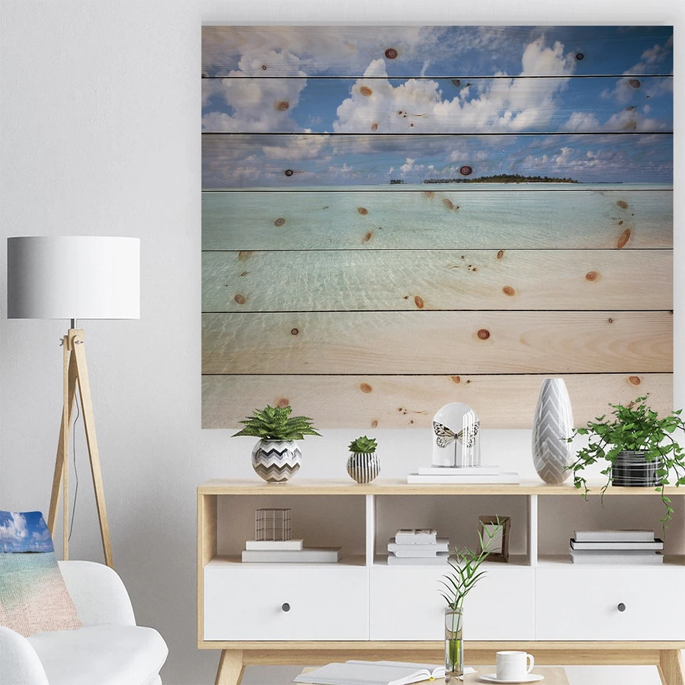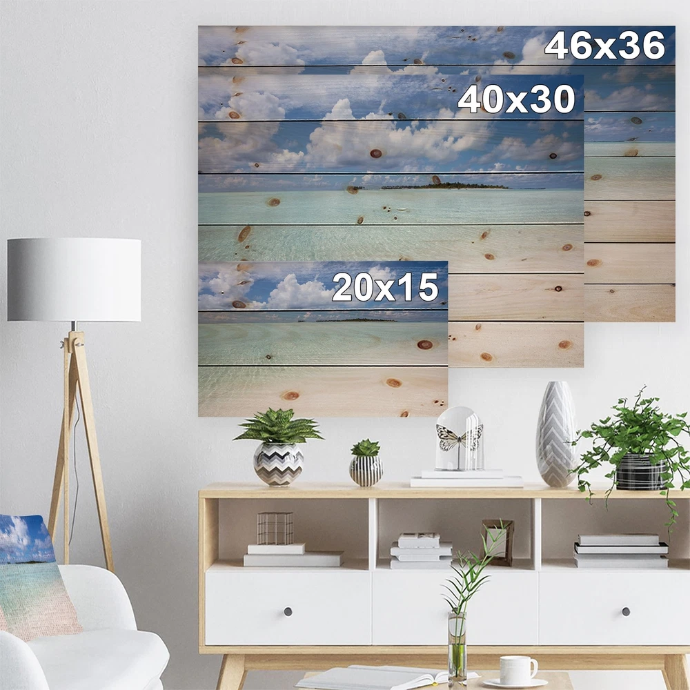 Alas, a modern take on wood wall art. Once typically a wall art piece found only in rustic or farmhouse style decor settings, this Beach wood wall art will easily fit into even the most contemporary of designs.Using the highest quality 6 Color Canon UV Ink, this Nautical & Coastal wood wall art incorporates several aspects of fine design into one stunning piece. With its slightly visible wood grain appearing through the colors and sleekly finished edges, it is a wonderful choice for any room in your home or office, being it a traditional or modern space. As each piece of wood has natural grain differences from the next, each of these wood wall arts is a truly unique addition to your space.Each Wood wall art is 100% handmade in Canada on Natural pine wood, using the highest quality ink Free Shipping Over $49.99* Details Designart 'Fascinating Maldives Empty Seashore' Nautical & Coastal Wood Wall Art Product Description: Alas, a modern take on wood wall art. Once typically a wall art piece found only in rustic or farmhouse style decor settings, this Beach wood wall art will easily fit into even the most contemporary of designs. Using the highest quality 6 Color Canon UV Ink, this Nautical & Coastal wood wall art incorporates several aspects of fine design into one stunning piece. With its slightly visible wood grain appearing through the colors and sleekly finished edges, it is a wonderful choice for any room in your home or office, being it a traditional or modern space. As each piece of wood has natural grain differences from the next, each of these wood wall arts is a truly unique addition to your space. Each Wood wall art is 100% handmade in Canada on Natural pine wood, using the highest quality ink which will not fade over time. Available in Differents sizes - OrientationHorizontal - SubjectBeach TypeWood Wall Art, Fine Art, Wood Fine Art, Print on Plaque - Arrives ready to hang on the wall with hanging kit included - MaterialMade with 100% natural pine wood - StyleNautical & Coastal - Number of Pieces1 - ColorBlue