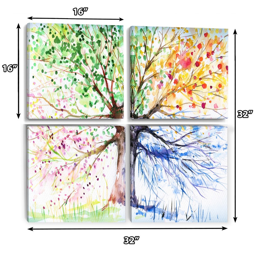 This beautiful Four Seasons Tree Multipanels canvas art is printed using the highest quality fade-resistant ink on canvas. Every one of our fine art giclee canvas prints is printed on premium quality cotton canvas, using the finest quality inks which will not fade over time. Each giclee print is stretched tightly over a 1-inch wood subframe ensuring the canvas is taught and does not buckle. This canvas art print is gallery-wrapped (the design continues on the sides), giving it a real art gallery feel. All of our canvas prints are carefully packaged with plastic protection, fragile labeling, and sturdy boxes to ensure safe delivery. Every canvas print arrives ready to hang on the wall, with the hanging kits included.- Style : Nautical & Coastal- Subject : Floral- Color : Green- This canvas Free Shipping Over $49.99* Details Designart "Four Seasons Tree" Floral Canvas Wall Art Print Product Description: This beautiful Four Seasons Tree Multipanels canvas art is printed using the highest quality fade-resistant ink on canvas. Every one of our fine art giclee canvas prints is printed on premium quality cotton canvas, using the finest quality inks which will not fade over time. Each giclee print is stretched tightly over a 1-inch wood subframe ensuring the canvas is taught and does not buckle. This canvas art print is gallery-wrapped (the design continues on the sides), giving it a real art gallery feel. All of our canvas prints are carefully packaged with plastic protection, fragile labeling, and sturdy boxes to ensure safe delivery. Every canvas print arrives ready to hang on the wall, with the hanging kits included. - Style Nautical & Coastal - Subject Floral - Color Green - This canvas giclee print is gallery-wrapped (the design continues on the sides) , giving it a real art gallery feel. - Premium quality cotton canvas. - Arrives ready to hang on the wall - Easy to Hang