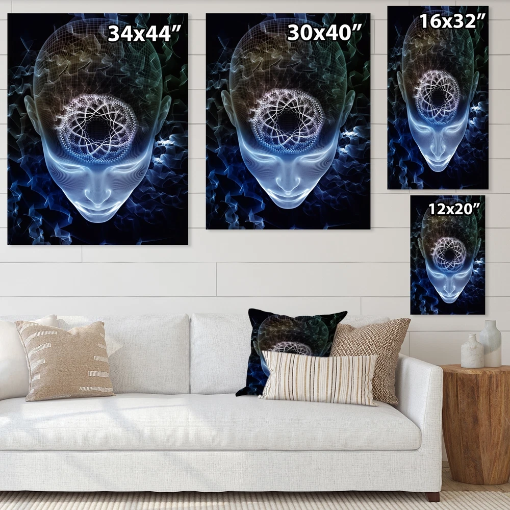 This beautiful Modern Canvas Art is printed using the highest quality fade resistant ink on canvas. Every one of our fine art giclee canvas prints is printed on premium quality cotton canvas, using the finest quality inks which will not fade over time. Each giclee print is stretched tightly over a 1 inch wood sub frame for small size prints or a 1.5 inch wood sub frame for large size prints (40x30 60x28 ...) ensuring the canvas is taught and does not buckle. This canvas art print is gallery-wrapped (the design continues on the sides) , giving it a real art gallery feel. All of our canvas prints are carefully packaged with plastic protection, fragile labeling and sturdy boxes to ensure a safe delivery. Every canvas print arrives ready to hang on the wall, with the hanging kits included.- Free Shipping Over $49.99* Details Designart "Futuristic Blue Face On Black" Modern Canvas Wall Art Print Product Description: This beautiful Modern Canvas Art is printed using the highest quality fade resistant ink on canvas. Every one of our fine art giclee canvas prints is printed on premium quality cotton canvas, using the finest quality inks which will not fade over time. Each giclee print is stretched tightly over a 1 inch wood sub frame for small size prints or a 1.5 inch wood sub frame for large size prints (40x30 60x28 ...) ensuring the canvas is taught and does not buckle. This canvas art print is gallery-wrapped (the design continues on the sides) , giving it a real art gallery feel. All of our canvas prints are carefully packaged with plastic protection, fragile labeling and sturdy boxes to ensure a safe delivery. Every canvas print arrives ready to hang on the wall, with the hanging kits included.- Style Modern & Contemporary, - Subject Abstract, - Color Black, Blue- This canvas giclee print is gallery-wrapped (the design continues on the sides) , giving it a real art gallery feel.- Premium quality cotton canvas.- Arrives ready to hang on the wall- Easy to Hang