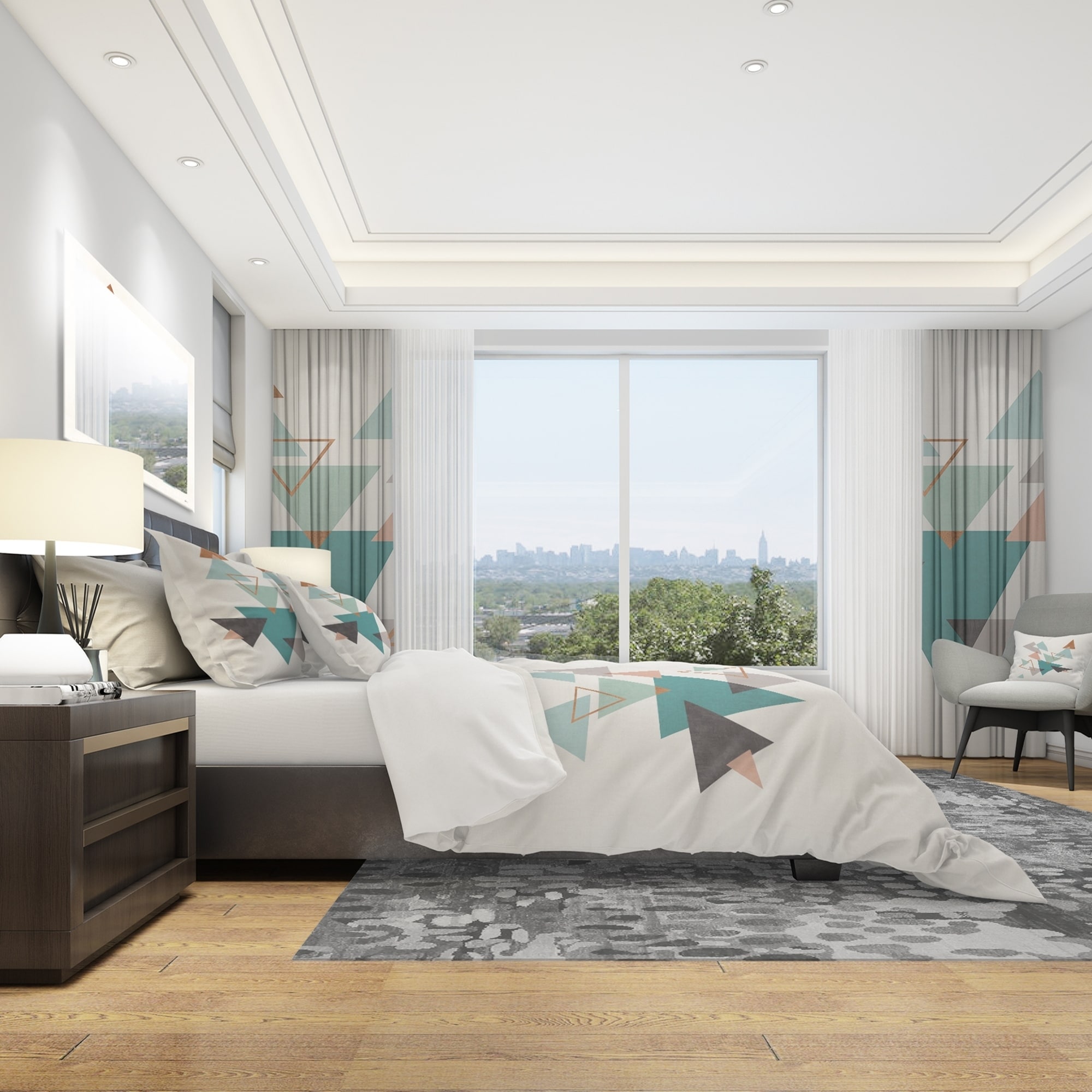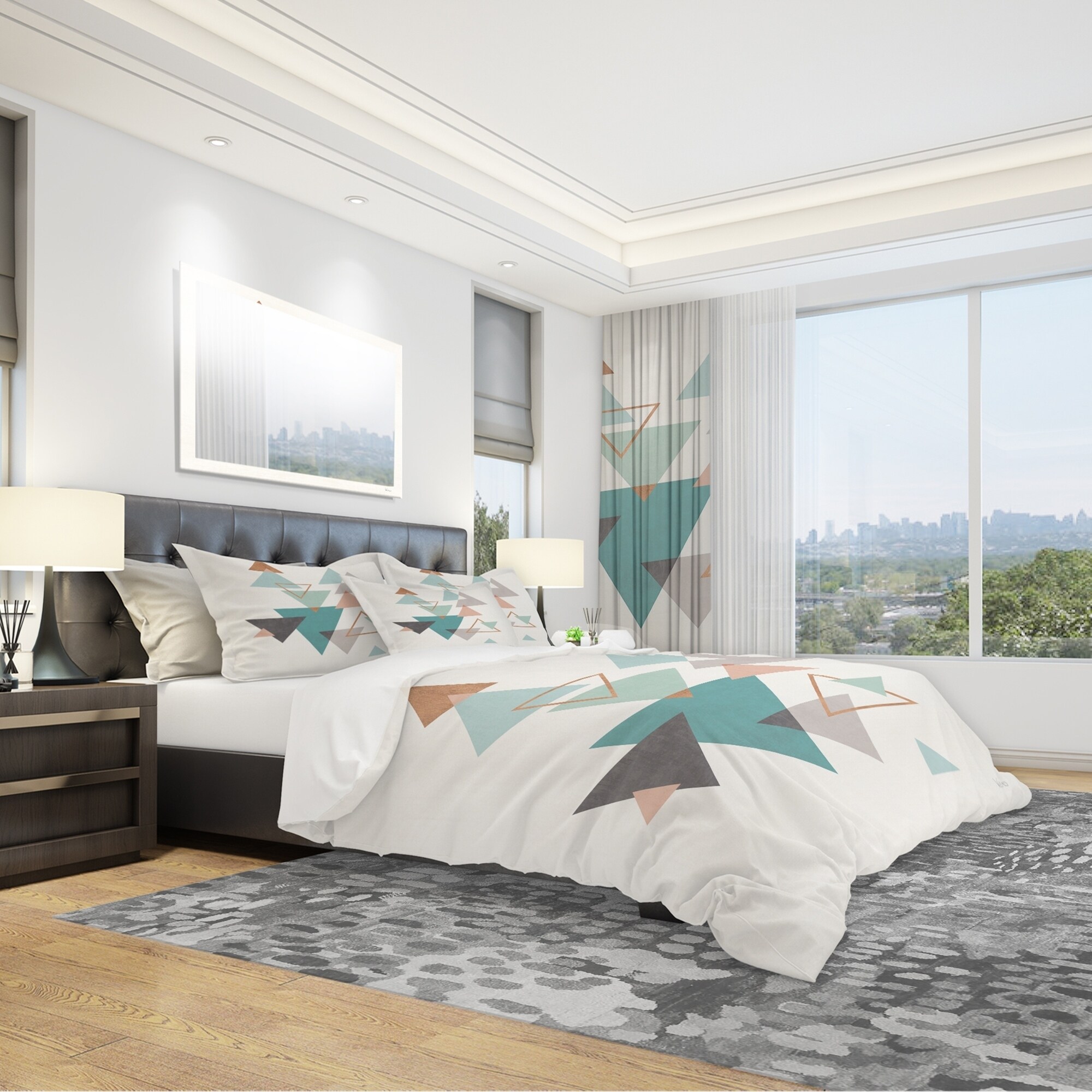 Transform your bedroom into a comfortable and stylish retreat with this Modern & Contemporary bedding set featuring a Geometric Hexagons Pattern V design. The rich colors are printed using High Density Italian Ink on ultra-soft, wrinkle-resistant 100% microfiber polyester, ensuring a luxurious and comfortable night's sleep. This set includes one duvet cover and two pillow shams, available in twin, queen, and king sizes. Mix and match with decorative wall art and throw pillows, both sold separately.Features: High Density Italian Ink creates vibrant colors Wrinkle-resistant, lightweight 100% microfiber polyester for down-like comfort One duvet cover and two pillow shams for a complete look Trendy and fun colors to brighten up any bedroom Made in Canada Comforter insert and pillow cases Free Shipping Over $49.99* Details Designart 'Geometric hexagons Pattern V' Geometric Bedding Set - Duvet Cover & Product Description: Transform your bedroom into a comfortable and stylish retreat with this Modern & Contemporary bedding set featuring a Geometric Hexagons Pattern V design. The rich colors are printed using High Density Italian Ink on ultra-soft, wrinkle-resistant 100% microfiber polyester, ensuring a luxurious and comfortable night's sleep. This set includes one duvet cover and two pillow shams, available in twin, queen, and king sizes. Mix and match with decorative wall art and throw pillows, both sold separately. Features: High Density Italian Ink creates vibrant colors Wrinkle-resistant, lightweight 100% microfiber polyester for down-like comfort One duvet cover and two pillow shams for a complete look Trendy and fun colors to brighten up any bedroom Made in Canada Comforter insert and pillow cases not included Dimensions: KingDuvet cover 104" W x 88" L; King shams 20" W x 36" L QueenDuvet cover 88" W x 88" L; Standard shams 16" W x 26" L TwinDuvet cover 68" W x 88" L; Standard sham 16" W x 26" L Product Details: MaterialPolyester PatternAbstract Geometric Hexagons Pattern V ColorMulti-color StyleTransitional, Modern & Contemporary, Abstract ReversibleNo Directions: Machine wash on cold gentle cycle. Wash separately on first wash. Use only non-chlorine bleach when needed. Tumble dry low. Remove promptly.