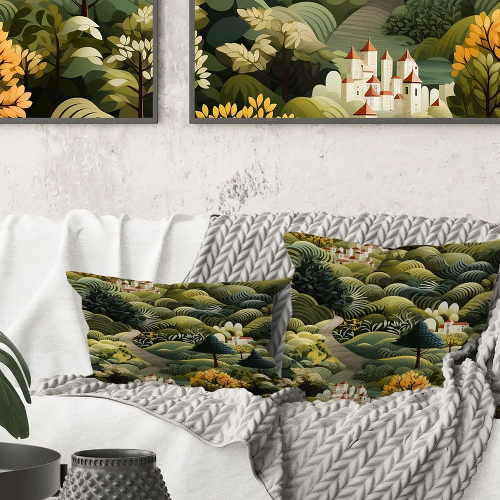 An easy, fun way to add a pop of color or bring new life to any room in your home or office is with these beautiful Modern throw pillows. Dress up your bed, sofa or lounger with this decorative design art pillows. Perfect as Traditional bedroom decor, lounge decor living room decor. It adds a fun accent to any room. Throw pillows really do work wonders: they can transform any room from uninviting discomfort to warm and welcoming. And they really do go almost anywhere - arrange a couple on the couch or sofa, place one in your overstuffed chair for extra coziness, toss a couple on the bed and prop yourself up for a great read. These People pillow is printed using High Color Density Italian inks to create a vibrantly colored, sharp artwork.Features:- Style : Modern- Color : Green- Pattern : Free Shipping Over $49.99* Details Designart "Green Dreamy Forest Landscape" Abstract Printed Throw Pillow Product Description: An easy, fun way to add a pop of color or bring new life to any room in your home or office is with these beautiful Modern throw pillows. Dress up your bed, sofa or lounger with this decorative design art pillows. Perfect as Traditional bedroom decor, lounge decor living room decor. It adds a fun accent to any room. Throw pillows really do work wondersthey can transform any room from uninviting discomfort to warm and welcoming. And they really do go almost anywhere - arrange a couple on the couch or sofa, place one in your overstuffed chair for extra coziness, toss a couple on the bed and prop yourself up for a great read. These People pillow is printed using High Color Density Italian inks to create a vibrantly colored, sharp artwork. Features: - Style Modern - Color Green - Pattern Abstract - Perfect accent to any furniture piece - Basic shapes with a modern graphic design twist - Printed on 100% light weight polyester - Cushion filled with 100% polyester fill - Wrinkle resistant fabric - Zip Closure so you can remove the pillow from its' cover - Down-like comfort - Odorless - 100% Hypoallergenic - Machine Wash Cold Separately, Gently Cycle Only, No bleach, hang to dry - Print on Demand with High Density Italian Ink - Available in Several sizes