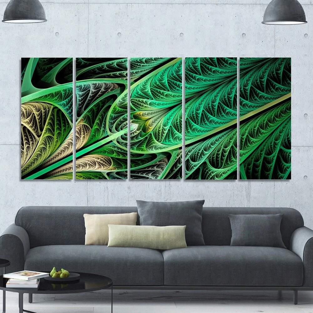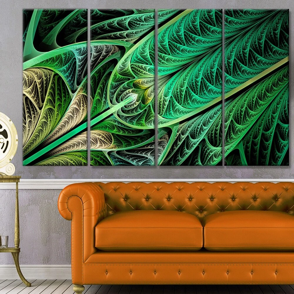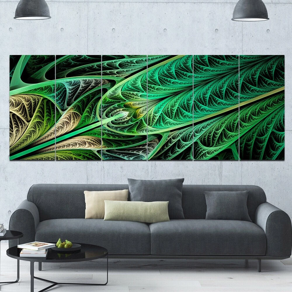 This beautiful Landscapes Canvas Art is printed using the highest quality fade resistant ink on canvas. Every one of our fine art giclee canvas prints is printed on premium quality cotton canvas, using the finest quality inks which will not fade over time. Each giclee print is stretched tightly over a 1 inch wood sub frame ensuring the canvas is taught and does not buckle. This canvas art print is gallery-wrapped (the design continues on the sides) , giving it a real art gallery feel. All of our canvas prints are carefully packaged in inflated cushion wrap, fragile labeling and sturdy boxes to ensure a safe delivery. Every canvas print arrives ready to hang on the wall, with the hanging kits includedShape: RectangleOrientation: HorizontalSubject: AbstractStyle: Contemporary, Fine Art Free Shipping Over $49.99* Details Designart "Green on Black Fractal Stained Glass" Abstract Wall Art Canvas Product Description: This beautiful Landscapes Canvas Art is printed using the highest quality fade resistant ink on canvas. Every one of our fine art giclee canvas prints is printed on premium quality cotton canvas, using the finest quality inks which will not fade over time. Each giclee print is stretched tightly over a 1 inch wood sub frame ensuring the canvas is taught and does not buckle. This canvas art print is gallery-wrapped (the design continues on the sides) , giving it a real art gallery feel. All of our canvas prints are carefully packaged in inflated cushion wrap, fragile labeling and sturdy boxes to ensure a safe delivery. Every canvas print arrives ready to hang on the wall, with the hanging kits included ShapeRectangle OrientationHorizontal SubjectAbstract StyleContemporary, Fine Art Giclee, Modern Dimensions32 inches high x 83 inches wide x 1 inch deep