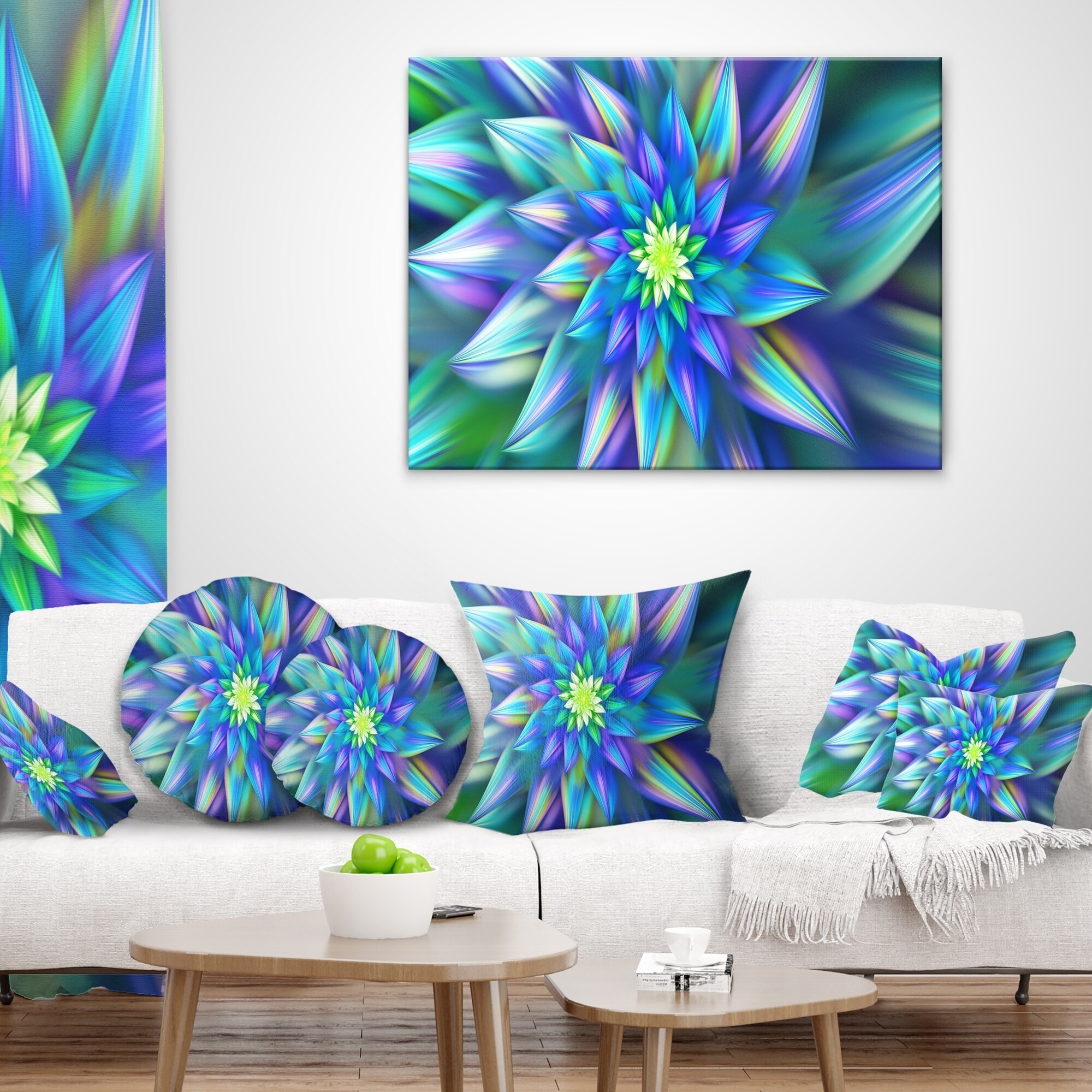 Decorative Throw Pillows for Couch Bed Sofa with Zip CoversAn easy, fun way to add a pop of color or bring new life to any room in your home or office is with these beautiful Floral throw pillows. Dress up your bed, sofa or lounger with this decorative design art pillows. Perfect as Farmhouse bedroom décor, lounge décor Traditional living room décor. It adds a fun accent to any room. Throw pillows really do work wonders: they can transform any room from uninviting discomfort to warm and welcoming. And they really do go almost anywhere - arrange a couple on the couch or sofa, place one in your overstuffed chair for extra coziness, toss a couple on the bed and prop yourself up for a great read.These Floral pillow is printed using High Color Density Italian inks to create a vibrantly colored, Free Shipping Over $49.99* Details Designart 'Huge Light Blue Fractal Flower' Floral Throw Pillow Product Description: Decorative Throw Pillows for Couch Bed Sofa with Zip Covers An easy, fun way to add a pop of color or bring new life to any room in your home or office is with these beautiful Floral throw pillows. Dress up your bed, sofa or lounger with this decorative design art pillows. Perfect as Farmhouse bedroom décor, lounge décor Traditional living room décor. It adds a fun accent to any room. Throw pillows really do work wondersthey can transform any room from uninviting discomfort to warm and welcoming. And they really do go almost anywhere - arrange a couple on the couch or sofa, place one in your overstuffed chair for extra coziness, toss a couple on the bed and prop yourself up for a great read. These Floral pillow is printed using High Color Density Italian inks to create a vibrantly colored, sharp artwork. Features: Perfect accent to any furniture piece Basic shapes with a modern graphic design twist Printed on 100% light weight polyester Cushion filled with 100% polyester fill Wrinkle resistant fabric Zip Closure so you can remove the pillow from its' cover Down-like comfort - Odorless 100% Hypoallergenic Machine Wash Cold Separately, Gently Cycle Only, No bleach, hang to dry Print on Demand with High Density Italian Ink Available in Several sizes Attribute :Farmhouse, Traditional, Modern Subject Floral, Landscapes, Country Charm
