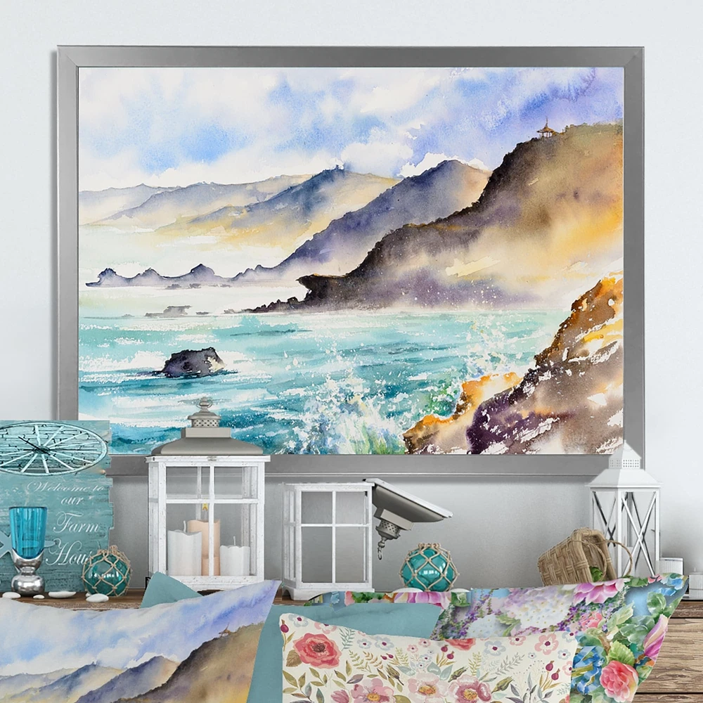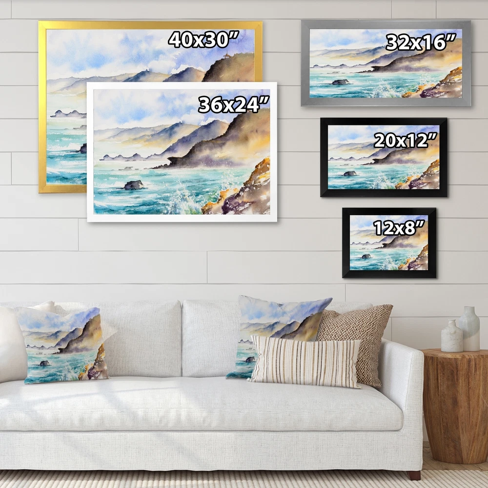 This beautiful Huge Ocean Waves In Coastal Bay Framed wall Art is printed using the highest quality fade resistant ink on canvas. Every one of our Framed Giclee Prints is printed on premium quality canvas, using the finest quality inks which will not fade over time and then mounted and framed on a 1.5 inch wide frame.This framed art print is available in many different color frames. All of our framed art prints are carefully packaged with corner protectors, fragile labeling, and sturdy boxes to ensure a safe delivery. Every framed art arrives ready to hang on the wall, with the hanging kit included.Features:- Style : Lake House- Subject : Cottage, Landscape & Nature, Ocean- Color : Blue- Premium quality cotton canvas mounted.- Available in several frame colors. - Arrives with instructions Free Shipping Over $49.99* Details Designart "Huge Ocean Waves In Coastal Bay" Lake House Framed Wall Decor Product Description: This beautiful Huge Ocean Waves In Coastal Bay Framed wall Art is printed using the highest quality fade resistant ink on canvas. Every one of our Framed Giclee Prints is printed on premium quality canvas, using the finest quality inks which will not fade over time and then mounted and framed on a 1.5 inch wide frame. This framed art print is available in many different color frames. All of our framed art prints are carefully packaged with corner protectors, fragile labeling, and sturdy boxes to ensure a safe delivery. Every framed art arrives ready to hang on the wall, with the hanging kit included. Features: - Style Lake House - Subject Cottage, Landscape & Nature, Ocean - Color Blue - Premium quality cotton canvas mounted. - Available in several frame colors. - Arrives with instructions and hanging kit