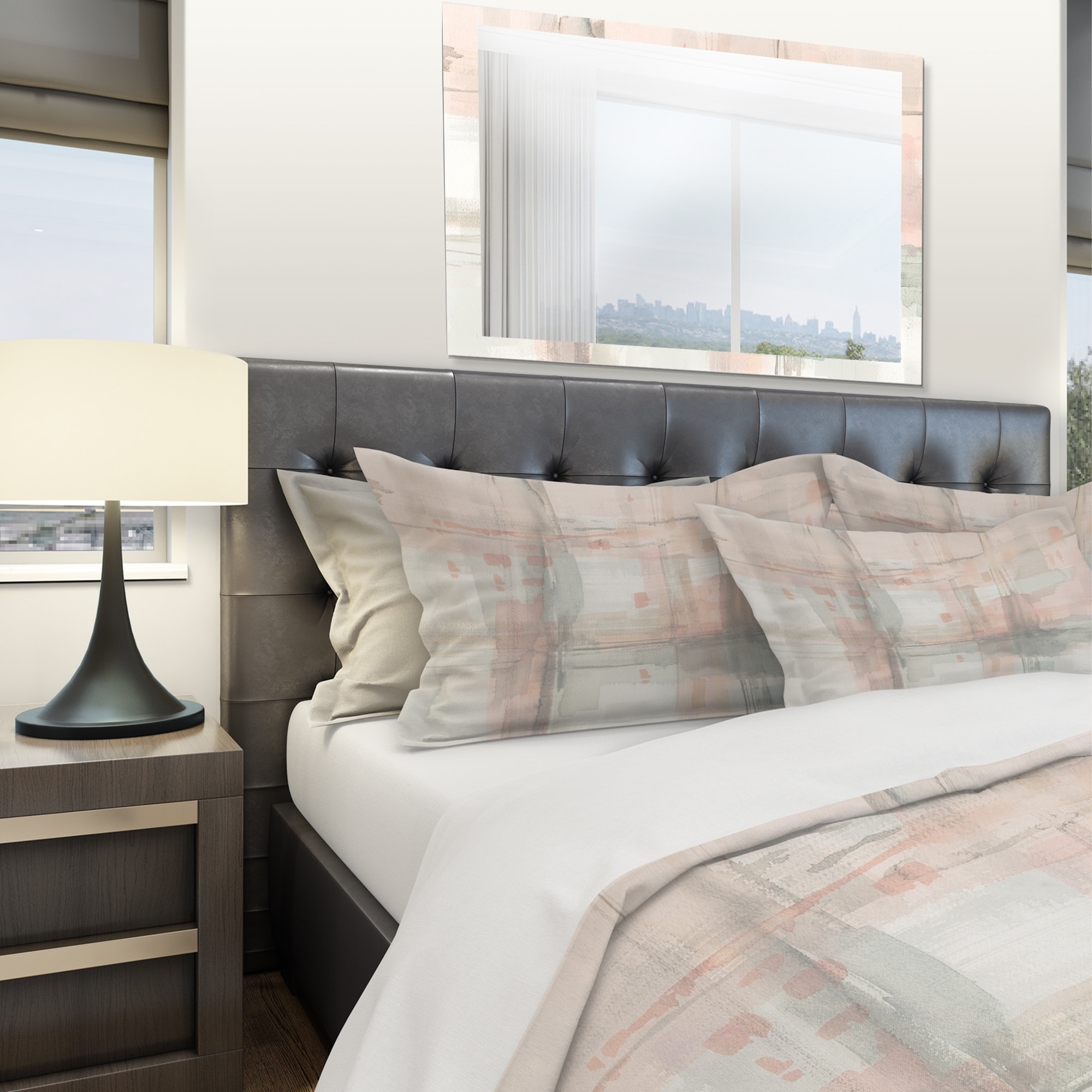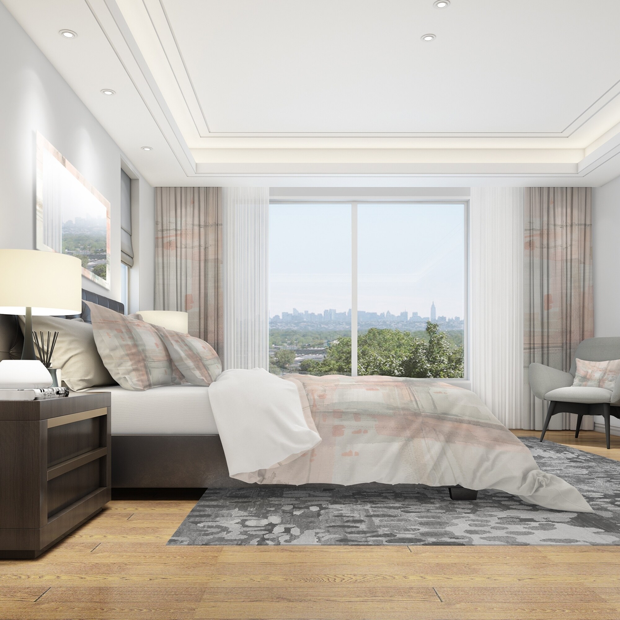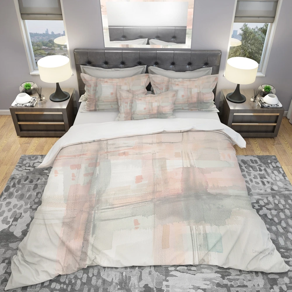 Elevate your bedroom's style with this luxurious and ultra-comfortable bedding set. The Designart 'Intersect II Grey' Shabby Bedding Set features an elegant abstract design printed with high density Italian ink, creating vibrant and long-lasting colors. Made with 100% microfiber polyester, this set is ultra-soft and lightweight, offering a down-like comfort that will keep you cozy all night long. The shabby chic set includes one duvet cover and two standard pillow shams to create a complete and stylish look that is both trendy and fun. Available in twin, queen, and king sizes, this set is wrinkle-resistant and odorless, ensuring easy care and maintenance.Features: Vibrant colors printed with High Density Italian Ink Made of ultra-soft, lightweight 100% microfiber polyester Shabby Chic Free Shipping Over $49.99* Details Designart 'Intersect II Grey' Shabby Bedding Set - Duvet Cover & Shams Product Description: Elevate your bedroom's style with this luxurious and ultra-comfortable bedding set. The Designart 'Intersect II Grey' Shabby Bedding Set features an elegant abstract design printed with high density Italian ink, creating vibrant and long-lasting colors. Made with 100% microfiber polyester, this set is ultra-soft and lightweight, offering a down-like comfort that will keep you cozy all night long. The shabby chic set includes one duvet cover and two standard pillow shams to create a complete and stylish look that is both trendy and fun. Available in twin, queen, and king sizes, this set is wrinkle-resistant and odorless, ensuring easy care and maintenance. Features: Vibrant colors printed with High Density Italian Ink Made of ultra-soft, lightweight 100% microfiber polyester Shabby Chic design includes one duvet cover and two standard pillow shams Trendy and fun colors to brighten and update your bedroom Made in Canada Comforter inserts and pillow inserts not included Machine washable on cold gentle cycle, tumble dry low King: Duvet Cover104 inches wide x 88 inches long 2 King Shams20 inches wide x 36 inches long Queen: Duvet Cover88 inches wide x 88 inches long 2 Standard Shams16 inches wide x 26 inches long Twin: Duvet Cover68 inches wide x 88 inches long 1 Standard Sham16 inches wide x 26 inches long Product Details: MaterialPolyester PatternAbstract ColorGrey StylePink Modern, Modern & Contemporary, Abstract ReversibleNo