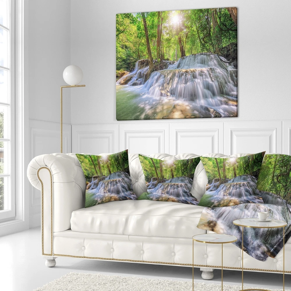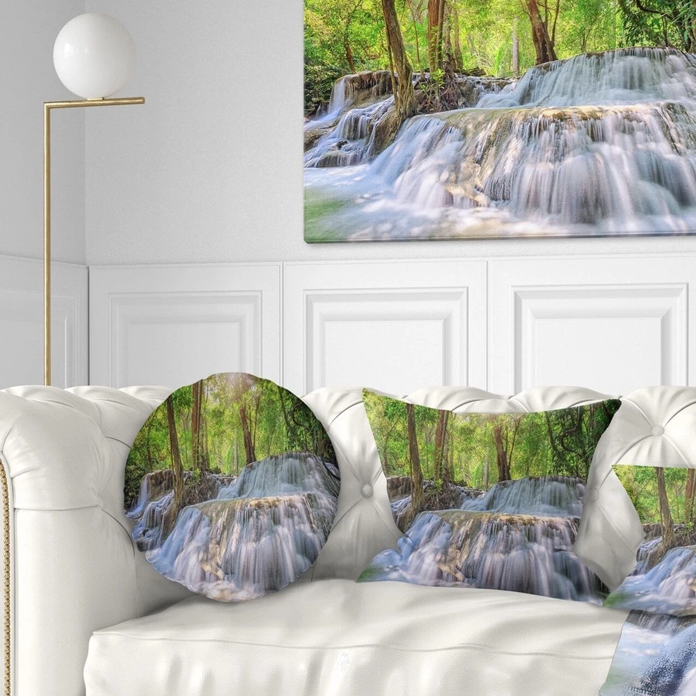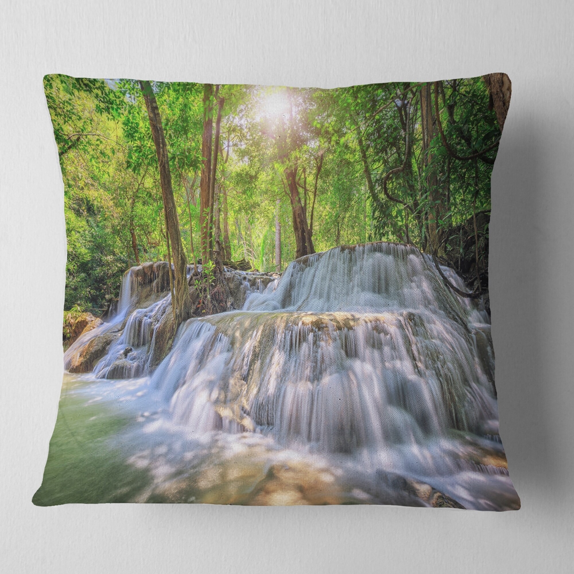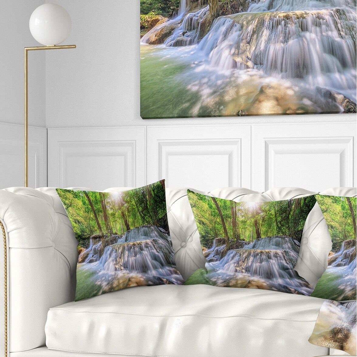 Decorative Throw Pillows for Couch Bed Sofa with Zip CoversAn easy, fun way to add a pop of color or bring new life to any room in your home or office is with these beautiful Landscape throw pillows. Dress up your bed, sofa or lounger with this decorative design art pillows. Perfect as Farmhouse bedroom décor, lounge décor Traditional living room décor. It adds a fun accent to any room. Throw pillows really do work wonders: they can transform any room from uninviting discomfort to warm and welcoming. And they really do go almost anywhere - arrange a couple on the couch or sofa, place one in your overstuffed chair for extra coziness, toss a couple on the bed and prop yourself up for a great read.These Landscapes pillow is printed using High Color Density Italian inks to create a vibrantly Free Shipping Over $49.99* Details Designart 'Kanchanaburi Waterfall' Photography Throw Pillow Product Description: Decorative Throw Pillows for Couch Bed Sofa with Zip Covers An easy, fun way to add a pop of color or bring new life to any room in your home or office is with these beautiful Landscape throw pillows. Dress up your bed, sofa or lounger with this decorative design art pillows. Perfect as Farmhouse bedroom décor, lounge décor Traditional living room décor. It adds a fun accent to any room. Throw pillows really do work wondersthey can transform any room from uninviting discomfort to warm and welcoming. And they really do go almost anywhere - arrange a couple on the couch or sofa, place one in your overstuffed chair for extra coziness, toss a couple on the bed and prop yourself up for a great read. These Landscapes pillow is printed using High Color Density Italian inks to create a vibrantly colored, sharp artwork. Features: Perfect accent to any furniture piece Basic shapes with a modern graphic design twist Printed on 100% light weight polyester Cushion filled with 100% polyester fill Wrinkle resistant fabric Zip Closure so you can remove the pillow from its' cover Down-like comfort - Odorless 100% Hypoallergenic Machine Wash Cold Separately, Gently Cycle Only, No bleach, hang to dry Print on Demand with High Density Italian Ink Available in Several sizes Attribute :Farmhouse, Traditional, Fine Art Giclee Subject Landscapes, Country Charrm, photography