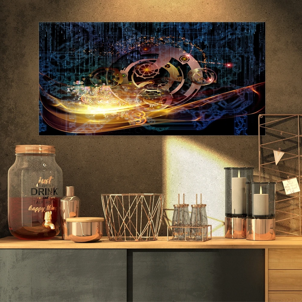 This Large Contemporary Canvas Art is printed using the highest quality fade resistant ink on canvas. Every one of our fine art giclee canvas prints is printed on premium quality cotton canvas, using the finest quality inks which will not fade over time. Each giclee print is stretched tightly over a 1 inch wood sub frame ensuring the canvas is taught and does not buckle. This canvas art print is gallery-wrapped (the design continues on the sides) , giving it a real art gallery feel. All of our canvas prints are carefully packaged with bubble wrap, fragile labeling and sturdy boxes to ensure a safe delivery. Every canvas print arrives ready to hang on the wall, with the hanging kits included. Orientation: Horizontal, Landscape, RectangleSubject: AbstractType: Fine Art Giclee, Fine Art, Free Shipping Over $49.99* Details Designart "Lights of Gears" Abstract Digital Art Canvas Print Product Description: This Large Contemporary Canvas Art is printed using the highest quality fade resistant ink on canvas. Every one of our fine art giclee canvas prints is printed on premium quality cotton canvas, using the finest quality inks which will not fade over time. Each giclee print is stretched tightly over a 1 inch wood sub frame ensuring the canvas is taught and does not buckle. This canvas art print is gallery-wrapped (the design continues on the sides) , giving it a real art gallery feel. All of our canvas prints are carefully packaged with bubble wrap, fragile labeling and sturdy boxes to ensure a safe delivery. Every canvas print arrives ready to hang on the wall, with the hanging kits included. OrientationHorizontal, Landscape, Rectangle SubjectAbstract TypeFine Art Giclee, Fine Art, Canvas Art StyleModern, Abstract, Framed Art FramedFramed ArtistUnknown SizeMedium, Large, Small Factory sealed boxes cannot be returned if opened.