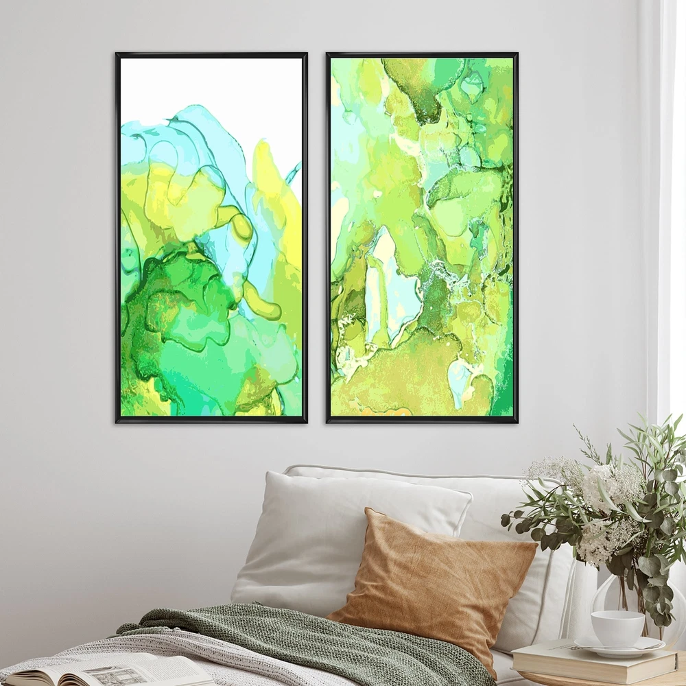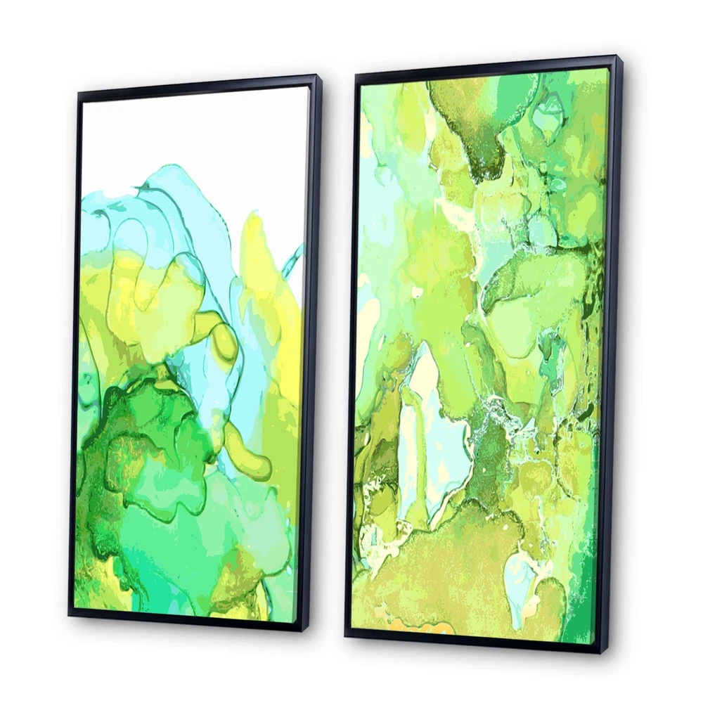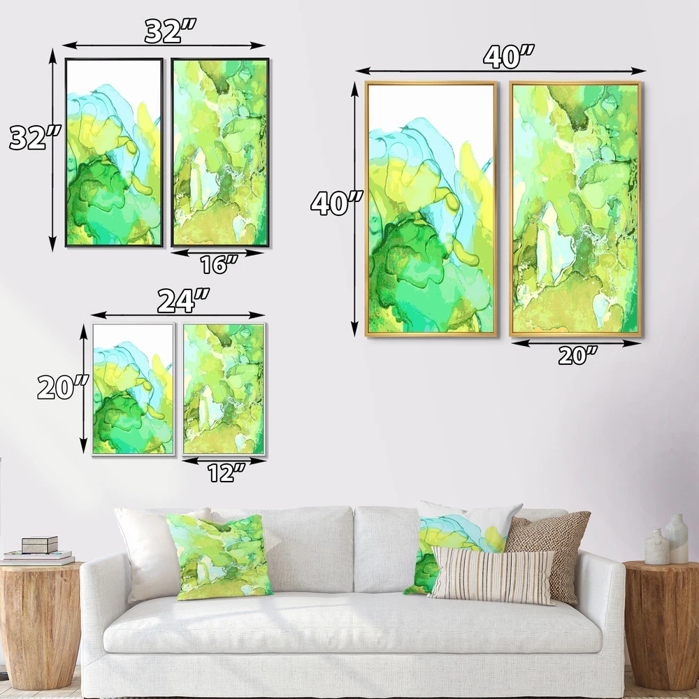 This Abstract Collage is a Collection of 2 Framed Canvas Art printed using the highest quality fade resistant ink on canvas. Every one of our fine art giclee canvas prints is printed on premium quality cotton canvas, using the finest quality inks which will not fade over time. Each giclee print is stretched tightly over a 1 or 1.5 inch wood sub frame ensuring the canvas is taught and does not buckle. The canvas print is inserted into a wood floating frame. All of our Framed canvas prints are carefully packaged with corner protection, fragile labeling and sturdy boxes to ensure safe delivery. Every framed canvas print arrives ready to hang on the wall, with the hanging kits included. This framed art print is available in many different color frames.- Set Include: 2 Pieces of 20"x40" / Free Shipping Over $49.99* Details Designart "Luxury Green and Blue Marble Abstract Flyers Set" Abstract Framed Art Product Description: This Abstract Collage is a Collection of 2 Framed Canvas Art printed using the highest quality fade resistant ink on canvas. Every one of our fine art giclee canvas prints is printed on premium quality cotton canvas, using the finest quality inks which will not fade over time. Each giclee print is stretched tightly over a 1 or 1.5 inch wood sub frame ensuring the canvas is taught and does not buckle. The canvas print is inserted into a wood floating frame. All of our Framed canvas prints are carefully packaged with corner protection, fragile labeling and sturdy boxes to ensure safe delivery. Every framed canvas print arrives ready to hang on the wall, with the hanging kits included. This framed art print is available in many different color frames. - Set Include2 Pieces of 20"x40" / 16"x32" / 12"x20" - Overall Dimensions (WxH) 40"x40" / 32"x32" / 24"x20" - Style Glam - Subject Abstract - Color Green - This canvas giclee print is gallery-wrapped (the design continues on the sides) , giving it a real art gallery feel. - Premium quality cotton canvas. - Arrives ready to hang on the wall - Easy to Hang