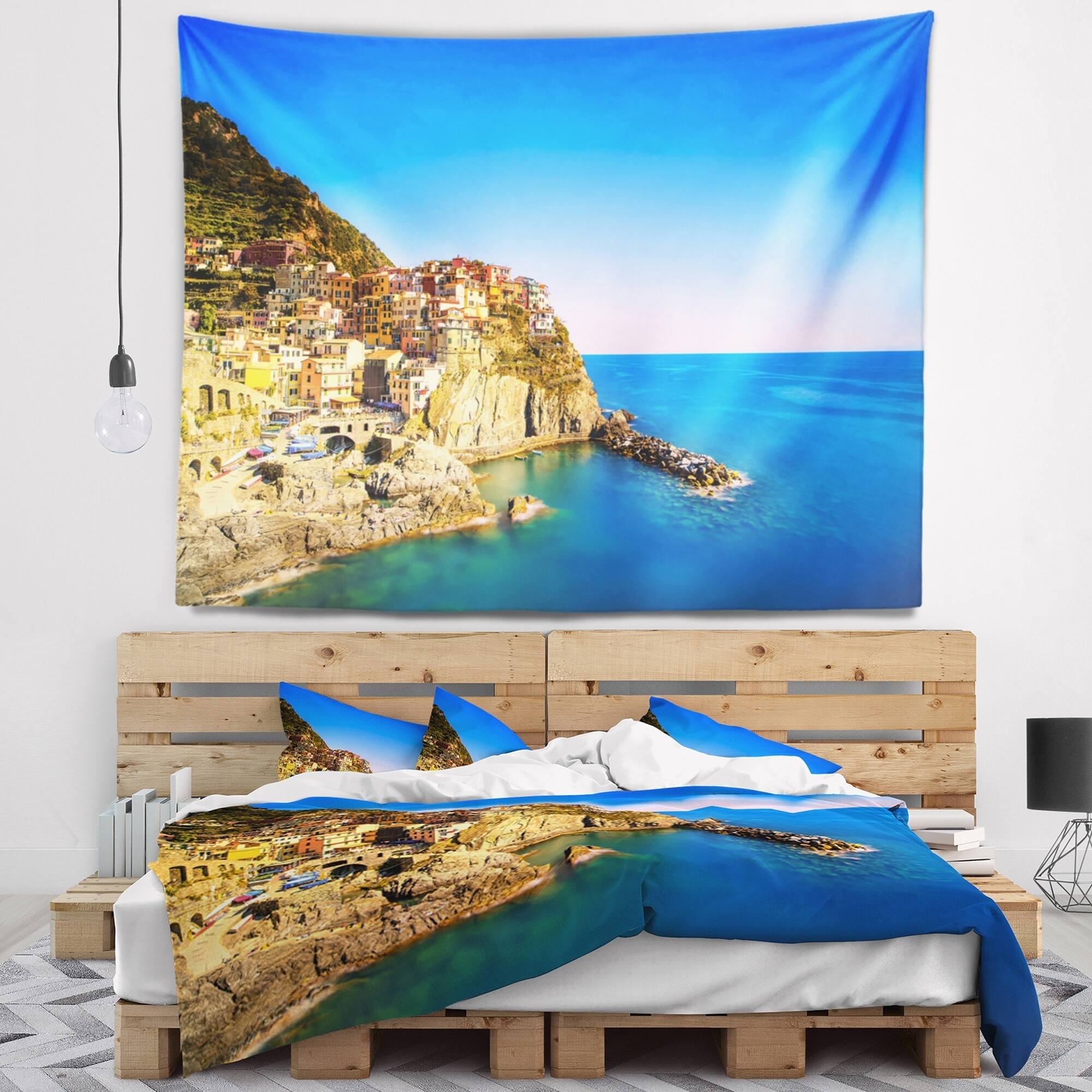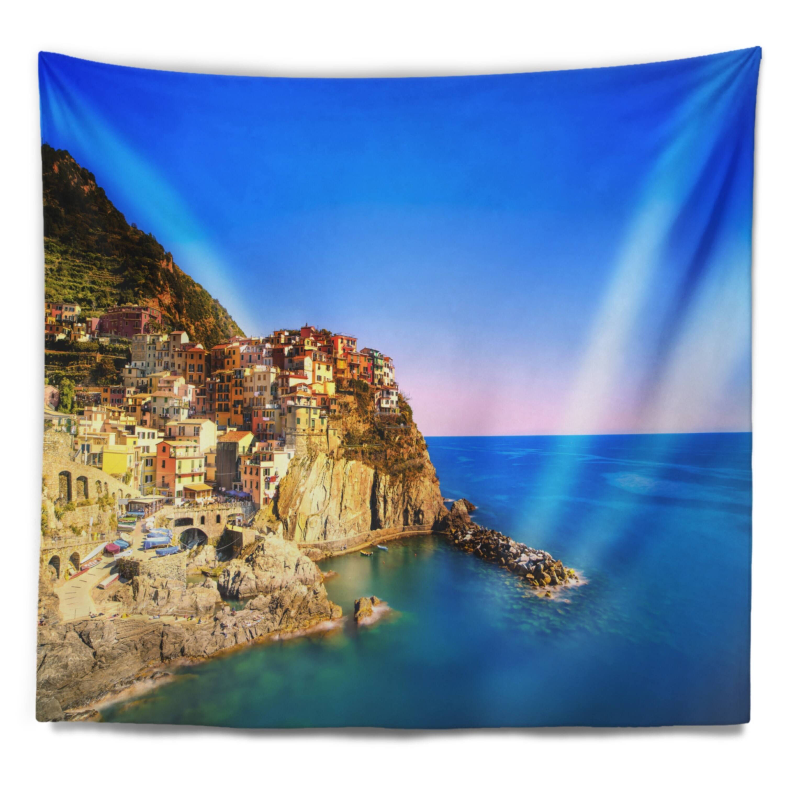 For a quick and easy home or office makeover, our wall tapestries are a great way to add a modern touch of décor and a pop of color to any room in your home or office. This Sea & Shore wall tapestry is created on light weight, wrinkle resistant, polyester fabric making it very easy to install on any wall.These Beach wall tapestry is printed using High Color Density Italian inks to create a vibrantly colored, sharp artwork.This beautiful Manarola Village Seashore Italy wall hanging artwork can also be used as a Bedspread, Bed Cover, Room Décor Tapestry, Beach Throw.This Sea & Shore tapestry will easily change the plainest wall into an art display. This tapestry serves as a beautiful piece of wall art and through our vast selection of designs and such easy hanging, can be changed frequently Free Shipping Over $49.99* Details Designart 'Manarola Village Seashore Italy' Seashore Wall Tapestry Product Description: For a quick and easy home or office makeover, our wall tapestries are a great way to add a modern touch of décor and a pop of color to any room in your home or office. This Sea & Shore wall tapestry is created on light weight, wrinkle resistant, polyester fabric making it very easy to install on any wall. These Beach wall tapestry is printed using High Color Density Italian inks to create a vibrantly colored, sharp artwork. This beautiful Manarola Village Seashore Italy wall hanging artwork can also be used as a Bedspread, Bed Cover, Room Décor Tapestry, Beach Throw. This Sea & Shore tapestry will easily change the plainest wall into an art display. This tapestry serves as a beautiful piece of wall art and through our vast selection of designs and such easy hanging, can be changed frequently with the seasons or simply your mood. Features Created on 100% lightweight polyester fabric Anti-wrinkle Easy to hang Vibrant rich colors and sharp details Available in multiple sizes and designs Print on Demand with High Density Italian Ink Available in Several sizes Attribute Beach, Coastal, Tropical Subject Sea & Shore, Nautical, Landscapes Care Instructions: - Hand wash or machine wash on gentle cycle.