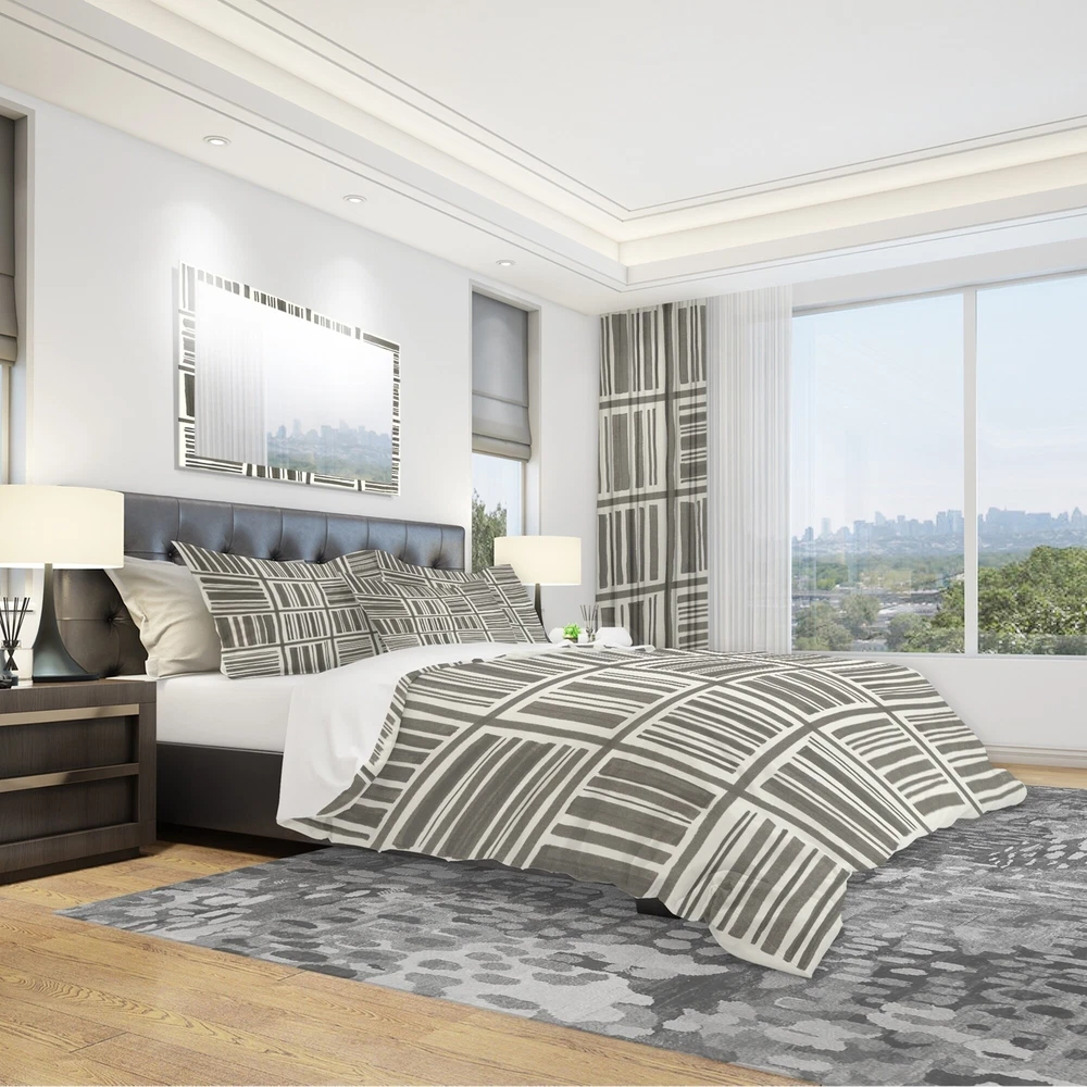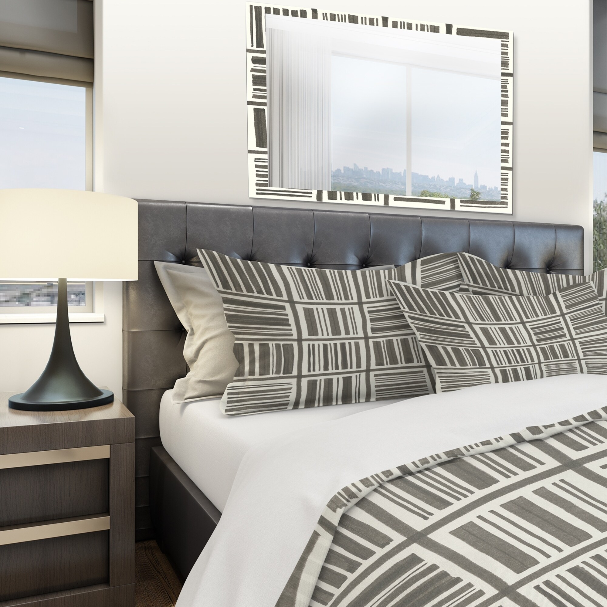 Transform your bedroom into an ultra-comfortable and stylish space with this Geometric Bedding Set. Printed with High Density Italian Ink, the colors of this Mid-Century Modern bed set are extra vibrant, creating a luxurious and inviting atmosphere. Made from 100% microfiber polyester, this set includes one bed cover and two pillow shams that are ultra-soft, lightweight, and wrinkle-resistant. Available in twin, queen, and king sizes, this Transitional set is both trendy and fun, adding a touch of elegance to any room. Made in Canada.Features: Vibrant colors printed with High Density Italian Ink Ultra-soft, lightweight, and wrinkle-resistant 100% microfiber polyester material Includes one bed cover and two pillow shams for a complete and stylish look Trendy and fun geometric pattern in Free Shipping Over $49.99* Details Designart 'Minimalist Graphics I' Geometric Bedding Set - Duvet Cover & Shams Product Description: Transform your bedroom into an ultra-comfortable and stylish space with this Geometric Bedding Set. Printed with High Density Italian Ink, the colors of this Mid-Century Modern bed set are extra vibrant, creating a luxurious and inviting atmosphere. Made from 100% microfiber polyester, this set includes one bed cover and two pillow shams that are ultra-soft, lightweight, and wrinkle-resistant. Available in twin, queen, and king sizes, this Transitional set is both trendy and fun, adding a touch of elegance to any room. Made in Canada. Features: Vibrant colors printed with High Density Italian Ink Ultra-soft, lightweight, and wrinkle-resistant 100% microfiber polyester material Includes one bed cover and two pillow shams for a complete and stylish look Trendy and fun geometric pattern in elegant and soft colors Made in Canada Actual comforter and pillow inserts not included Decorative wall art and matching throw pillows available but sold separately King: 1 Duvet Cover104 inches wide x 88 inches long 2 King Shams20 inches wide x 36 inches long Queen: 1 Duvet Cover88 inches wide x 88 inches long 2 Standard Shams16 inches wide x 26 inches long Twin: 1 Duvet Cover68 inches wide x 88 inches long 1 Standard Sham16 inches wide x 26 inches long Product Details: MaterialPolyester PatternGeometric ColorBlack StyleTransitional, Mid-Century Modern, Abstract ReversibleNo Directions: Machine wash on cold gentle cycle. Wash separately on first wash. Use only non-chlorine bleach when needed. Tumble dry low. Remove promptly.