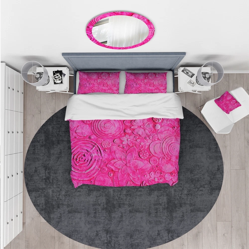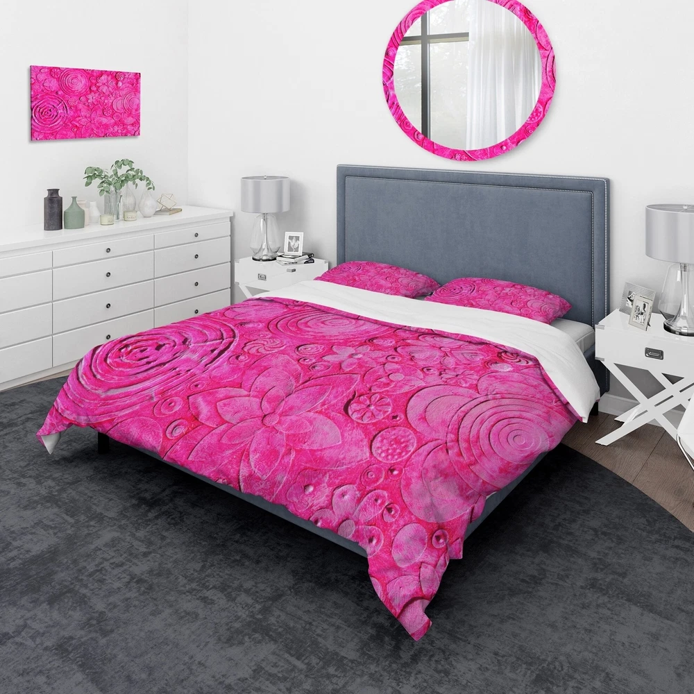 Transform your bedroom into a cozy haven with this Modern & Contemporary Floral Bedding Set. Created using high density Italian ink and 100% microfiber polyester, this set is ultra-soft and wrinkle-resistant for a comfortable night's sleep. The set includes one duvet cover and two shams, available in twin, queen, and king sizes. The vibrant colors make it easy to integrate into your already decorated space. Made in Canada, this set does not include a comforter insert or pillow cases, but they can be purchased separately.Features: High Density Italian Ink for extra vibrant colors Ultra-soft, lightweight 100% microfiber polyester Includes one duvet cover and two standard pillow shams Trendy and fun colors to update your bedroom Made in Canada Comforter inserts and pillow inserts not Free Shipping Over $49.99* Details Designart 'Mix Of Summer hawaiin Flowers' Floral Bedding Set - Duvet Cover & Product Description: Transform your bedroom into a cozy haven with this Modern & Contemporary Floral Bedding Set. Created using high density Italian ink and 100% microfiber polyester, this set is ultra-soft and wrinkle-resistant for a comfortable night's sleep. The set includes one duvet cover and two shams, available in twin, queen, and king sizes. The vibrant colors make it easy to integrate into your already decorated space. Made in Canada, this set does not include a comforter insert or pillow cases, but they can be purchased separately. Features: High Density Italian Ink for extra vibrant colors Ultra-soft, lightweight 100% microfiber polyester Includes one duvet cover and two standard pillow shams Trendy and fun colors to update your bedroom Made in Canada Comforter inserts and pillow inserts not included Included in Set: 1 Duvet Cover 2 Shams Other Details: MaterialPolyester PatternFloral/Flower ColorPink StyleModern Contemporary Floral/Flower, Modern & Contemporary, Floral ReversibleNo Pillow cases not included, but can be purchased separately King: 1 Duvet Cover104 inches wide x 88 inches long 2 King Shams20 inches wide x 36 inches long Queen: 1 Duvet Cover88 inches wide x 88 inches long 2 Standard Shams16 inches wide x 26 inches long Twin: 1 Duvet Cover68 inches wide x 88 inches long 1 Standard Sham16 inches wide x 26 inches long Care Instructions: Machine wash on cold gentle cycle. Wash separately on first wash. Use only non-chlorine bleach when needed. Tumble dry low. Remove promptly.