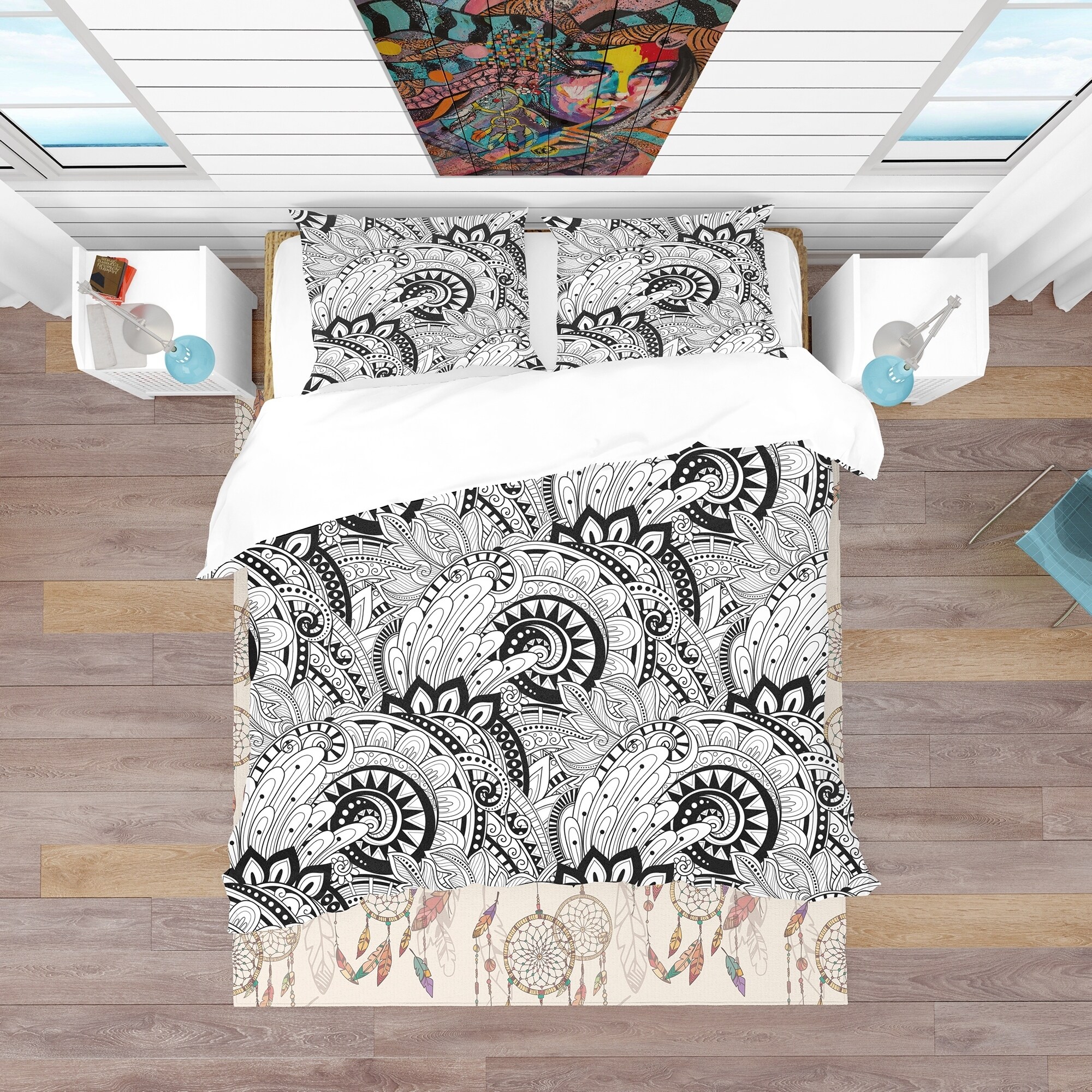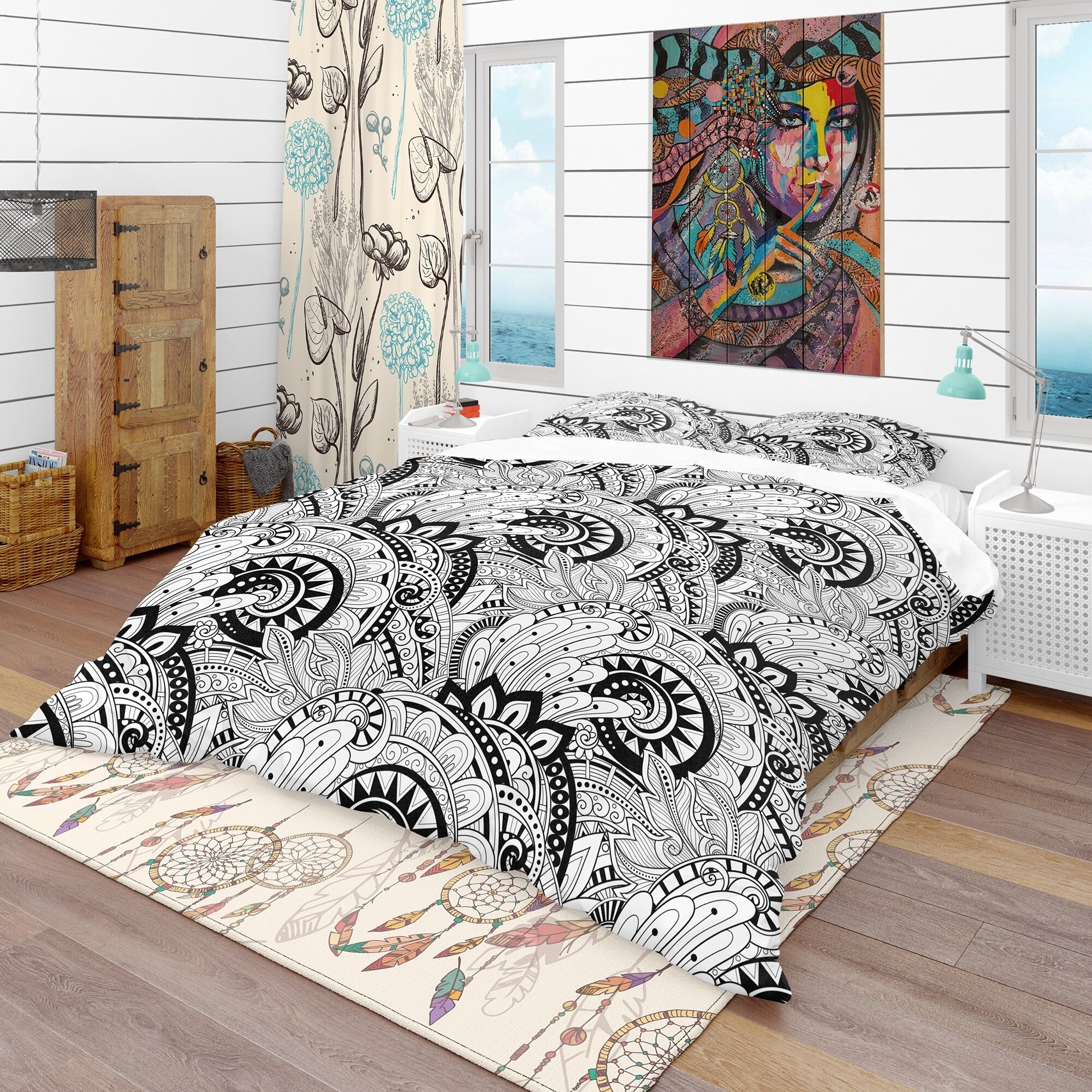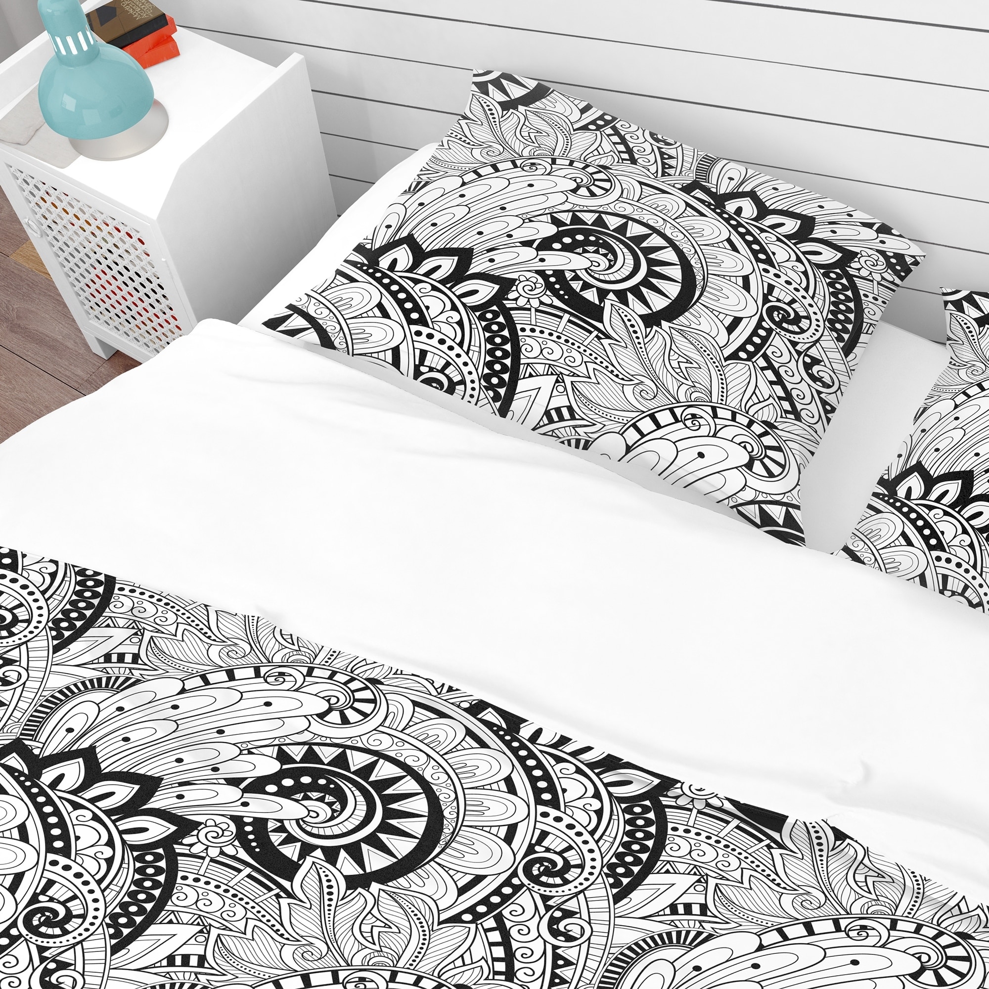 Bring a touch of sophistication to your bedroom with this Monochrome Abstract Floral Pattern bedding set. Made from ultra-soft, lightweight 100% microfiber polyester, this Bohemian & Eclectic bed set is printed with High Density Italian Ink, ensuring the colors are extra vibrant. The set includes one duvet cover and two shams, available in twin, queen, and king sizes. The set is wrinkle-resistant, odorless, and down-like comfortable, guaranteeing you a good night's sleep. Mix and match with decorative wall art and throw pillows to create your perfect space.Features: Printed using High Density Italian Ink for extra-vibrant colors Made from ultra-soft, lightweight 100% microfiber polyester Wrinkle-resistant fabric with down-like comfort and odorless Includes one duvet cover and two Free Shipping Over $49.99* Details Designart 'Monochrome Abstract Floral Pattern' Bohemian & Eclectic Bedding Set - Product Description: Bring a touch of sophistication to your bedroom with this Monochrome Abstract Floral Pattern bedding set. Made from ultra-soft, lightweight 100% microfiber polyester, this Bohemian & Eclectic bed set is printed with High Density Italian Ink, ensuring the colors are extra vibrant. The set includes one duvet cover and two shams, available in twin, queen, and king sizes. The set is wrinkle-resistant, odorless, and down-like comfortable, guaranteeing you a good night's sleep. Mix and match with decorative wall art and throw pillows to create your perfect space. Features: Printed using High Density Italian Ink for extra-vibrant colors Made from ultra-soft, lightweight 100% microfiber polyester Wrinkle-resistant fabric with down-like comfort and odorless Includes one duvet cover and two standard pillow shams Available in twin, queen, and king sizes Made in Canada Comforter insert not included King: 1 Duvet Cover104 inches wide x 88 inches long 2 King Shams20 inches wide x 36 inches long Queen: 1 Duvet Cover88 inches wide x 88 inches long 2 Standard Shams16 inches wide x 26 inches long Twin: 1 Duvet Cover68 inches wide x 88 inches long 1 Standard Sham16 inches wide x 26 inches long Other details: MaterialPolyester PatternAbstract ColorBlack StyleContemporary Abstract, Bohemian & Eclectic, Abstract ReversibleNo Care instructions: Machine wash on cold gentle cycle. Wash separately on first wash. Use only non-chlorine bleach when needed. Tumble dry low. Remove promptly.