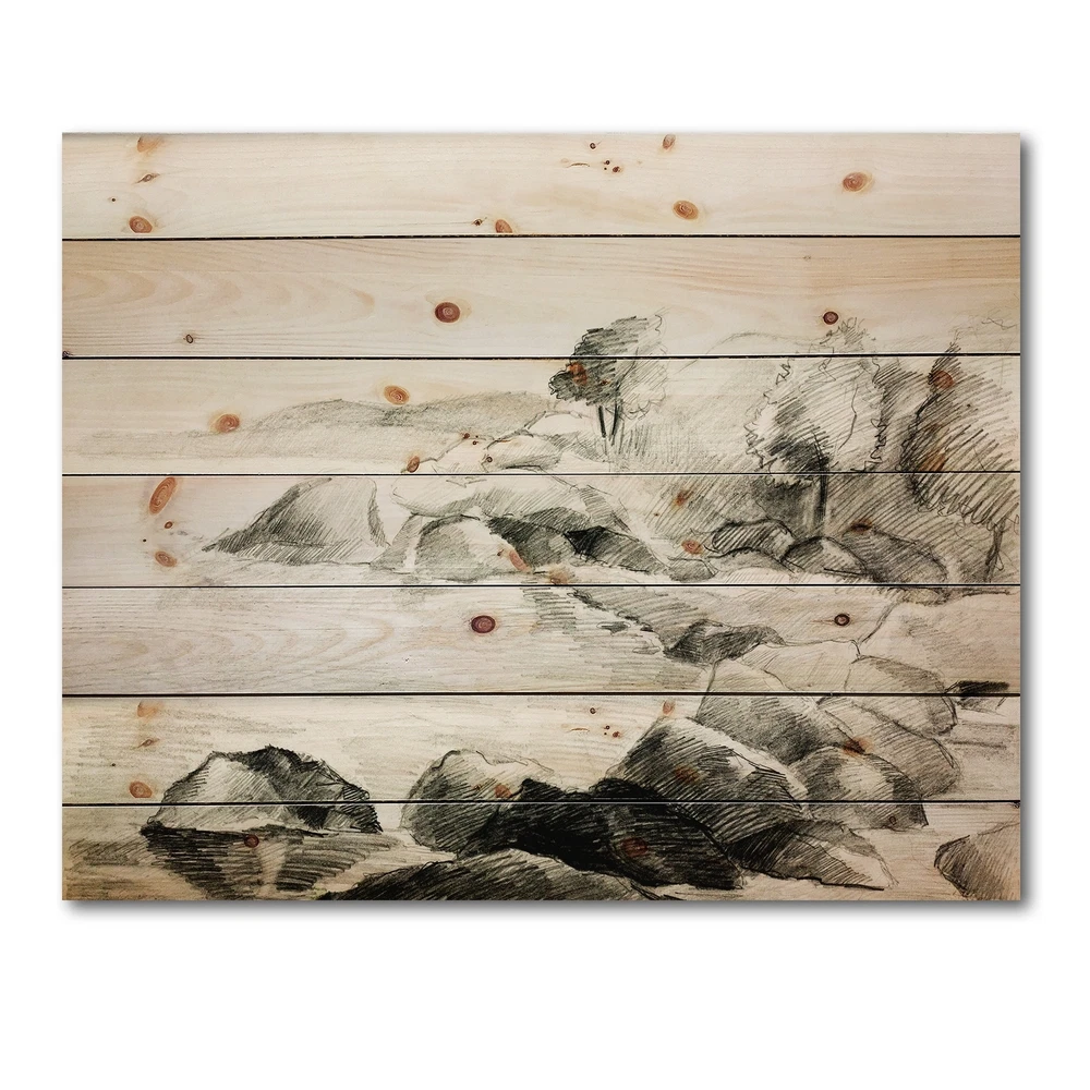 Alas, a modern take on wood wall art. Once typically a wall art piece found only in rustic or farmhouse style decor settings, this Landscapes wood wall art will easily fit into even the most contemporary of designs.Using the highest quality 6 Color Canon UV Ink, this Nautical & Coastal wood wall art incorporates several aspects of fine design into one stunning piece. With its slightly visible wood grain appearing through the colors and sleekly finished edges, it is a wonderful choice for any room in your home or office, being it a traditional or modern space. As each piece of wood has natural grain differences from the next, each of these wood wall arts is a truly unique addition to your space.Each Wood wall art is 100% handmade in Canada on Natural pine wood, using the highest quality ink Free Shipping Over $49.99* Details Designart 'Monochrome Lake Shore' Nautical & Coastal Print on Natural Pine Wood Product Description: Alas, a modern take on wood wall art. Once typically a wall art piece found only in rustic or farmhouse style decor settings, this Landscapes wood wall art will easily fit into even the most contemporary of designs. Using the highest quality 6 Color Canon UV Ink, this Nautical & Coastal wood wall art incorporates several aspects of fine design into one stunning piece. With its slightly visible wood grain appearing through the colors and sleekly finished edges, it is a wonderful choice for any room in your home or office, being it a traditional or modern space. As each piece of wood has natural grain differences from the next, each of these wood wall arts is a truly unique addition to your space. Each Wood wall art is 100% handmade in Canada on Natural pine wood, using the highest quality ink which will not fade over time. Available in Differents sizes - OrientationHorizontal - SubjectLandscapes TypeWood Wall Art, Fine Art, Wood Fine Art, Print on Plaque - Arrives ready to hang on the wall with hanging kit included - MaterialMade with 100% natural pine wood - StyleNautical & Coastal - Number of Pieces1 - ColorGrey