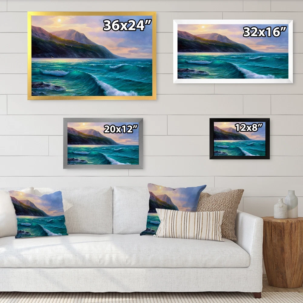 This beautiful Morning Sunlight On The Sea Waves X Framed wall Art is printed using the highest quality fade resistant ink on canvas. Every one of our Framed Giclee Prints is printed on premium quality canvas, using the finest quality inks which will not fade over time and then mounted and framed on a 1.5 inch wide frame.This framed art print is available in many different color frames. All of our framed art prints are carefully packaged with corner protectors, fragile labeling, and sturdy boxes to ensure a safe delivery. Every framed art arrives ready to hang on the wall, with the hanging kit included.Features:- Style : Nautical & Coastal- Subject : Beach, Nautical & Beach, Beach & Ocean- Color : Blue- Premium quality cotton canvas mounted.- Available in several frame colors. - Arrives Free Shipping Over $49.99* Details Designart "Morning Sunlight On The Sea Waves X" Nautical & Coastal Framed Wall Product Description: This beautiful Morning Sunlight On The Sea Waves X Framed wall Art is printed using the highest quality fade resistant ink on canvas. Every one of our Framed Giclee Prints is printed on premium quality canvas, using the finest quality inks which will not fade over time and then mounted and framed on a 1.5 inch wide frame. This framed art print is available in many different color frames. All of our framed art prints are carefully packaged with corner protectors, fragile labeling, and sturdy boxes to ensure a safe delivery. Every framed art arrives ready to hang on the wall, with the hanging kit included. Features: - Style Nautical & Coastal - Subject Beach, Nautical & Beach, Beach & Ocean - Color Blue - Premium quality cotton canvas mounted. - Available in several frame colors. - Arrives with instructions and hanging kit