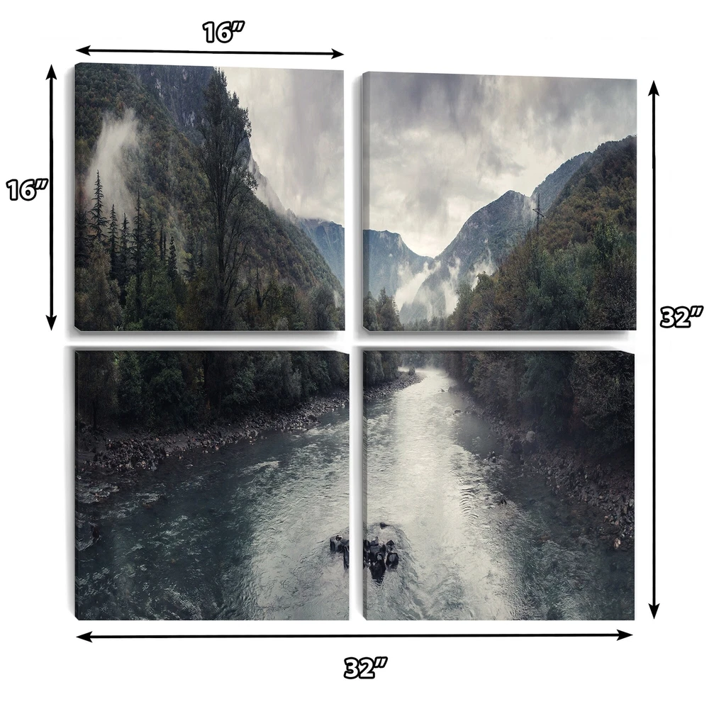 This beautiful Mountain River with Fog and Rain Multipanels canvas art is printed using the highest quality fade-resistant ink on canvas. Every one of our fine art giclee canvas prints is printed on premium quality cotton canvas, using the finest quality inks which will not fade over time. Each giclee print is stretched tightly over a 1-inch wood subframe ensuring the canvas is taught and does not buckle. This canvas art print is gallery-wrapped (the design continues on the sides), giving it a real art gallery feel. All of our canvas prints are carefully packaged with plastic protection, fragile labeling, and sturdy boxes to ensure safe delivery. Every canvas print arrives ready to hang on the wall, with the hanging kits included.- Style : Nautical & Coastal- Subject : Beach- Color : Free Shipping Over $49.99* Details Designart "Mountain River with Fog and Rain" Sea & Shore Canvas Wall Art Print Product Description: This beautiful Mountain River with Fog and Rain Multipanels canvas art is printed using the highest quality fade-resistant ink on canvas. Every one of our fine art giclee canvas prints is printed on premium quality cotton canvas, using the finest quality inks which will not fade over time. Each giclee print is stretched tightly over a 1-inch wood subframe ensuring the canvas is taught and does not buckle. This canvas art print is gallery-wrapped (the design continues on the sides), giving it a real art gallery feel. All of our canvas prints are carefully packaged with plastic protection, fragile labeling, and sturdy boxes to ensure safe delivery. Every canvas print arrives ready to hang on the wall, with the hanging kits included. - Style Nautical & Coastal - Subject Beach - Color Green - This canvas giclee print is gallery-wrapped (the design continues on the sides) , giving it a real art gallery feel. - Premium quality cotton canvas. - Arrives ready to hang on the wall - Easy to Hang