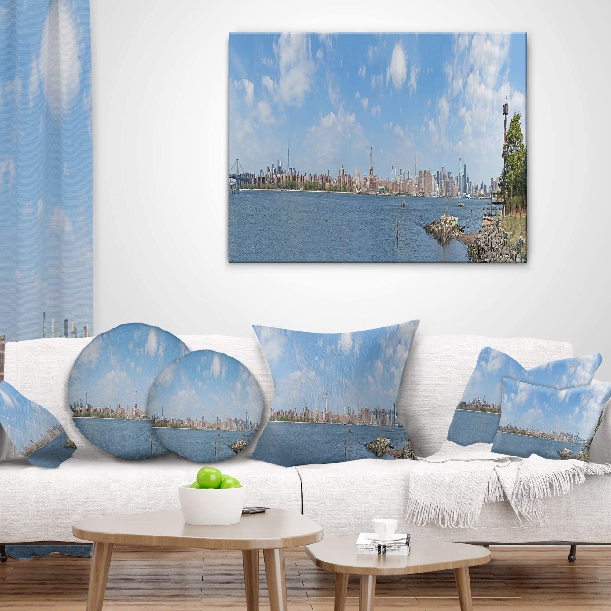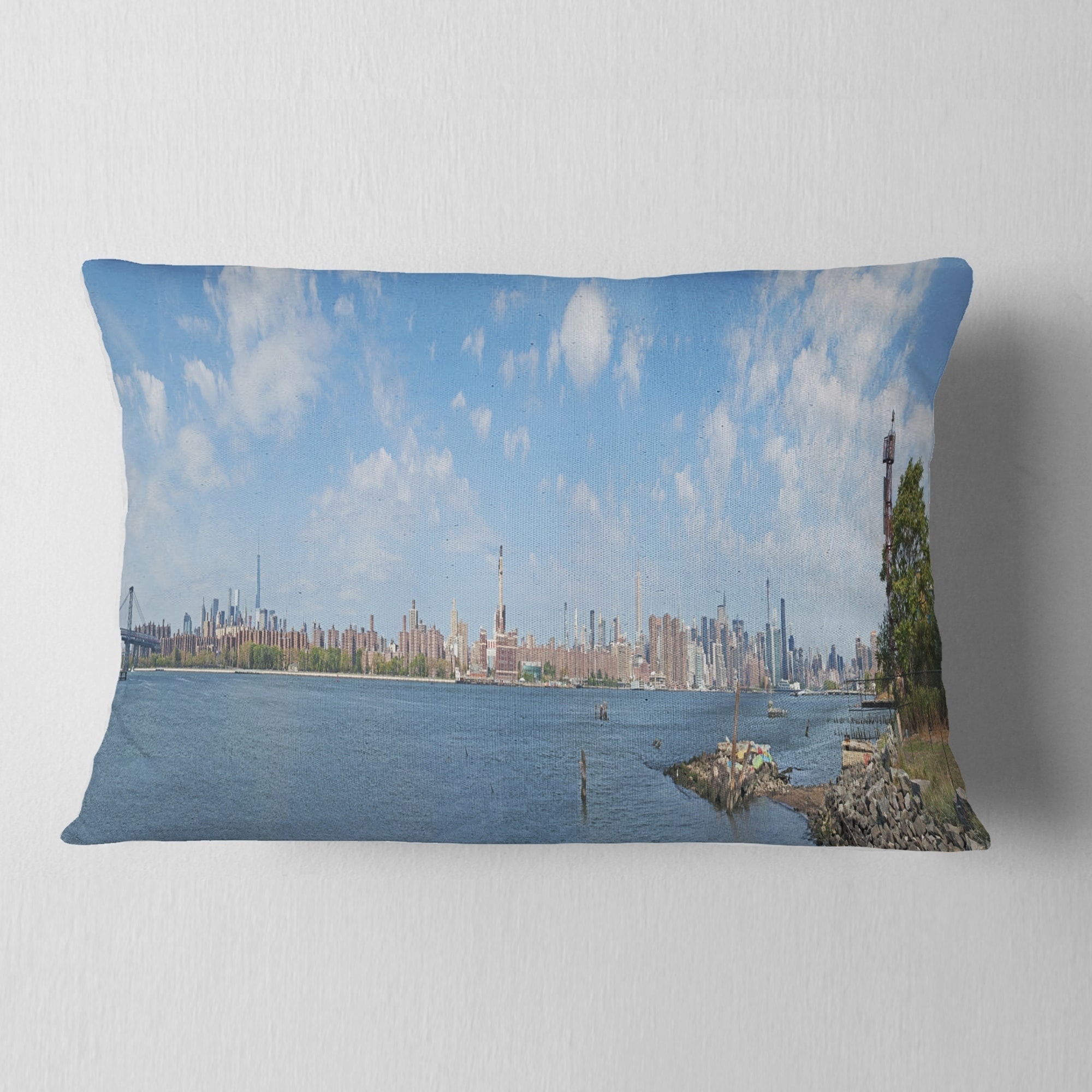 Decorative Throw Pillows for Couch Bed Sofa with Zip CoversAn easy, fun way to add a pop of color or bring new life to any room in your home or office is with these beautiful Cityscape throw pillows. Dress up your bed, sofa or lounger with this decorative design art pillows. Perfect as Industrial bedroom décor, lounge décor Panoramic Art living room décor. It adds a fun accent to any room. Throw pillows really do work wonders: they can transform any room from uninviting discomfort to warm and welcoming. And they really do go almost anywhere - arrange a couple on the couch or sofa, place one in your overstuffed chair for extra coziness, toss a couple on the bed and prop yourself up for a great read.These Architecture pillow is printed using High Color Density Italian inks to create a Free Shipping Over $49.99* Details Designart 'New York Skyline from East River Side' Cityscape Throw Pillow Product Description: Decorative Throw Pillows for Couch Bed Sofa with Zip Covers An easy, fun way to add a pop of color or bring new life to any room in your home or office is with these beautiful Cityscape throw pillows. Dress up your bed, sofa or lounger with this decorative design art pillows. Perfect as Industrial bedroom décor, lounge décor Panoramic Art living room décor. It adds a fun accent to any room. Throw pillows really do work wondersthey can transform any room from uninviting discomfort to warm and welcoming. And they really do go almost anywhere - arrange a couple on the couch or sofa, place one in your overstuffed chair for extra coziness, toss a couple on the bed and prop yourself up for a great read. These Architecture pillow is printed using High Color Density Italian inks to create a vibrantly colored, sharp artwork. Features: Perfect accent to any furniture piece Basic shapes with a modern graphic design twist Printed on 100% light weight polyester Cushion filled with 100% polyester fill Wrinkle resistant fabric Zip Closure so you can remove the pillow from its' cover Down-like comfort - Odorless 100% Hypoallergenic Machine Wash Cold Separately, Gently Cycle Only, No bleach, hang to dry Print on Demand with High Density Italian Ink Available in Several sizes Attribute :Industrial, Panoramic Art, Modern Subject Architecture, Cityscapes, Photography