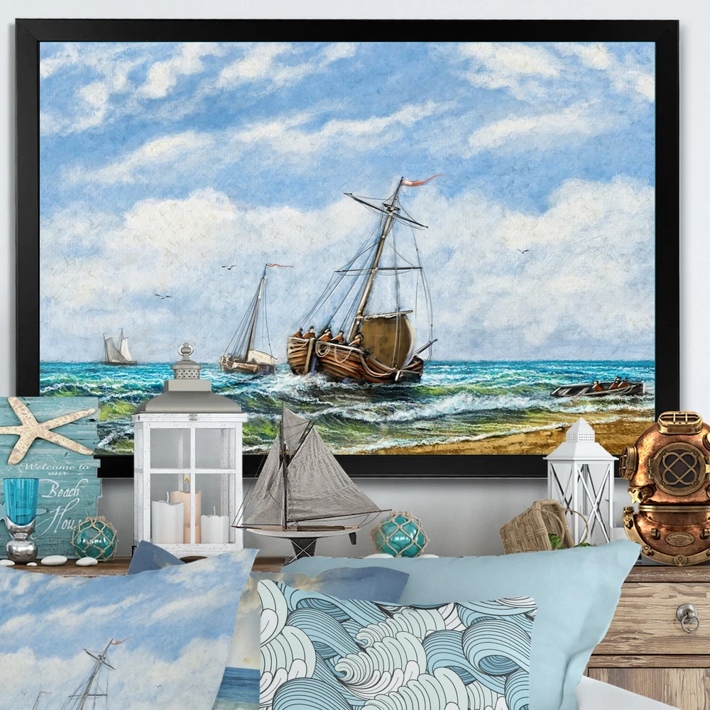 This beautiful Old Naval Ship IIi Framed wall Art is printed using the highest quality fade resistant ink on canvas. Every one of our Framed Giclee Prints is printed on premium quality canvas, using the finest quality inks which will not fade over time and then mounted and framed on a 1.5 inch wide frame.This framed art print is available in many different color frames. All of our framed art prints are carefully packaged with corner protectors, fragile labeling, and sturdy boxes to ensure a safe delivery. Every framed art arrives ready to hang on the wall, with the hanging kit included.Features:- Style : Nautical & Coastal- Subject : Beach, Nautical & Beach, Beach & Ocean- Color : Blue- Premium quality cotton canvas mounted.- Available in several frame colors. - Arrives with instructions Free Shipping Over $49.99* Details Designart "Old Naval Ship III" Nautical & Coastal Framed Wall Decor Product Description: This beautiful Old Naval Ship IIi Framed wall Art is printed using the highest quality fade resistant ink on canvas. Every one of our Framed Giclee Prints is printed on premium quality canvas, using the finest quality inks which will not fade over time and then mounted and framed on a 1.5 inch wide frame. This framed art print is available in many different color frames. All of our framed art prints are carefully packaged with corner protectors, fragile labeling, and sturdy boxes to ensure a safe delivery. Every framed art arrives ready to hang on the wall, with the hanging kit included. Features: - Style Nautical & Coastal - Subject Beach, Nautical & Beach, Beach & Ocean - Color Blue - Premium quality cotton canvas mounted. - Available in several frame colors. - Arrives with instructions and hanging kit