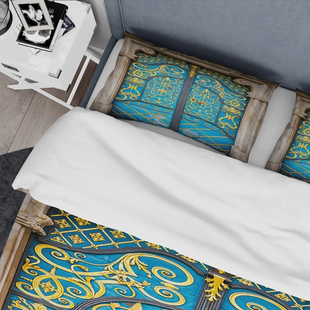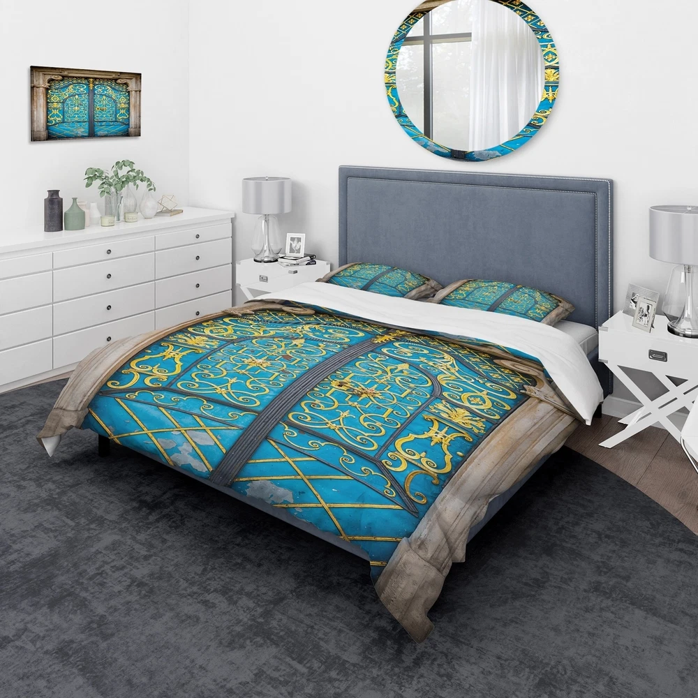 Transform your bedroom into a serene sanctuary with the Designart 'Old-European Door Vintage' Vintage Bedding Set. Infused with the richness of high density Italian ink, this Traditional Abstract bed set boasts of vibrant colors that spruce up your decor while wrapping you in plush comfort. Crafted from premium 100% microfiber polyester, the set includes one duvet cover and two shams, available in twin, queen and king sizes. The wrinkle-resistant fabric ensures easy maintenance, while the ultra-soft and lightweight material guarantees a good night's sleep.Features: Printed with High Density Italian Ink for extra vibrant colors Made from ultra-soft, lightweight 100% microfiber polyester. Wrinkle-resistant fabric. Down-like comfort, odorless. Includes one bed cover and two standard pillow Free Shipping Over $49.99* Details Designart 'Old-European Door Vintage' Vintage Bedding Set - Duvet Cover & Shams Product Description: Transform your bedroom into a serene sanctuary with the Designart 'Old-European Door Vintage' Vintage Bedding Set. Infused with the richness of high density Italian ink, this Traditional Abstract bed set boasts of vibrant colors that spruce up your decor while wrapping you in plush comfort. Crafted from premium 100% microfiber polyester, the set includes one duvet cover and two shams, available in twin, queen and king sizes. The wrinkle-resistant fabric ensures easy maintenance, while the ultra-soft and lightweight material guarantees a good night's sleep. Features: Printed with High Density Italian Ink for extra vibrant colors Made from ultra-soft, lightweight 100% microfiber polyester. Wrinkle-resistant fabric. Down-like comfort, odorless. Includes one bed cover and two standard pillow shams for a complete look Trendy yet soothing color palette perfect for updating your bedroom decor Made in Canada Decorative wall art and throw pillows available but sold separately Comforter inserts and pillow inserts not included King: 1 Duvet Cover104 inches wide x 88 inches long 2 King Shams20 inches wide x 36 inches long Queen: 1 Duvet Cover88 inches wide x 88 inches long 2 Standard Shams16 inches wide x 26 inches long Twin: 1 Duvet Cover68 inches wide x 88 inches long 1 Standard Sham16 inches wide x 26 inches long Product Details: MaterialPolyester PatternAbstract ColorBlue StyleTraditional Abstract, Traditional, Vintage ReversibleNo Care Instructions: Machine wash on cold gentle cycle. Wash separately on first wash. Use only non-chlorine bleach when needed. Tumble dry low. Remove promptly.