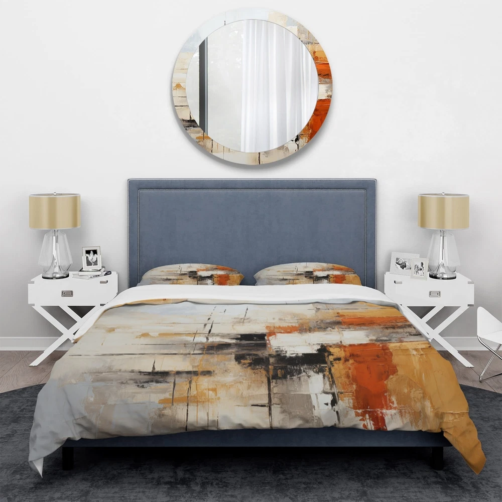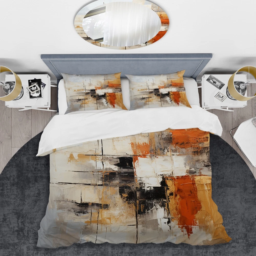 There is just nothing better than a beautiful, inviting comfortable bed after a long day. This Modern bed set is created using the richest colors stemming from high density Italian ink and the softest fabrics making it the perfect way to spruce up your bedroom, while keeping it ultra-comfortable. This luxurious "Orange Black Abstract Fractal Impressions" bed design is made with 100% microfiber polyester, making it ultra-soft to ensure you sleep comfortably all night long. This Abstract set includes 1 Bed Cover and 2 Shams and is available in twin, queen and king sizes.This Bedding Set is easily integrated into your already decorated space.What's Included? - Duvet Cover - Shams - Pillow Cases not included but can be buy separately - Comforter Insert NOT INCLUDEDFeatures - Printed Free Shipping Over $49.99* Details Designart "Orange Black Abstract Fractal Impressions" Orange Modern - Bedding Product Description: There is just nothing better than a beautiful, inviting comfortable bed after a long day. This Modern bed set is created using the richest colors stemming from high density Italian ink and the softest fabrics making it the perfect way to spruce up your bedroom, while keeping it ultra-comfortable. This luxurious "Orange Black Abstract Fractal Impressions" bed design is made with 100% microfiber polyester, making it ultra-soft to ensure you sleep comfortably all night long. This Abstract set includes 1 Bed Cover and 2 Shams and is available in twin, queen and king sizes. This Bedding Set is easily integrated into your already decorated space. What's Included? - Duvet Cover - Shams - Pillow Cases not included but can be buy separately - Comforter Insert NOT INCLUDED Features - Printed using High Density Italian Ink making the colors extra vibrant. - Made from ultra-soft, lightweight 100% microfiber polyester. Wrinkle resistant fabric. Down-like comfort, odorless. - The Modern & Contemporary bed set includes one bed cover and two standard pillow shams to create a complete and stylish look. - The elegant and soft colors are both trendy and fun to brighten and update your bedroom. - Made in Canada - Decorative Wall Art and throw pillows to match this set are available but sold separately. - Actual comforter inserts and pillow inserts are not included. This set includes the two pillow shams and comforter cover only. King Dimensions: - 1 Duvet Cover104 inches wide x 88 inches long - 2 King Shams20 inches wide x 36 inches long Queen Dimensions: - 1 Duvet Cover88 inches wide x 88 inches long - 2 Standard Shams16 inches wide x 26 inches long Twin Dimensions: - 1 Duvet Cover68 inches wide x 88 inches long - 1 Standard Sham16 inches wide x 26 inches long Product Details - MaterialPolyester. - PatternAbstract - ColorOrange; Black - StyleModern & Contemporary - ReversibleNo Directions: Fabric Care InstructionsMachine wash on cold gentle cycle. Wash separately on first wash. Use only non- chlorine bleach when needed. Tumble dry low. Remove promptly.