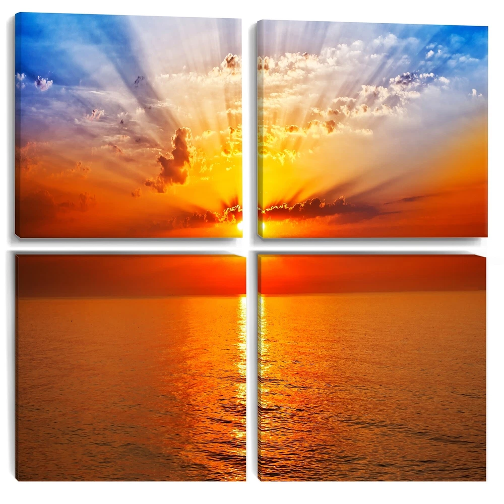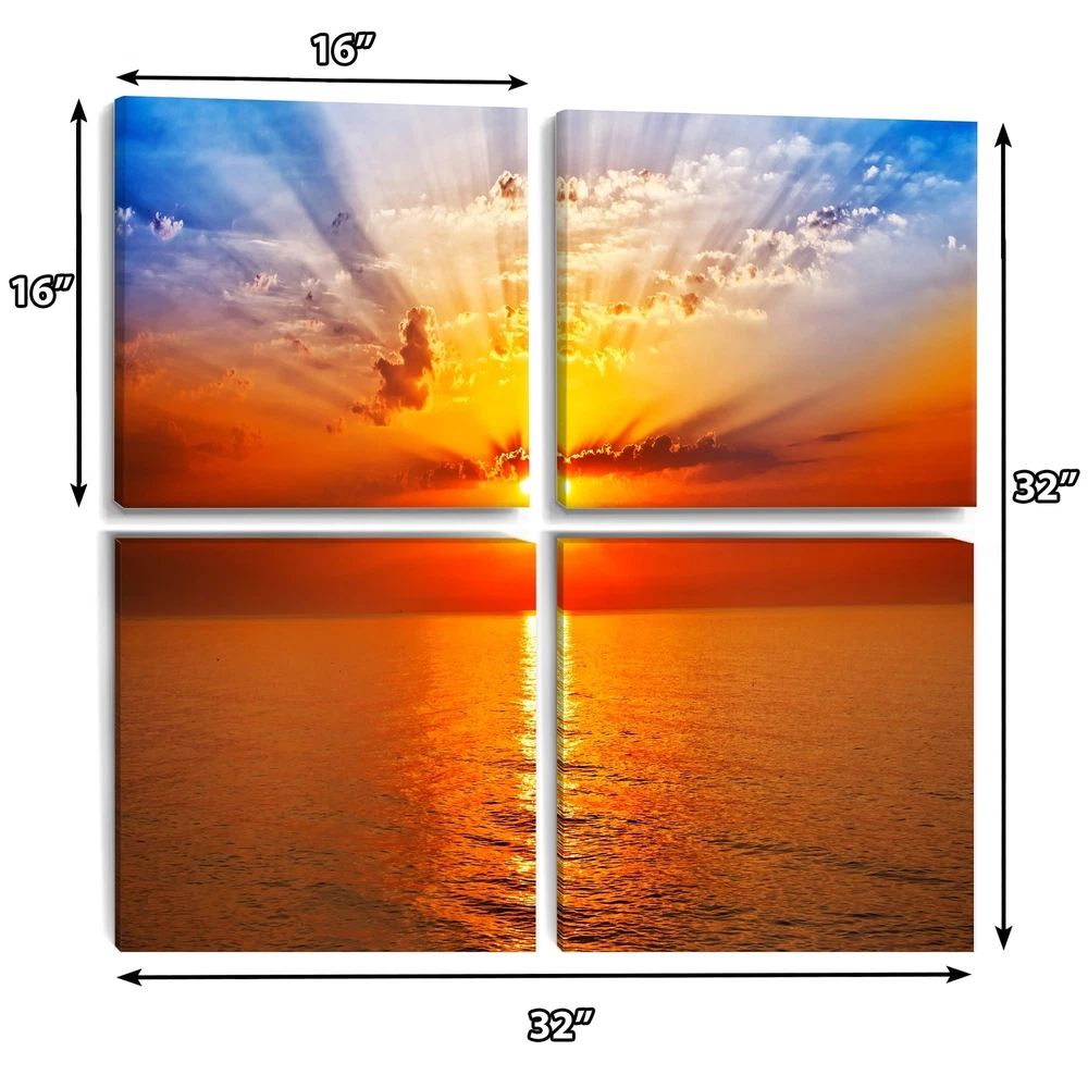 This beautiful Orange Sea Sunrise under Blue Sky Multipanels canvas art is printed using the highest quality fade-resistant ink on canvas. Every one of our fine art giclee canvas prints is printed on premium quality cotton canvas, using the finest quality inks which will not fade over time. Each giclee print is stretched tightly over a 1-inch wood subframe ensuring the canvas is taught and does not buckle. This canvas art print is gallery-wrapped (the design continues on the sides), giving it a real art gallery feel. All of our canvas prints are carefully packaged with plastic protection, fragile labeling, and sturdy boxes to ensure safe delivery. Every canvas print arrives ready to hang on the wall, with the hanging kits included.- Style : Nautical & Coastal- Subject : Beach- Color : Free Shipping Over $49.99* Details Designart "Orange Sea Sunrise under Blue Sky" Sea & Shore Canvas Wall Art Print Product Description: This beautiful Orange Sea Sunrise under Blue Sky Multipanels canvas art is printed using the highest quality fade-resistant ink on canvas. Every one of our fine art giclee canvas prints is printed on premium quality cotton canvas, using the finest quality inks which will not fade over time. Each giclee print is stretched tightly over a 1-inch wood subframe ensuring the canvas is taught and does not buckle. This canvas art print is gallery-wrapped (the design continues on the sides), giving it a real art gallery feel. All of our canvas prints are carefully packaged with plastic protection, fragile labeling, and sturdy boxes to ensure safe delivery. Every canvas print arrives ready to hang on the wall, with the hanging kits included. - Style Nautical & Coastal - Subject Beach - Color Blue - This canvas giclee print is gallery-wrapped (the design continues on the sides) , giving it a real art gallery feel. - Premium quality cotton canvas. - Arrives ready to hang on the wall - Easy to Hang