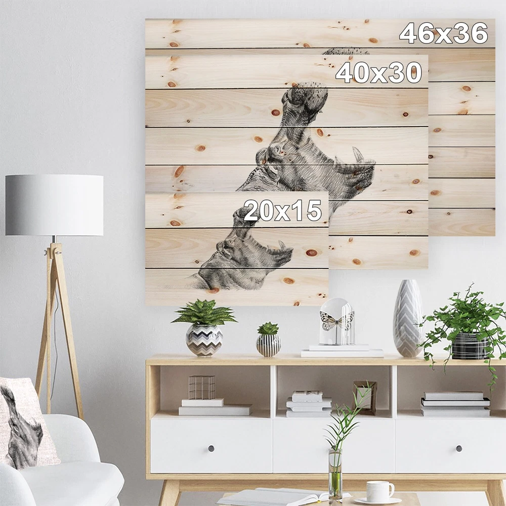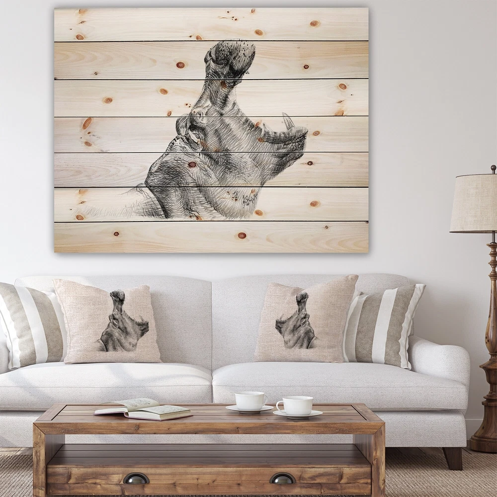 Alas, a modern take on wood wall art. Once typically a wall art piece found only in rustic or farmhouse style decor settings, this Animals wood wall art will easily fit into even the most contemporary of designs.Using the highest quality 6 Color Canon UV Ink, this Traditional wood wall art incorporates several aspects of fine design into one stunning piece. With its slightly visible wood grain appearing through the colors and sleekly finished edges, it is a wonderful choice for any room in your home or office, being it a traditional or modern space. As each piece of wood has natural grain differences from the next, each of these wood wall arts is a truly unique addition to your space.Each Wood wall art is 100% handmade in Canada on Natural pine wood, using the highest quality ink which Free Shipping Over $49.99* Details Designart 'Pencil Hippo Sketch In Black And White' Traditional Wood Wall Art Product Description: Alas, a modern take on wood wall art. Once typically a wall art piece found only in rustic or farmhouse style decor settings, this Animals wood wall art will easily fit into even the most contemporary of designs. Using the highest quality 6 Color Canon UV Ink, this Traditional wood wall art incorporates several aspects of fine design into one stunning piece. With its slightly visible wood grain appearing through the colors and sleekly finished edges, it is a wonderful choice for any room in your home or office, being it a traditional or modern space. As each piece of wood has natural grain differences from the next, each of these wood wall arts is a truly unique addition to your space. Each Wood wall art is 100% handmade in Canada on Natural pine wood, using the highest quality ink which will not fade over time. Available in Differents sizes - OrientationHorizontal - SubjectAnimals TypeWood Wall Art, Fine Art, Wood Fine Art, Print on Plaque - Arrives ready to hang on the wall with hanging kit included - MaterialMade with 100% natural pine wood - StyleTraditional - Number of Pieces1 - ColorWhite