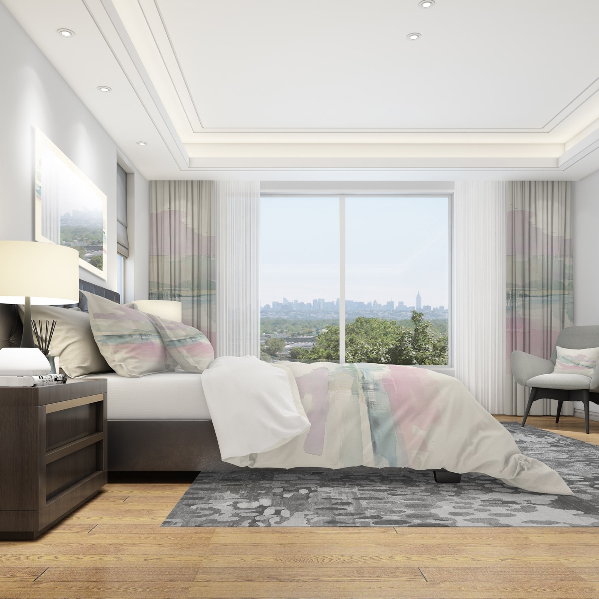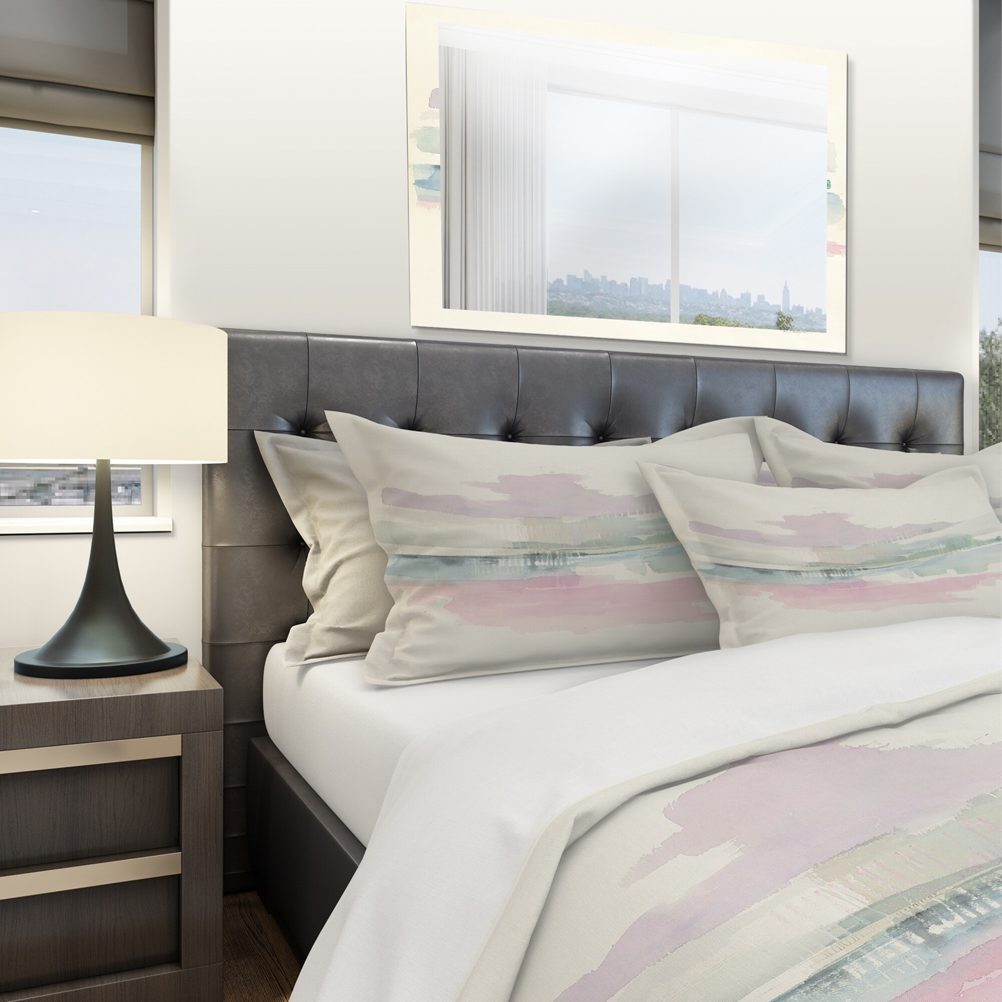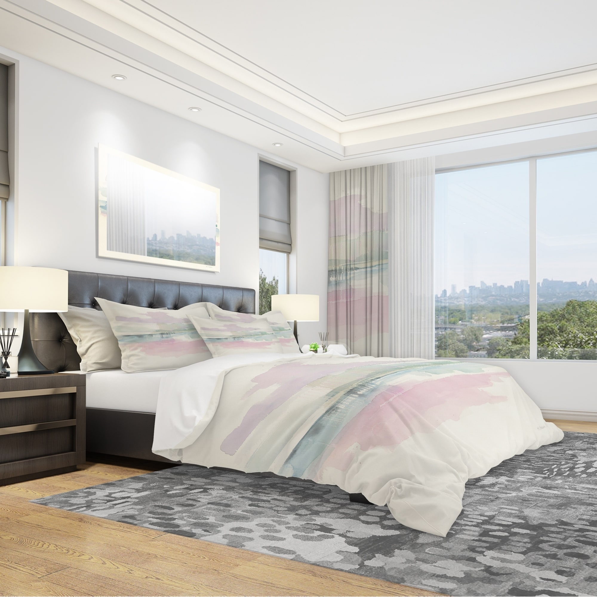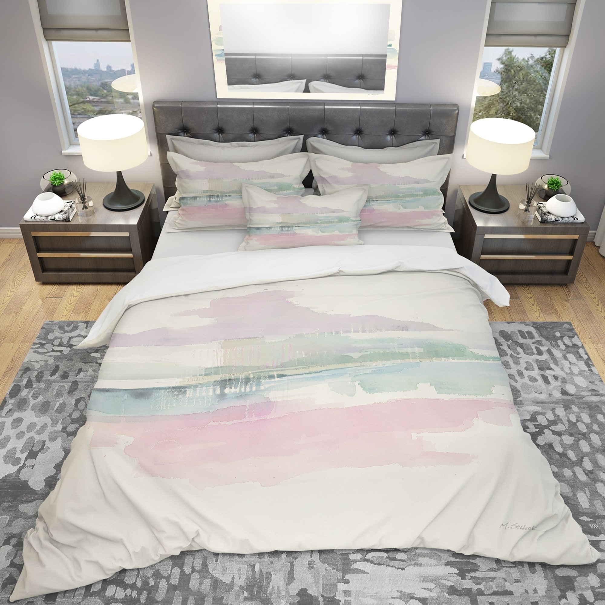 Transform your bedroom into a cozy haven with the Designart 'Pink Lifting Fog' Geometric Bedding Set. This Shabby Chic set features a beautiful geometric design printed using High Density Italian Ink which makes the colors extra vibrant. Made of 100% microfiber polyester, it is ultra-soft, lightweight and wrinkle-resistant, offering you a comfortable and stylish bedding option. This set includes 1 duvet cover and 2 shams, with the option to purchase decorative wall art and throw pillows separately. Available in twin, queen and king sizes, this Geometric Bedding Set is perfect for any space.Features: High Density Italian Ink print for extra vibrant colors Ultra-soft, lightweight 100% microfiber polyester for down-like comfort Complete and stylish look with one bed cover and two standard Free Shipping Over $49.99* Details Designart 'Pink Lifting Fog' Geometric Bedding Set - Duvet Cover & Shams Product Description: Transform your bedroom into a cozy haven with the Designart 'Pink Lifting Fog' Geometric Bedding Set. This Shabby Chic set features a beautiful geometric design printed using High Density Italian Ink which makes the colors extra vibrant. Made of 100% microfiber polyester, it is ultra-soft, lightweight and wrinkle-resistant, offering you a comfortable and stylish bedding option. This set includes 1 duvet cover and 2 shams, with the option to purchase decorative wall art and throw pillows separately. Available in twin, queen and king sizes, this Geometric Bedding Set is perfect for any space. Features: High Density Italian Ink print for extra vibrant colors Ultra-soft, lightweight 100% microfiber polyester for down-like comfort Complete and stylish look with one bed cover and two standard pillow shams Elegant and soft colors to brighten and update your bedroom Made in Canada Actual comforter inserts and pillow inserts are not included. This set includes the two pillow shams and comforter cover only. King: 1 Duvet Cover104 inches wide x 88 inches long 2 King Shams20 inches wide x 36 inches long Queen: 1 Duvet Cover88 inches wide x 88 inches long 2 Standard Shams16 inches wide x 26 inches long Twin: 1 Duvet Cover68 inches wide x 88 inches long 1 Standard Sham16 inches wide x 26 inches long Other Details: MaterialPolyester PatternGeometric ColorPink StyleShabby Chic, Cottage ReversibleNo Care InstructionsMachine wash on cold gentle cycle. Wash separately on first wash. Use only non-chlorine bleach when needed. Tumble dry low. Remove promptly.