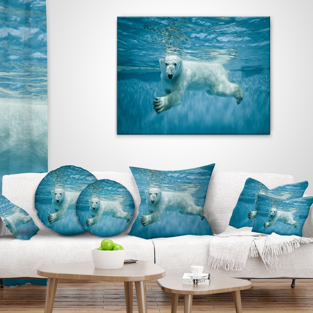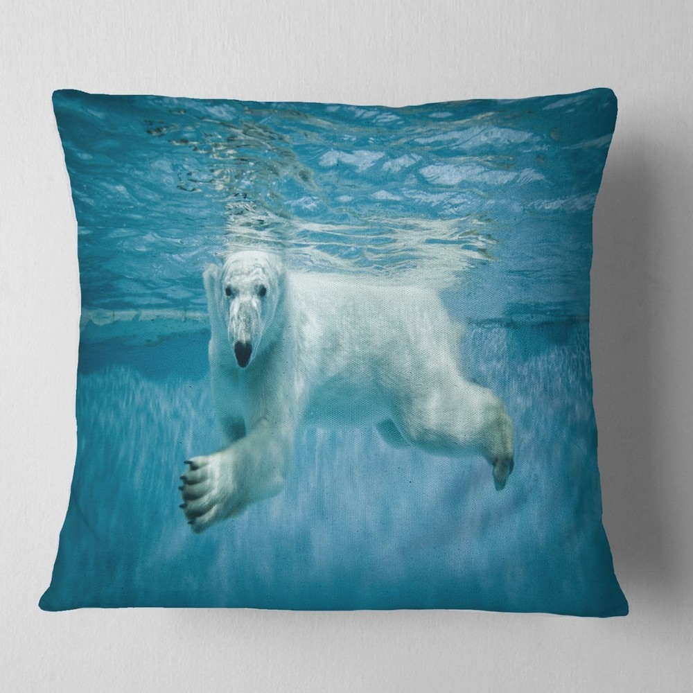 Decorative Throw Pillows for Couch Bed Sofa with Zip CoversAn easy, fun way to add a pop of color or bring new life to any room in your home or office is with these beautiful Animal throw pillows. Dress up your bed, sofa or lounger with this decorative design art pillows. Perfect as Traditional bedroom décor, lounge décor Modern living room décor. It adds a fun accent to any room. Throw pillows really do work wonders: they can transform any room from uninviting discomfort to warm and welcoming. And they really do go almost anywhere - arrange a couple on the couch or sofa, place one in your overstuffed chair for extra coziness, toss a couple on the bed and prop yourself up for a great read.These Animals pillow is printed using High Color Density Italian inks to create a vibrantly colored, Free Shipping Over $49.99* Details Designart 'Polar Bear Swimming under Water' Animal Throw Pillow Product Description: Decorative Throw Pillows for Couch Bed Sofa with Zip Covers An easy, fun way to add a pop of color or bring new life to any room in your home or office is with these beautiful Animal throw pillows. Dress up your bed, sofa or lounger with this decorative design art pillows. Perfect as Traditional bedroom décor, lounge décor Modern living room décor. It adds a fun accent to any room. Throw pillows really do work wondersthey can transform any room from uninviting discomfort to warm and welcoming. And they really do go almost anywhere - arrange a couple on the couch or sofa, place one in your overstuffed chair for extra coziness, toss a couple on the bed and prop yourself up for a great read. These Animals pillow is printed using High Color Density Italian inks to create a vibrantly colored, sharp artwork. Features: Perfect accent to any furniture piece Basic shapes with a modern graphic design twist Printed on ultra smooth and 100% light weight polyester Cushion filled with 100% polyester fill Wrinkle resistant fabric Zip Closure so you can remove the pillow from its' cover Down-like comfort - Odorless 100% Hypoallergenic Machine Wash Cold Separately, Gently Cycle Only, No bleach, hang to dry Print on Demand with High Density Italian Ink Available in Several sizes Attribute :Traditional, Modern, Contemporary Subject Animals, Country Charm, Photography