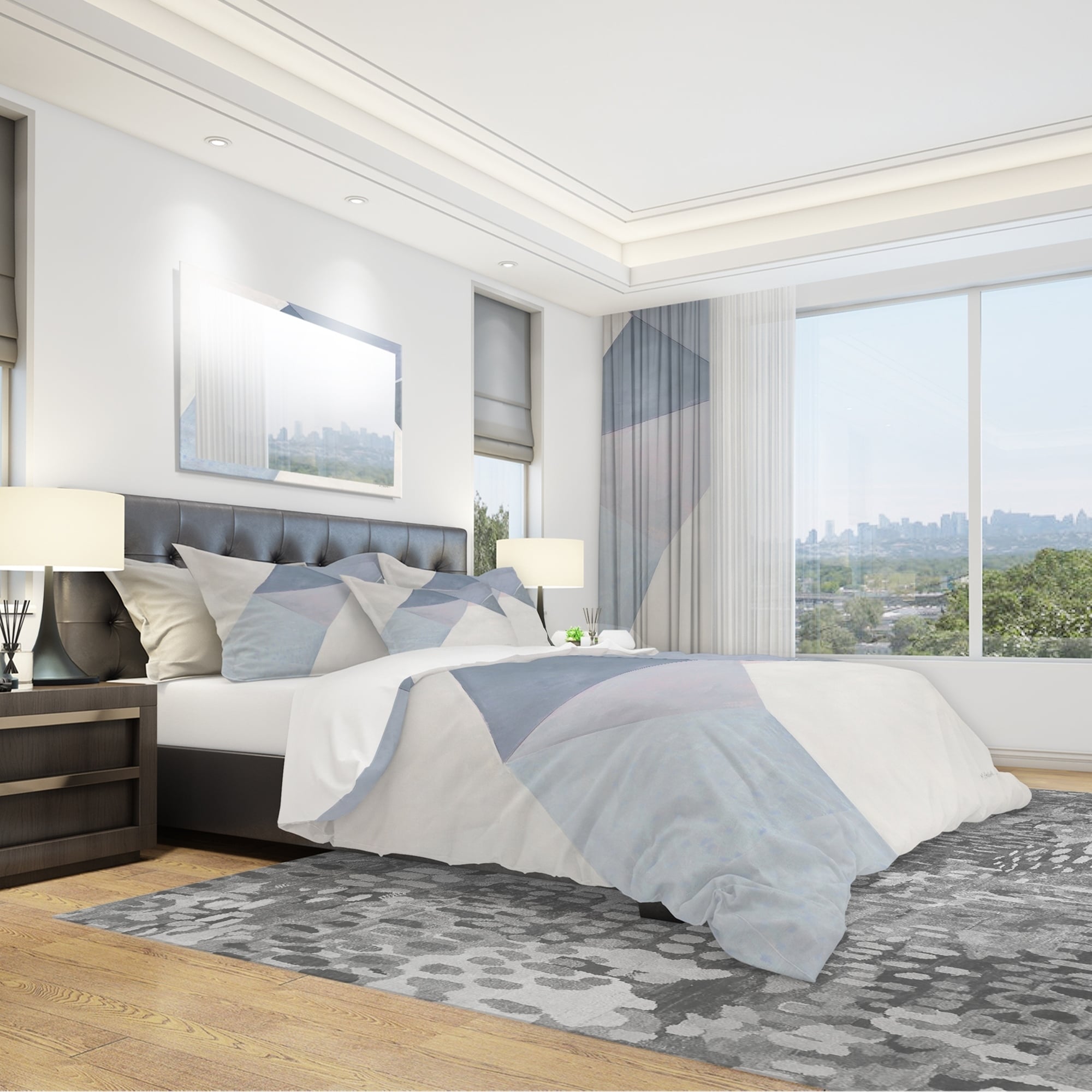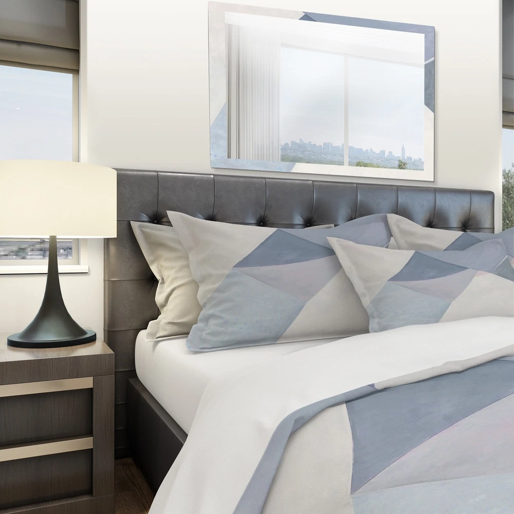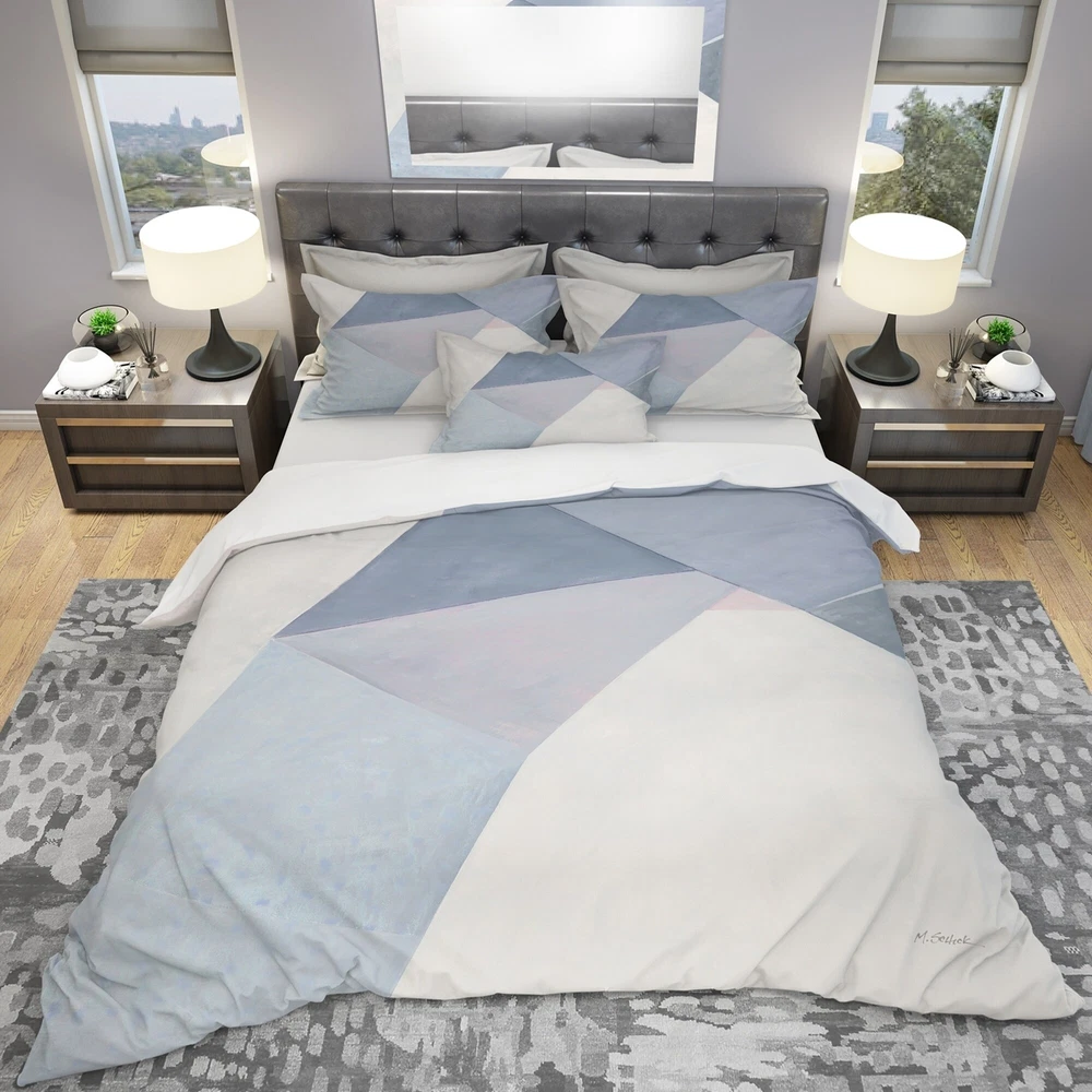 Sleep in style with the Designart 'Purple Geometric Bridge II' Geometric Bedding Set. This Mid-Century Modern set features vibrant colors printed using high density Italian ink and is made from ultra-soft, lightweight 100% microfiber polyester for a wrinkle-resistant and odorless sleeping experience. The set includes one duvet cover and two shams, available in twin, queen, and king sizes. Add a touch of elegance to your bedroom with this trendy and fun bedding set, easily integrated into any decor.Features: Vibrant colors printed with high density Italian ink Ultra-soft, lightweight 100% microfiber polyester for down-like comfort Includes one duvet cover and two shams Available in twin, queen, and king sizes Made in Canada Comforter insert not included Decorative wall art and throw Free Shipping Over $49.99* Details Designart 'Purple Geometric Bridge II' Geometric Bedding Set - Duvet Cover & Product Description: Sleep in style with the Designart 'Purple Geometric Bridge II' Geometric Bedding Set. This Mid-Century Modern set features vibrant colors printed using high density Italian ink and is made from ultra-soft, lightweight 100% microfiber polyester for a wrinkle-resistant and odorless sleeping experience. The set includes one duvet cover and two shams, available in twin, queen, and king sizes. Add a touch of elegance to your bedroom with this trendy and fun bedding set, easily integrated into any decor. Features: Vibrant colors printed with high density Italian ink Ultra-soft, lightweight 100% microfiber polyester for down-like comfort Includes one duvet cover and two shams Available in twin, queen, and king sizes Made in Canada Comforter insert not included Decorative wall art and throw pillows available but sold separately King: Duvet Cover104 inches wide x 88 inches long 2 King Shams20 inches wide x 36 inches long Queen: Duvet Cover88 inches wide x 88 inches long 2 Standard Shams16 inches wide x 26 inches long Twin: Duvet Cover68 inches wide x 88 inches long 1 Standard Sham16 inches wide x 26 inches long Product Details: MaterialPolyester PatternGeometric ColorPurple StyleMid-Century Modern, Geometric ReversibleNo Care Instructions: Machine wash on cold gentle cycle. Wash separately on first wash. Use only non-chlorine bleach when needed. Tumble dry low. Remove promptly.