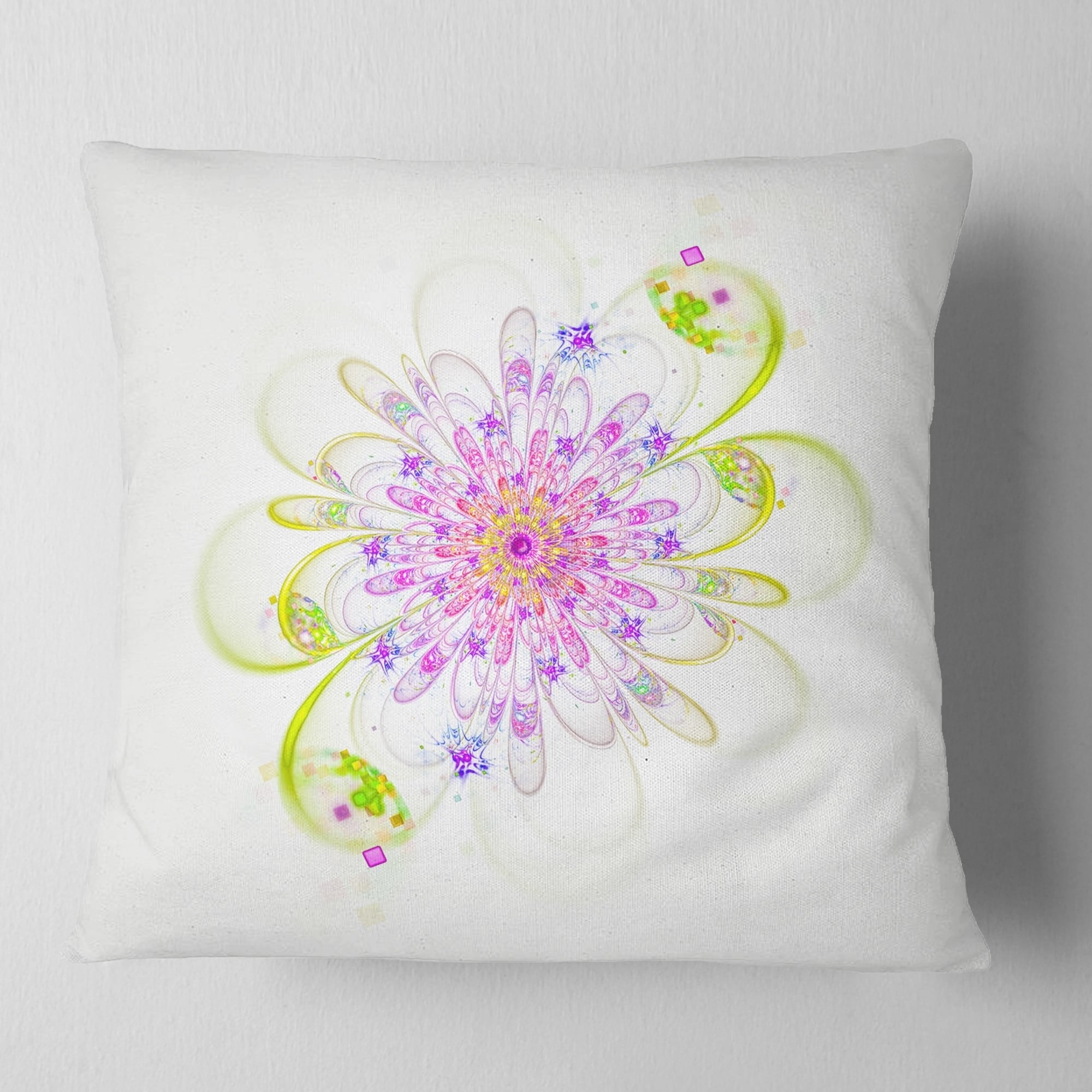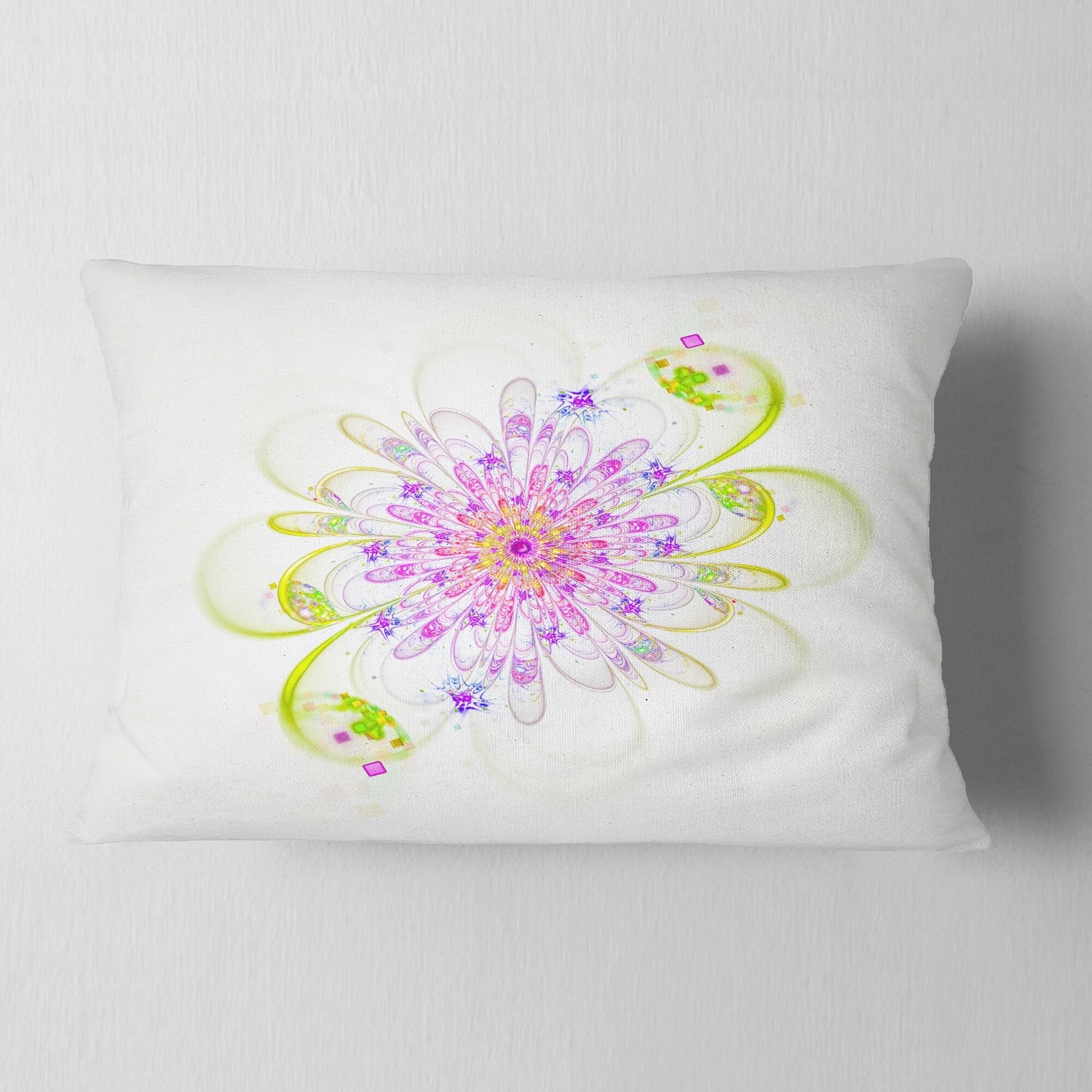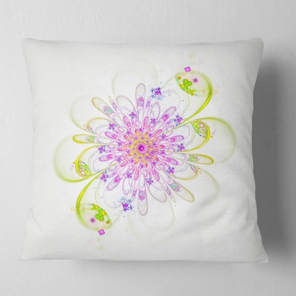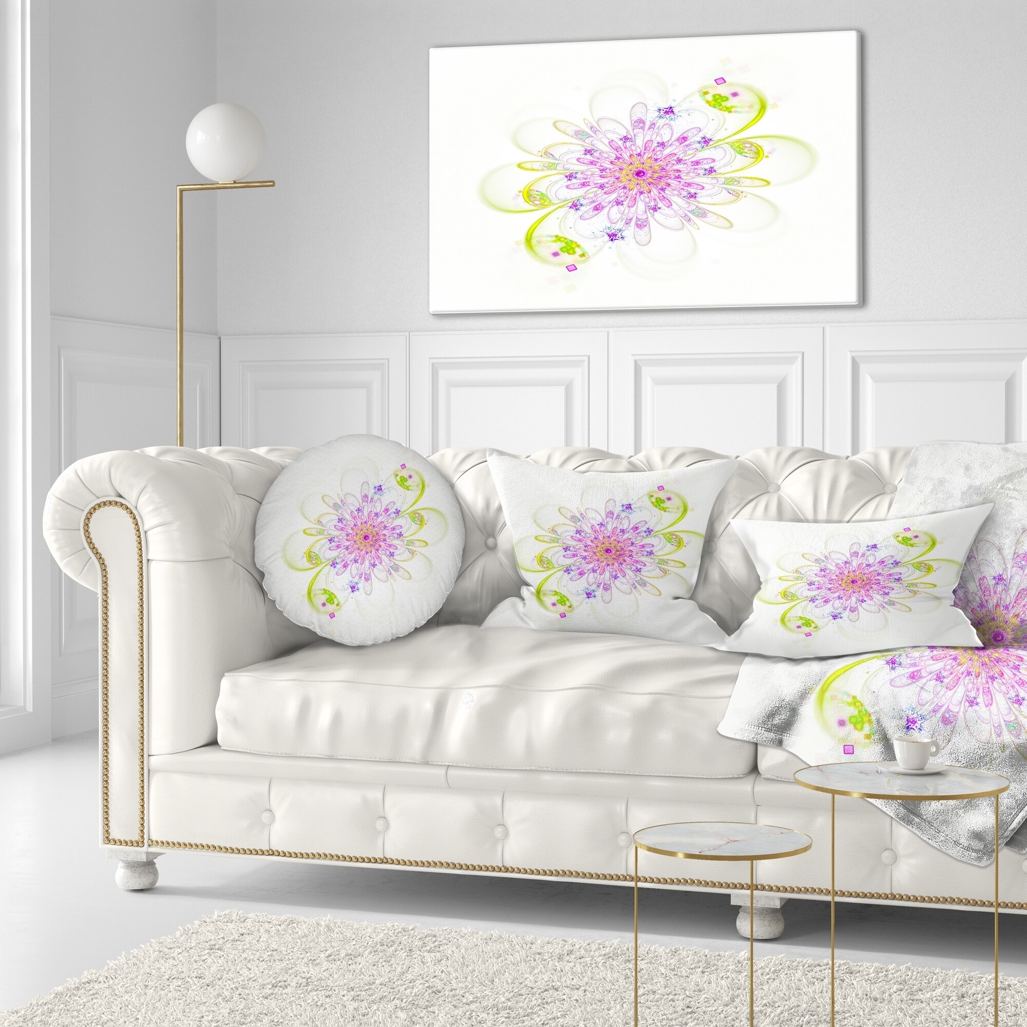 Decorative Throw Pillows for Couch Bed Sofa with Zip CoversAn easy, fun way to add a pop of color or bring new life to any room in your home or office is with these beautiful Floral throw pillows. Dress up your bed, sofa or lounger with this decorative design art pillows. Perfect as Farmhouse bedroom décor, lounge décor Traditional living room décor. It adds a fun accent to any room. Throw pillows really do work wonders: they can transform any room from uninviting discomfort to warm and welcoming. And they really do go almost anywhere - arrange a couple on the couch or sofa, place one in your overstuffed chair for extra coziness, toss a couple on the bed and prop yourself up for a great read.These Floral pillow is printed using High Color Density Italian inks to create a vibrantly colored, Free Shipping Over $49.99* Details Designart 'Purple Green Glowing Fractal Flower' Floral Throw Pillow Product Description: Decorative Throw Pillows for Couch Bed Sofa with Zip Covers An easy, fun way to add a pop of color or bring new life to any room in your home or office is with these beautiful Floral throw pillows. Dress up your bed, sofa or lounger with this decorative design art pillows. Perfect as Farmhouse bedroom décor, lounge décor Traditional living room décor. It adds a fun accent to any room. Throw pillows really do work wondersthey can transform any room from uninviting discomfort to warm and welcoming. And they really do go almost anywhere - arrange a couple on the couch or sofa, place one in your overstuffed chair for extra coziness, toss a couple on the bed and prop yourself up for a great read. These Floral pillow is printed using High Color Density Italian inks to create a vibrantly colored, sharp artwork. Features: Perfect accent to any furniture piece Basic shapes with a modern graphic design twist Printed on 100% light weight polyester Cushion filled with 100% polyester fill Wrinkle resistant fabric Zip Closure so you can remove the pillow from its' cover Down-like comfort - Odorless 100% Hypoallergenic Machine Wash Cold Separately, Gently Cycle Only, No bleach, hang to dry Print on Demand with High Density Italian Ink Available in Several sizes Attribute :Farmhouse, Traditional, Modern Subject Floral, Landscapes, Country Charm