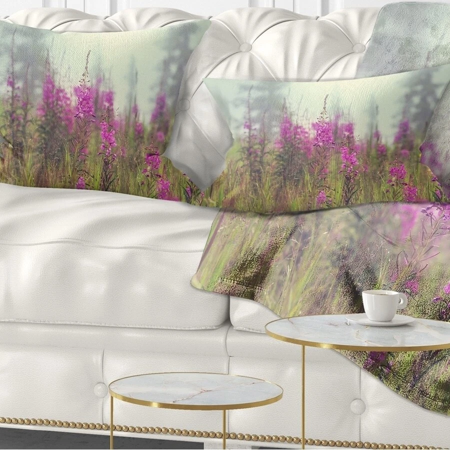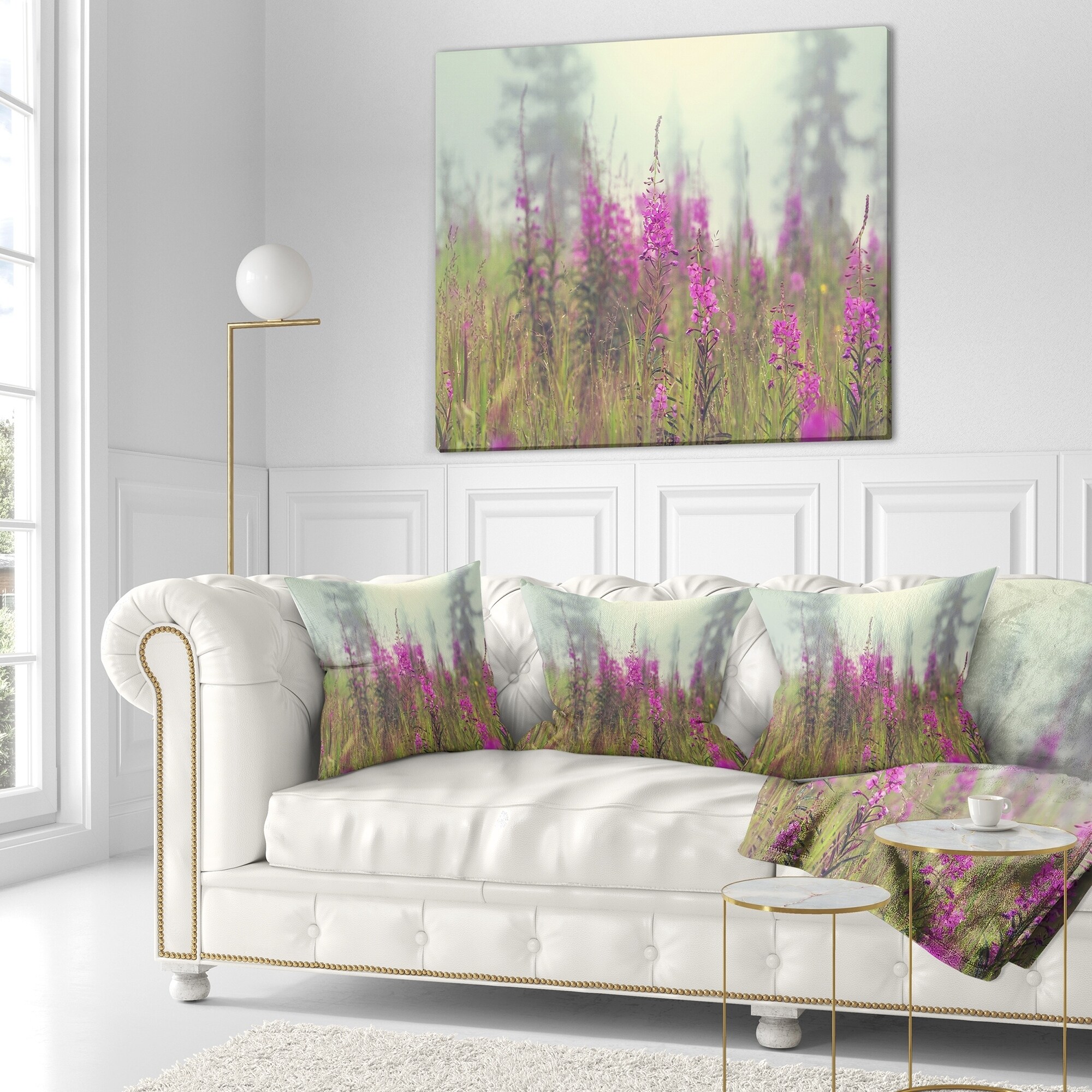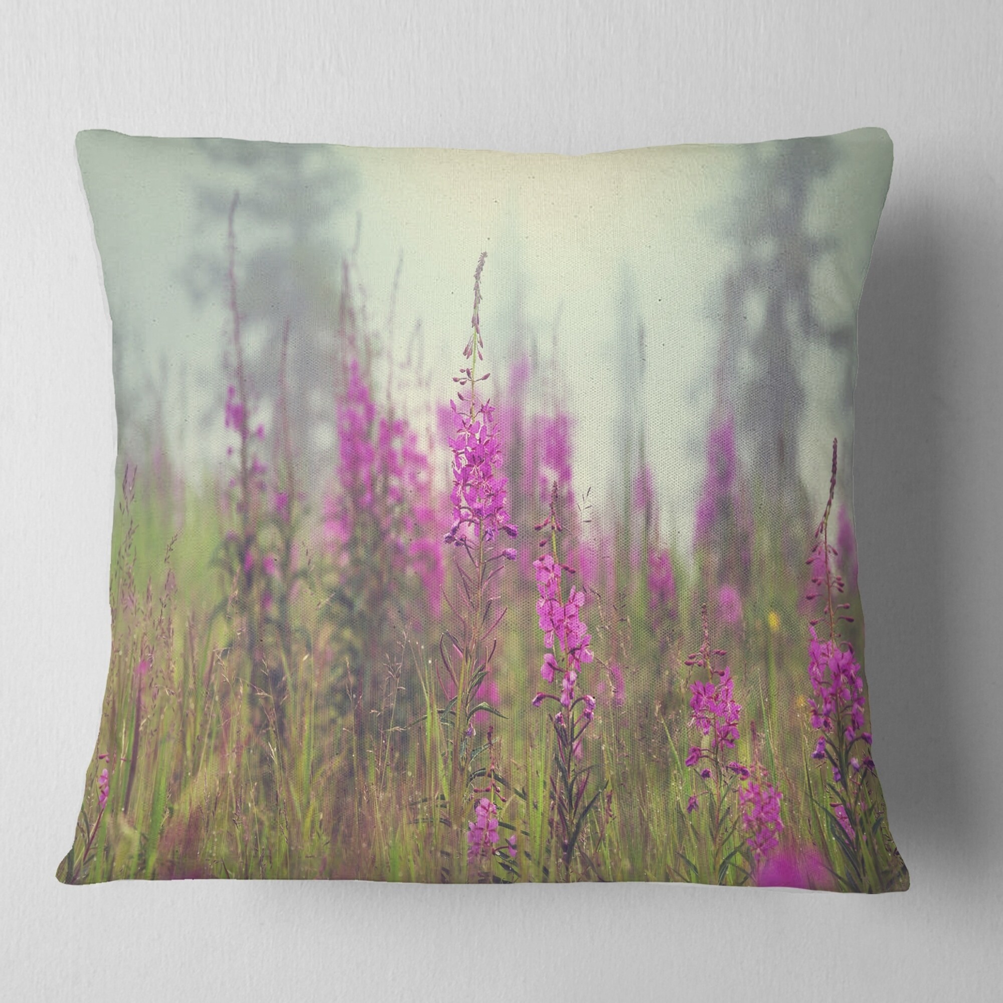 Decorative Throw Pillows for Couch Bed Sofa with Zip CoversAn easy, fun way to add a pop of color or bring new life to any room in your home or office is with these beautiful Floral throw pillows. Dress up your bed, sofa or lounger with this decorative design art pillows. Perfect as Farmhouse bedroom décor, lounge décor Traditional living room décor. It adds a fun accent to any room. Throw pillows really do work wonders: they can transform any room from uninviting discomfort to warm and welcoming. And they really do go almost anywhere - arrange a couple on the couch or sofa, place one in your overstuffed chair for extra coziness, toss a couple on the bed and prop yourself up for a great read.These Floral pillow is printed using High Color Density Italian inks to create a vibrantly colored, Free Shipping Over $49.99* Details Designart 'Purple Summer Flowers in Foggy Field' Floral Throw Pillow Product Description: Decorative Throw Pillows for Couch Bed Sofa with Zip Covers An easy, fun way to add a pop of color or bring new life to any room in your home or office is with these beautiful Floral throw pillows. Dress up your bed, sofa or lounger with this decorative design art pillows. Perfect as Farmhouse bedroom décor, lounge décor Traditional living room décor. It adds a fun accent to any room. Throw pillows really do work wondersthey can transform any room from uninviting discomfort to warm and welcoming. And they really do go almost anywhere - arrange a couple on the couch or sofa, place one in your overstuffed chair for extra coziness, toss a couple on the bed and prop yourself up for a great read. These Floral pillow is printed using High Color Density Italian inks to create a vibrantly colored, sharp artwork. Features: Perfect accent to any furniture piece Basic shapes with a modern graphic design twist Printed on 100% light weight polyester Cushion filled with 100% polyester fill Wrinkle resistant fabric Zip Closure so you can remove the pillow from its' cover Down-like comfort - Odorless 100% Hypoallergenic Machine Wash Cold Separately, Gently Cycle Only, No bleach, hang to dry Print on Demand with High Density Italian Ink Available in Several sizes Attribute :Farmhouse, Traditional, Modern Subject Floral, Landscapes, Country Charm
