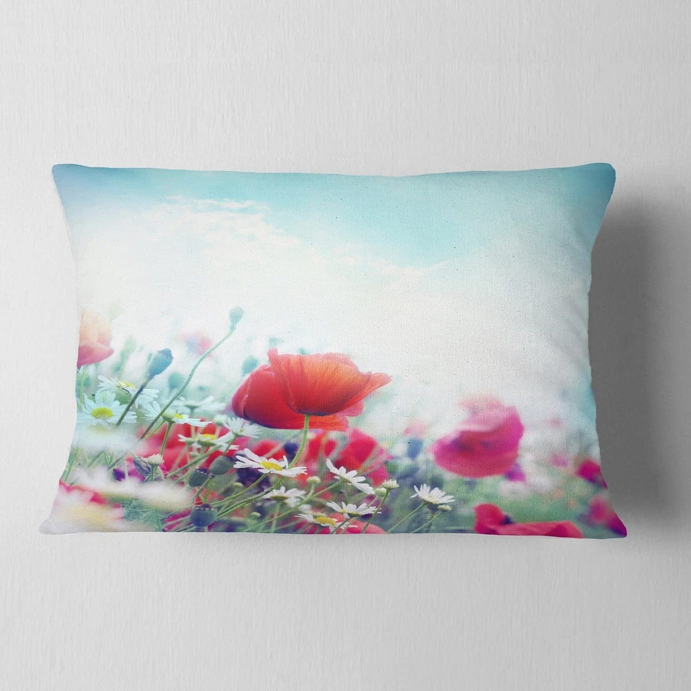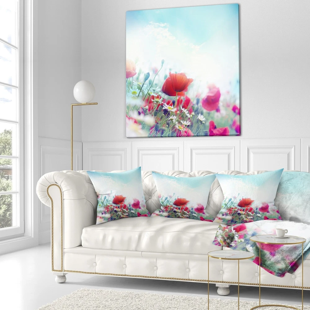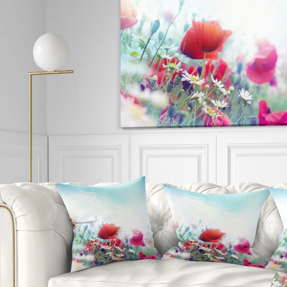 Decorative Throw Pillows for Couch Bed Sofa with Zip CoversAn easy, fun way to add a pop of color or bring new life to any room in your home or office is with these beautiful Floral throw pillows. Dress up your bed, sofa or lounger with this decorative design art pillows. Perfect as Farmhouse bedroom décor, lounge décor Traditional living room décor. It adds a fun accent to any room. Throw pillows really do work wonders: they can transform any room from uninviting discomfort to warm and welcoming. And they really do go almost anywhere - arrange a couple on the couch or sofa, place one in your overstuffed chair for extra coziness, toss a couple on the bed and prop yourself up for a great read.These Floral pillow is printed using High Color Density Italian inks to create a vibrantly colored, Free Shipping Over $49.99* Details Designart 'Red Poppies on Blue Background' Floral Throw Pillow Product Description: Decorative Throw Pillows for Couch Bed Sofa with Zip Covers An easy, fun way to add a pop of color or bring new life to any room in your home or office is with these beautiful Floral throw pillows. Dress up your bed, sofa or lounger with this decorative design art pillows. Perfect as Farmhouse bedroom décor, lounge décor Traditional living room décor. It adds a fun accent to any room. Throw pillows really do work wondersthey can transform any room from uninviting discomfort to warm and welcoming. And they really do go almost anywhere - arrange a couple on the couch or sofa, place one in your overstuffed chair for extra coziness, toss a couple on the bed and prop yourself up for a great read. These Floral pillow is printed using High Color Density Italian inks to create a vibrantly colored, sharp artwork. Features: Perfect accent to any furniture piece Basic shapes with a modern graphic design twist Printed on 100% light weight polyester Cushion filled with 100% polyester fill Wrinkle resistant fabric Zip Closure so you can remove the pillow from its' cover Down-like comfort - Odorless 100% Hypoallergenic Machine Wash Cold Separately, Gently Cycle Only, No bleach, hang to dry Print on Demand with High Density Italian Ink Available in Several sizes Attribute :Farmhouse, Traditional, Modern Subject Floral, Landscapes, Country Charm