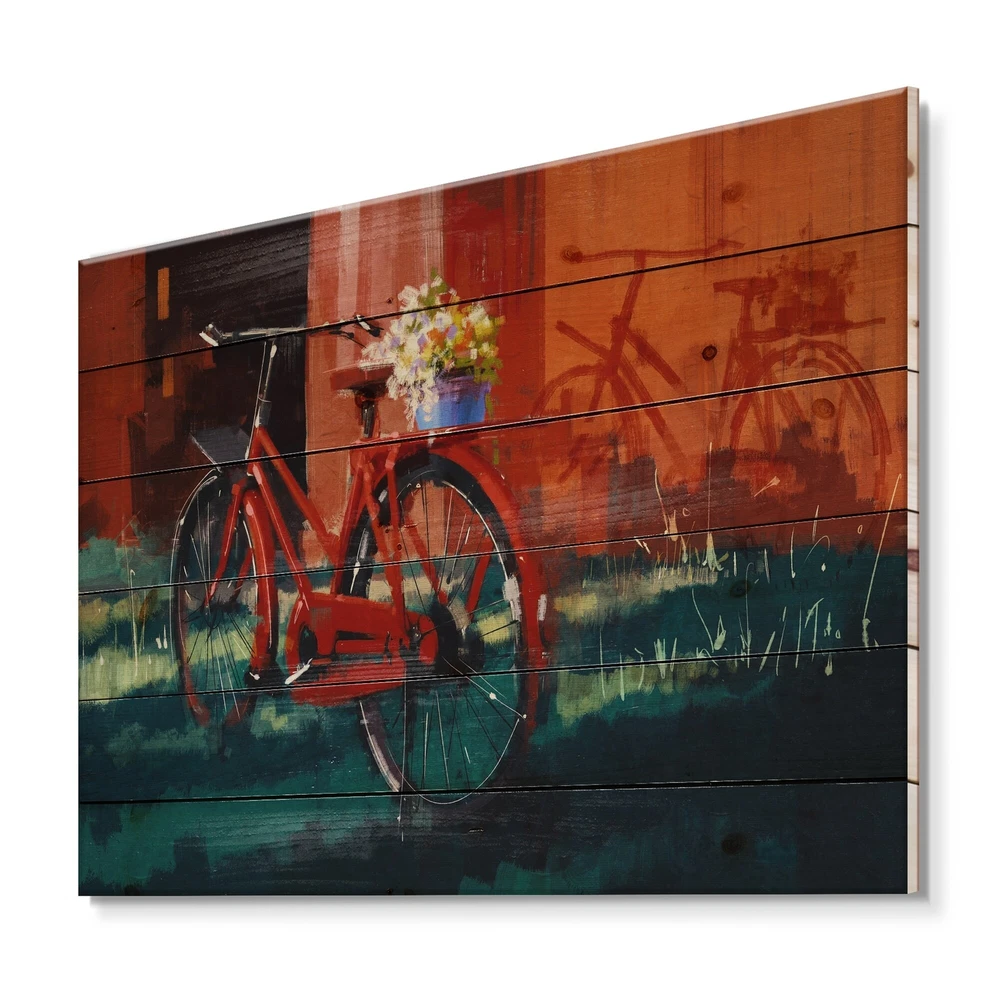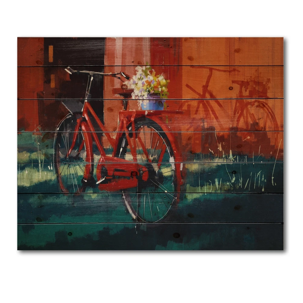 Alas, a modern take on wood wall art. Once typically a wall art piece found only in rustic or farmhouse style decor settings, this Transportation wood wall art will easily fit into even the most contemporary of designs.Using the highest quality 6 Color Canon UV Ink, this Vintage wood wall art incorporates several aspects of fine design into one stunning piece. With its slightly visible wood grain appearing through the colors and sleekly finished edges, it is a wonderful choice for any room in your home or office, being it a traditional or modern space. As each piece of wood has natural grain differences from the next, each of these wood wall arts is a truly unique addition to your space.Each Wood wall art is 100% handmade in Canada on Natural pine wood, using the highest quality ink which Free Shipping Over $49.99* Details Designart 'Red VIntage Bicycle With Bucket' Vintage Print on Natural Pine Wood Product Description: Alas, a modern take on wood wall art. Once typically a wall art piece found only in rustic or farmhouse style decor settings, this Transportation wood wall art will easily fit into even the most contemporary of designs. Using the highest quality 6 Color Canon UV Ink, this Vintage wood wall art incorporates several aspects of fine design into one stunning piece. With its slightly visible wood grain appearing through the colors and sleekly finished edges, it is a wonderful choice for any room in your home or office, being it a traditional or modern space. As each piece of wood has natural grain differences from the next, each of these wood wall arts is a truly unique addition to your space. Each Wood wall art is 100% handmade in Canada on Natural pine wood, using the highest quality ink which will not fade over time. Available in Differents sizes - OrientationHorizontal - SubjectTransportation TypeWood Wall Art, Fine Art, Wood Fine Art, Print on Plaque - Arrives ready to hang on the wall with hanging kit included - MaterialMade with 100% natural pine wood - StyleVintage - Number of Pieces1 - ColorOrange