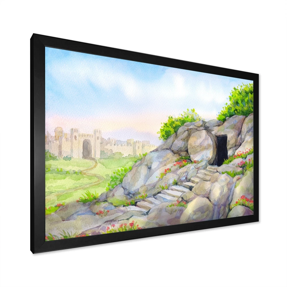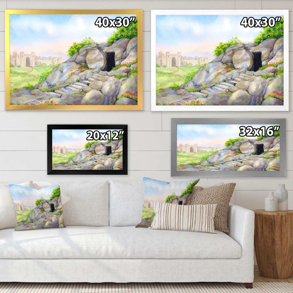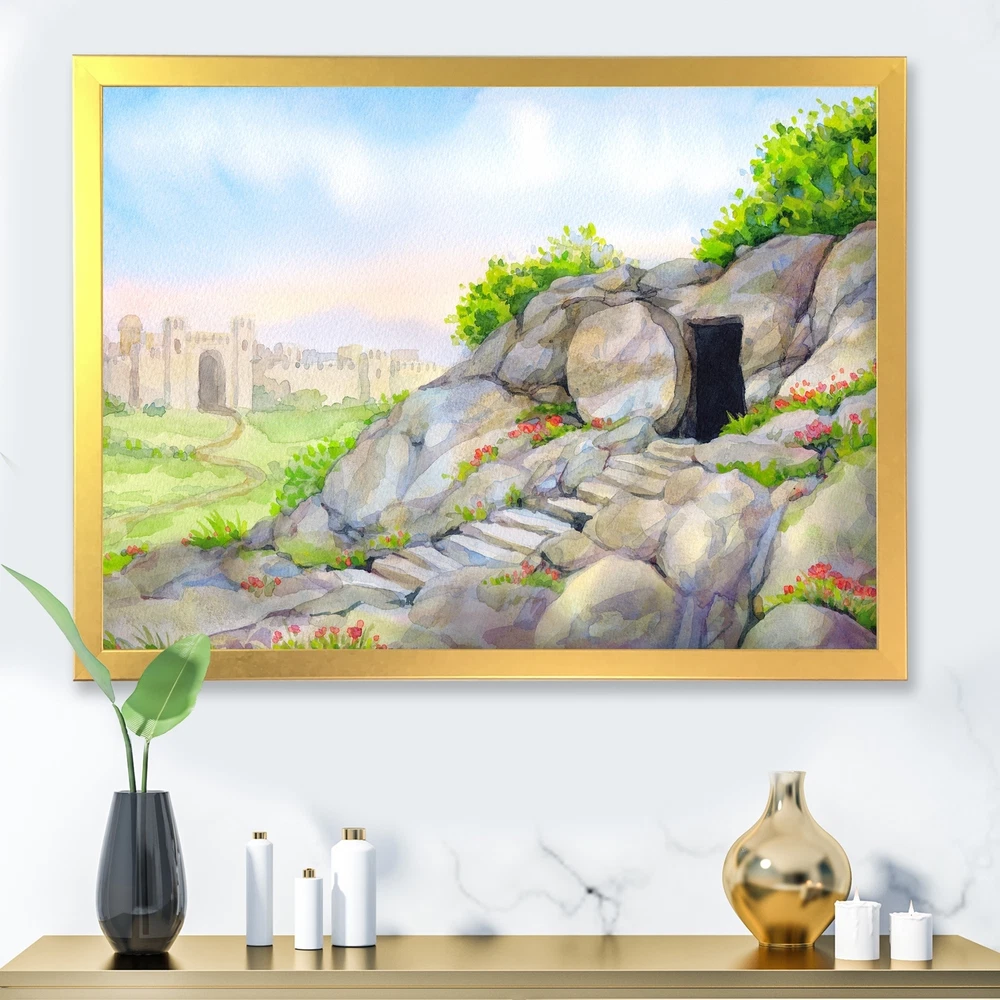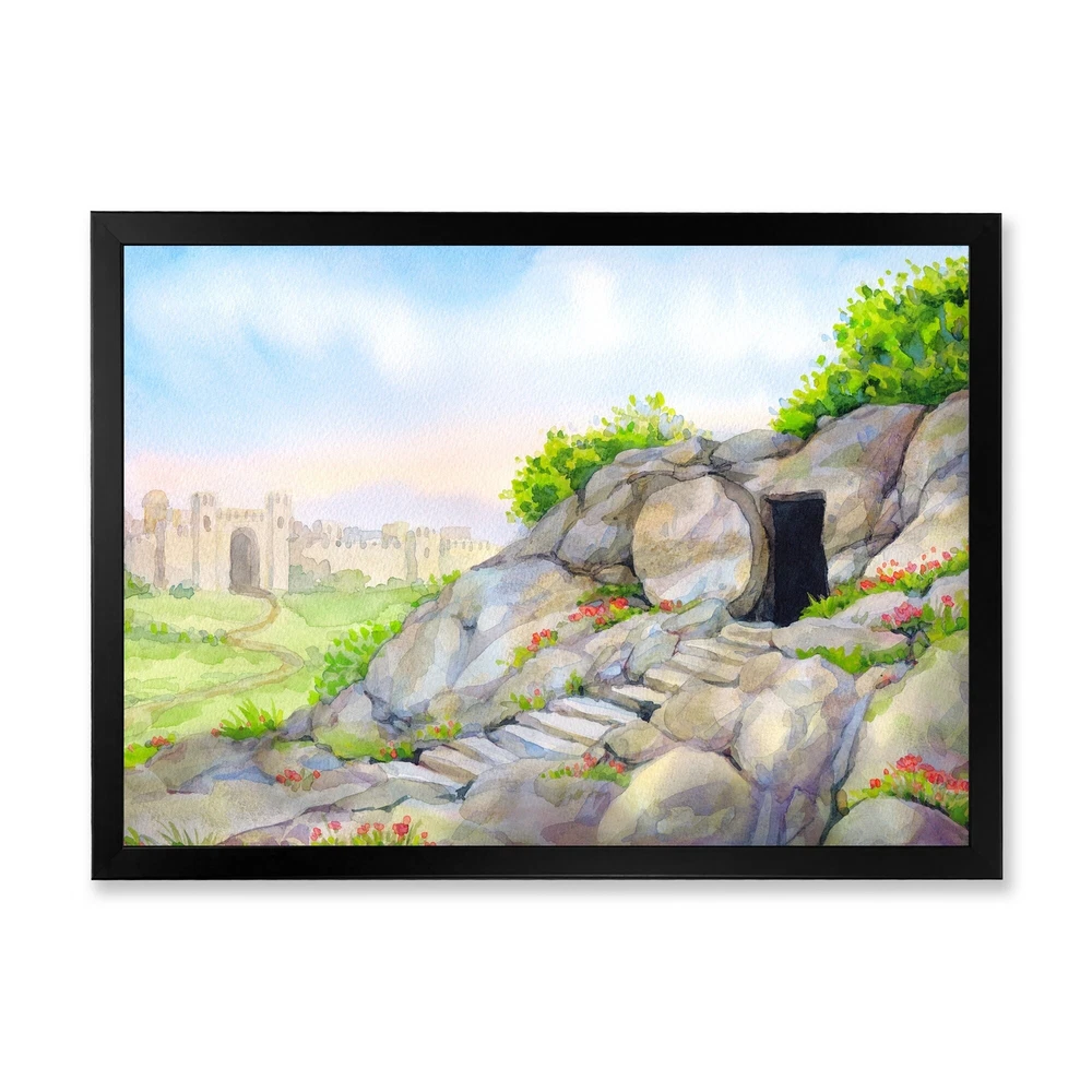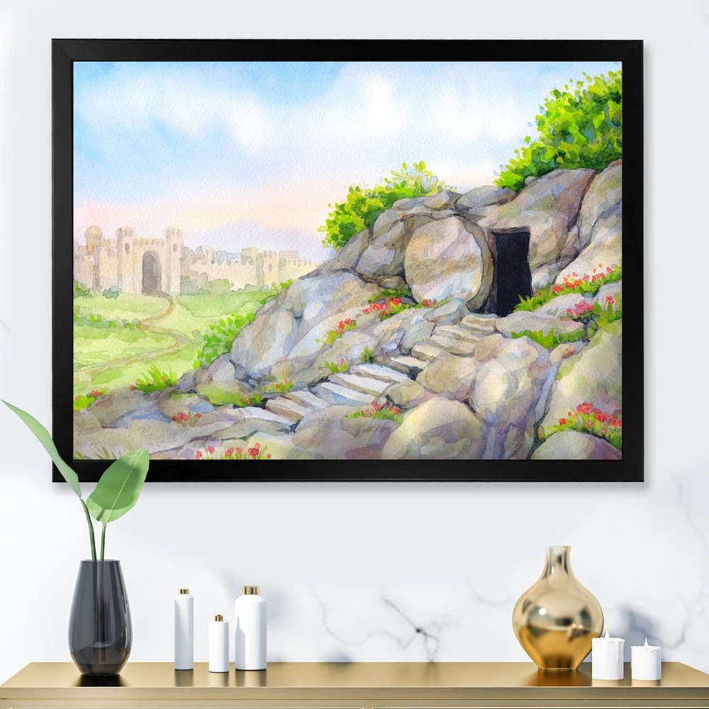 This beautiful Ressurection Of Jesus From Tomb Framed wall Art is printed using the highest quality fade resistant ink on canvas. Every one of our Framed Giclee Prints is printed on premium quality canvas, using the finest quality inks which will not fade over time and then mounted and framed on a 1.5 inch wide frame.This framed art print is available in many different color frames. All of our framed art prints are carefully packaged with corner protectors, fragile labeling, and sturdy boxes to ensure a safe delivery. Every framed art arrives ready to hang on the wall, with the hanging kit included.Features:- Style : Vintage- Subject : Architecture- Color : Green- Premium quality cotton canvas mounted.- Available in several frame colors. - Arrives with instructions and hanging kit Free Shipping Over $49.99* Details Designart "Ressurection Of Jesus From Tomb" Vintage Framed Art Print Product Description: This beautiful Ressurection Of Jesus From Tomb Framed wall Art is printed using the highest quality fade resistant ink on canvas. Every one of our Framed Giclee Prints is printed on premium quality canvas, using the finest quality inks which will not fade over time and then mounted and framed on a 1.5 inch wide frame. This framed art print is available in many different color frames. All of our framed art prints are carefully packaged with corner protectors, fragile labeling, and sturdy boxes to ensure a safe delivery. Every framed art arrives ready to hang on the wall, with the hanging kit included. Features: - Style Vintage - Subject Architecture - Color Green - Premium quality cotton canvas mounted. - Available in several frame colors. - Arrives with instructions and hanging kit