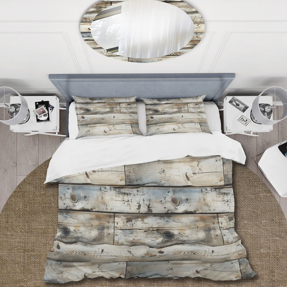There is just nothing better than a beautiful, inviting comfortable bed after a long day. This Graphic Print bed set is created using the richest colors stemming from high density Italian ink and the softest fabrics making it the perfect way to spruce up your bedroom, while keeping it ultra-comfortable. This luxurious Rustic Farmhouse Weathered Planks III bed design is made with 100% microfiber polyester, making it ultra-soft to ensure you sleep comfortably all night long. This Vintage set includes 1 Bed Cover and 2 Shams and is available in twin, queen and king sizes.This Bedding Set is easily integrated into your already decorated space.What's Included? - Duvet Cover - Shams - Pillow Cases not included but can be buy separately - Comforter Insert NOT INCLUDEDFeatures - Free Shipping Over $49.99* Details Designart "Rustic Farmhouse Weathered Planks III" Abstract Bed Cover Set With 2 Product Description: There is just nothing better than a beautiful, inviting comfortable bed after a long day. This Graphic Print bed set is created using the richest colors stemming from high density Italian ink and the softest fabrics making it the perfect way to spruce up your bedroom, while keeping it ultra-comfortable. This luxurious Rustic Farmhouse Weathered Planks III bed design is made with 100% microfiber polyester, making it ultra-soft to ensure you sleep comfortably all night long. This Vintage set includes 1 Bed Cover and 2 Shams and is available in twin, queen and king sizes. This Bedding Set is easily integrated into your already decorated space. What's Included? - Duvet Cover - Shams - Pillow Cases not included but can be buy separately - Comforter Insert NOT INCLUDED Features - Printed using High Density Italian Ink making the colors extra vibrant. - Made from ultra-soft, lightweight 100% microfiber polyester. Wrinkle resistant fabric. Down-like comfort, odorless. - The Vintage bed set includes one bed cover and two standard pillow shams to create a complete and stylish look. - The elegant and soft colors are both trendy and fun to brighten and update your bedroom. - Made in Canada - Decorative Wall Art and throw pillows to match this set are available but sold separately. - Actual comforter inserts and pillow inserts are not included. This set includes the two pillow shams and comforter cover only. King Dimensions: - 1 Duvet Cover104 inches wide x 88 inches long - 2 King Shams20 inches wide x 36 inches long Queen Dimensions: - 1 Duvet Cover88 inches wide x 88 inches long - 2 Standard Shams16 inches wide x 26 inches long Twin Dimensions: - 1 Duvet Cover68 inches wide x 88 inches long - 1 Standard Sham16 inches wide x 26 inches long Product Details - MaterialPolyester. - PatternAbstract - ColorBrown - StyleVintage - ReversibleNo Directions: Fabric Care InstructionsMachine wash on cold gentle cycle. Wash separately on first wash. Use only non- chlorine bleach when needed. Tumble dry low. Remove promptly.