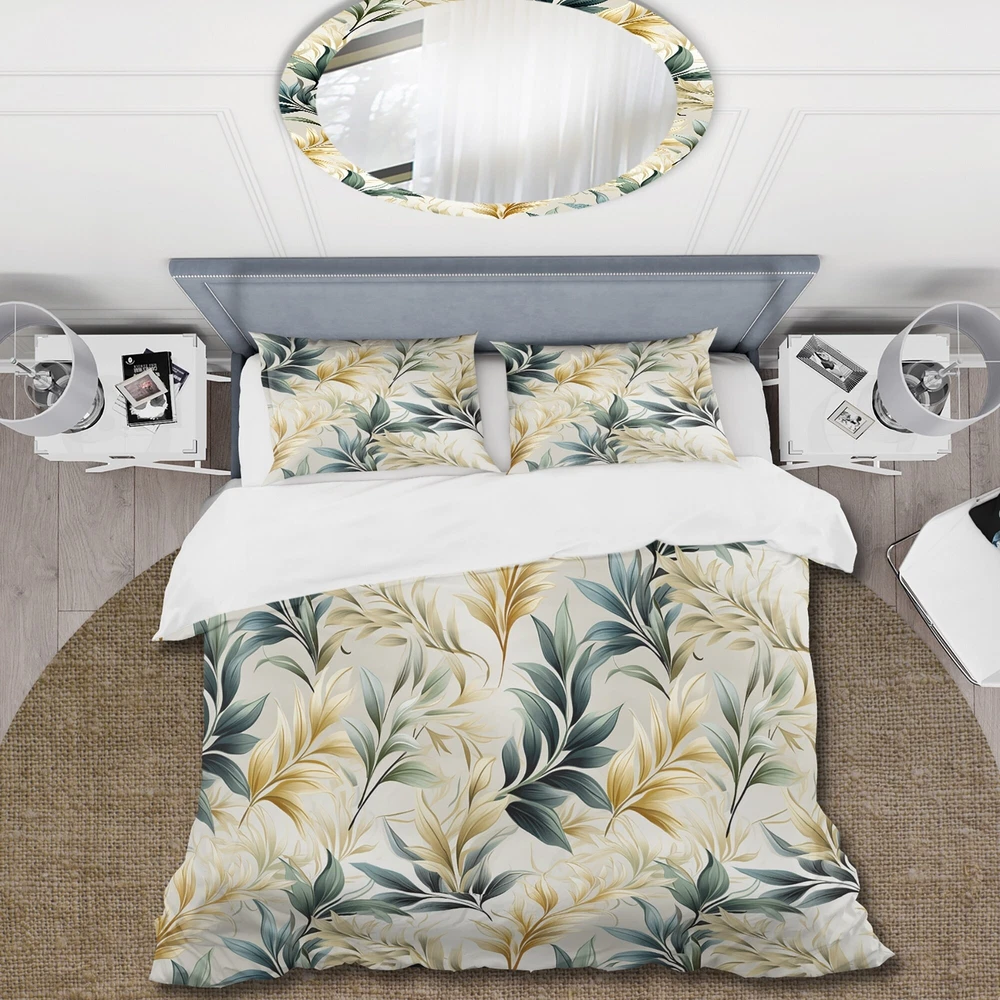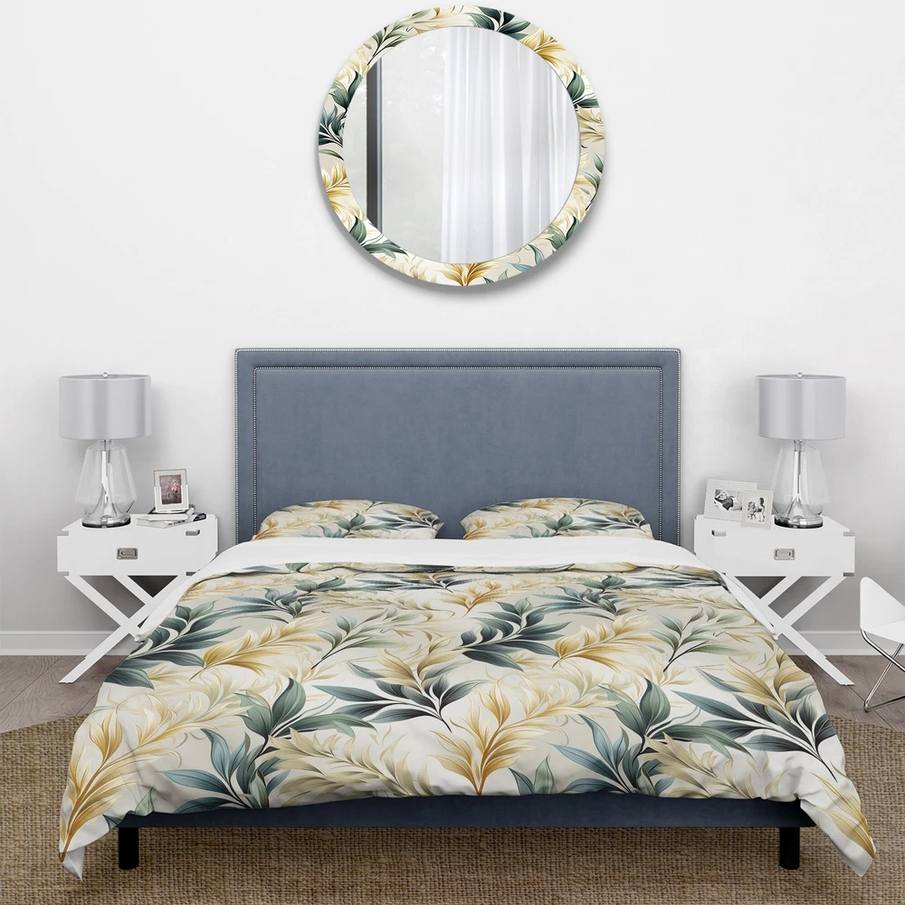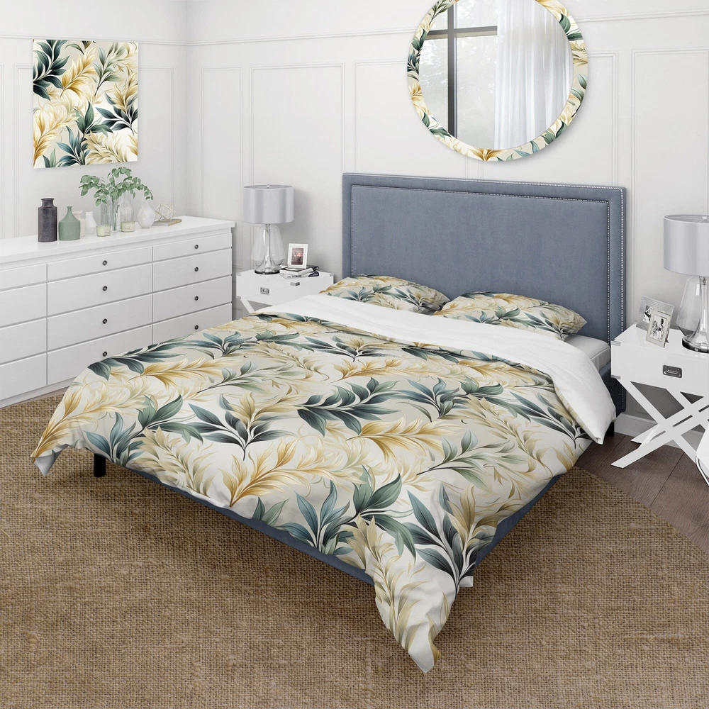 There is just nothing better than a beautiful, inviting comfortable bed after a long day. This Botanical, Nature, Floral bed set is created using the richest colors stemming from high density Italian ink and the softest fabrics making it the perfect way to spruce up your bedroom, while keeping it ultra-comfortable. This luxurious Serene Ferns I bed design is made with 100% microfiber polyester, making it ultra-soft to ensure you sleep comfortably all night long. This Bohemian & Eclectic set includes 1 Bed Cover and 2 Shams and is available in twin, queen and king sizes.This Bedding Set is easily integrated into your already decorated space.What's Included? - Duvet Cover - Shams - Pillow Cases not included but can be buy separately - Comforter Insert NOT INCLUDEDFeatures - Free Shipping Over $49.99* Details Designart "Serene Ferns I" Floral Bedding Cover Set With 2 Shams Product Description: There is just nothing better than a beautiful, inviting comfortable bed after a long day. This Botanical, Nature, Floral bed set is created using the richest colors stemming from high density Italian ink and the softest fabrics making it the perfect way to spruce up your bedroom, while keeping it ultra-comfortable. This luxurious Serene Ferns I bed design is made with 100% microfiber polyester, making it ultra-soft to ensure you sleep comfortably all night long. This Bohemian & Eclectic set includes 1 Bed Cover and 2 Shams and is available in twin, queen and king sizes. This Bedding Set is easily integrated into your already decorated space. What's Included? - Duvet Cover - Shams - Pillow Cases not included but can be buy separately - Comforter Insert NOT INCLUDED Features - Printed using High Density Italian Ink making the colors extra vibrant. - Made from ultra-soft, lightweight 100% microfiber polyester. Wrinkle resistant fabric. Down-like comfort, odorless. - The Bohemian & Eclectic bed set includes one bed cover and two standard pillow shams to create a complete and stylish look. - The elegant and soft colors are both trendy and fun to brighten and update your bedroom. - Made in Canada - Decorative Wall Art and throw pillows to match this set are available but sold separately. - Actual comforter inserts and pillow inserts are not included. This set includes the two pillow shams and comforter cover only. King Dimensions: - 1 Duvet Cover104 inches wide x 88 inches long - 2 King Shams20 inches wide x 36 inches long Queen Dimensions: - 1 Duvet Cover88 inches wide x 88 inches long - 2 Standard Shams16 inches wide x 26 inches long Twin Dimensions: - 1 Duvet Cover68 inches wide x 88 inches long - 1 Standard Sham16 inches wide x 26 inches long Product Details - MaterialPolyester. - PatternFloral - ColorGreen - StyleBohemian & Eclectic - ReversibleNo Directions: Fabric Care InstructionsMachine wash on cold gentle cycle. Wash separately on first wash. Use only non- chlorine bleach when needed. Tumble dry low. Remove promptly.