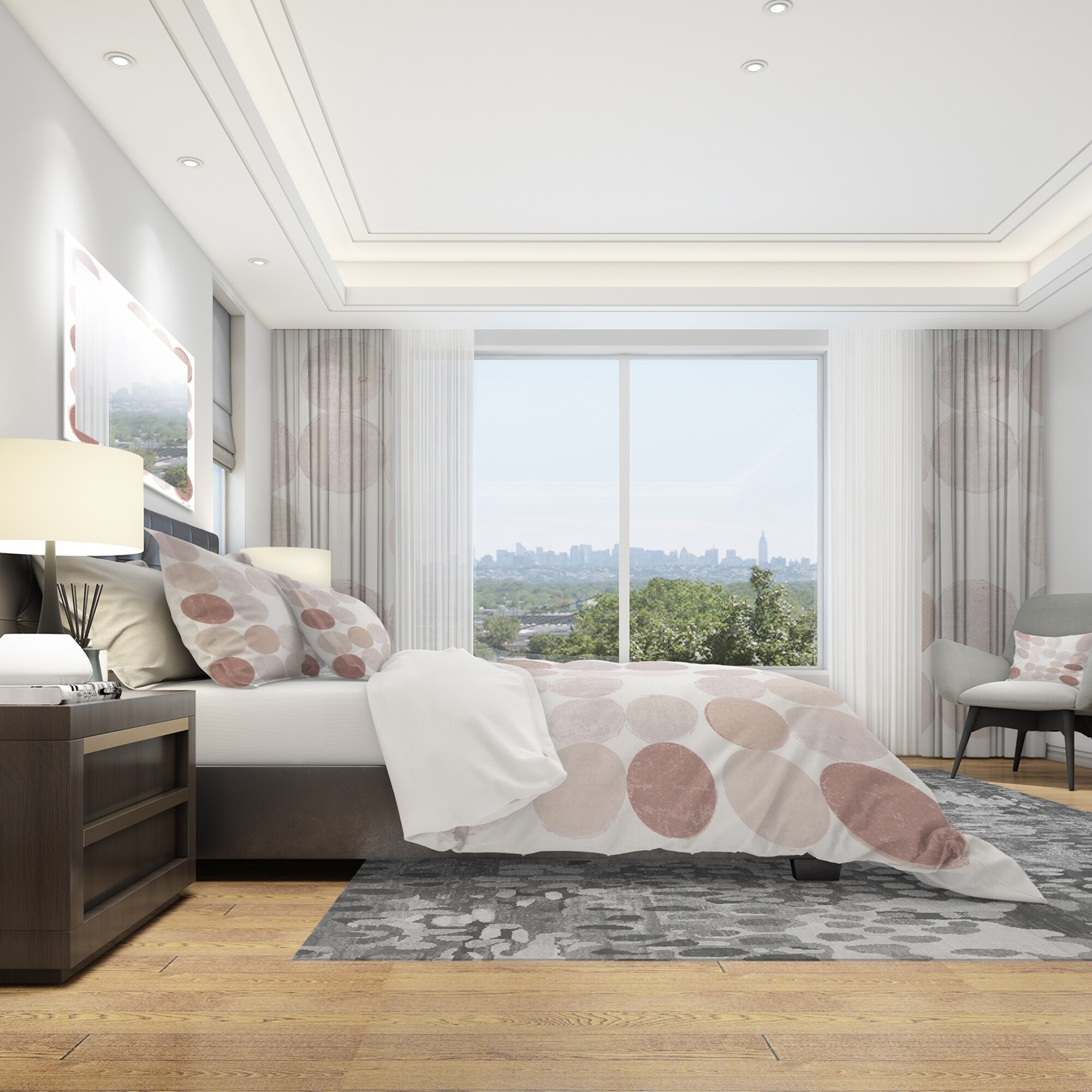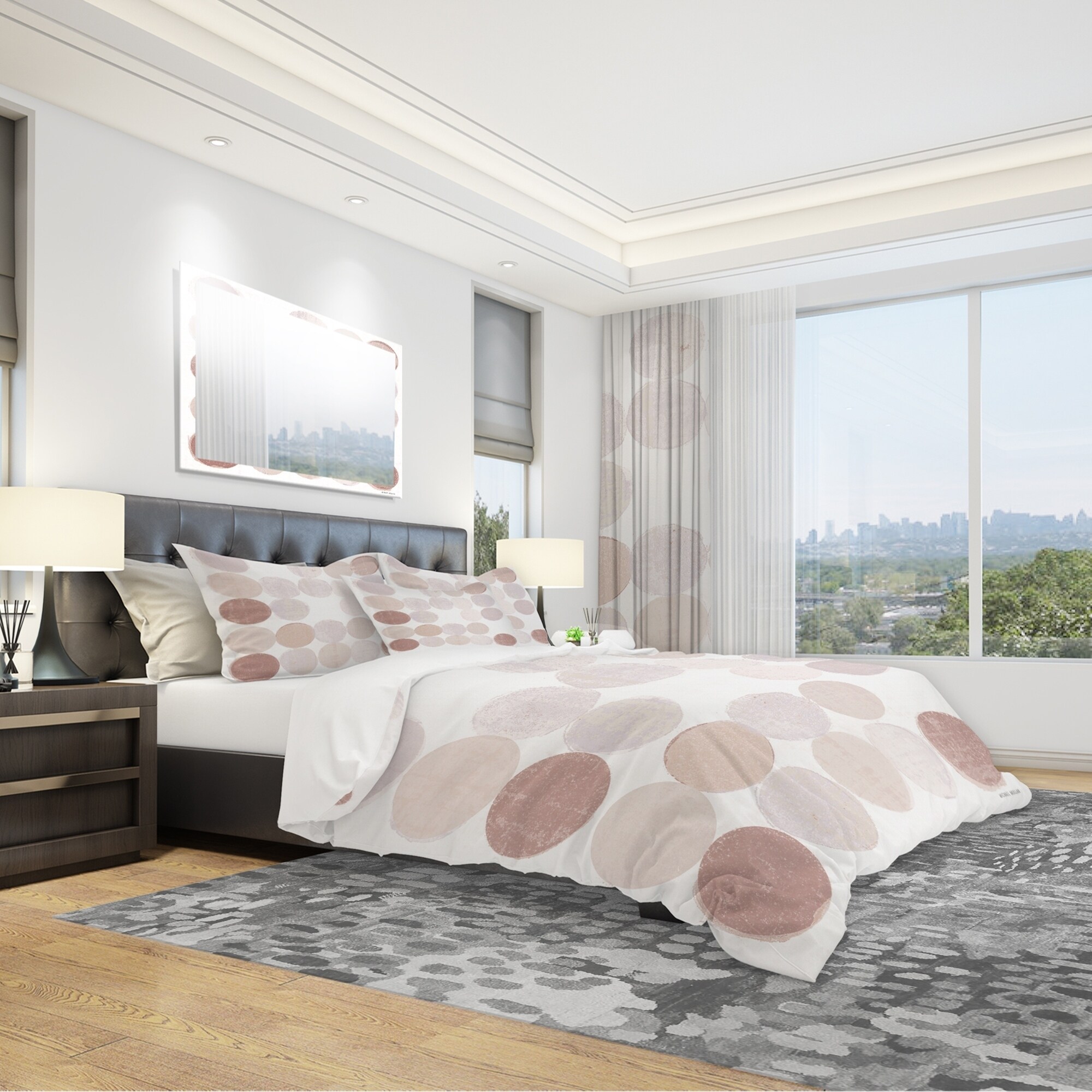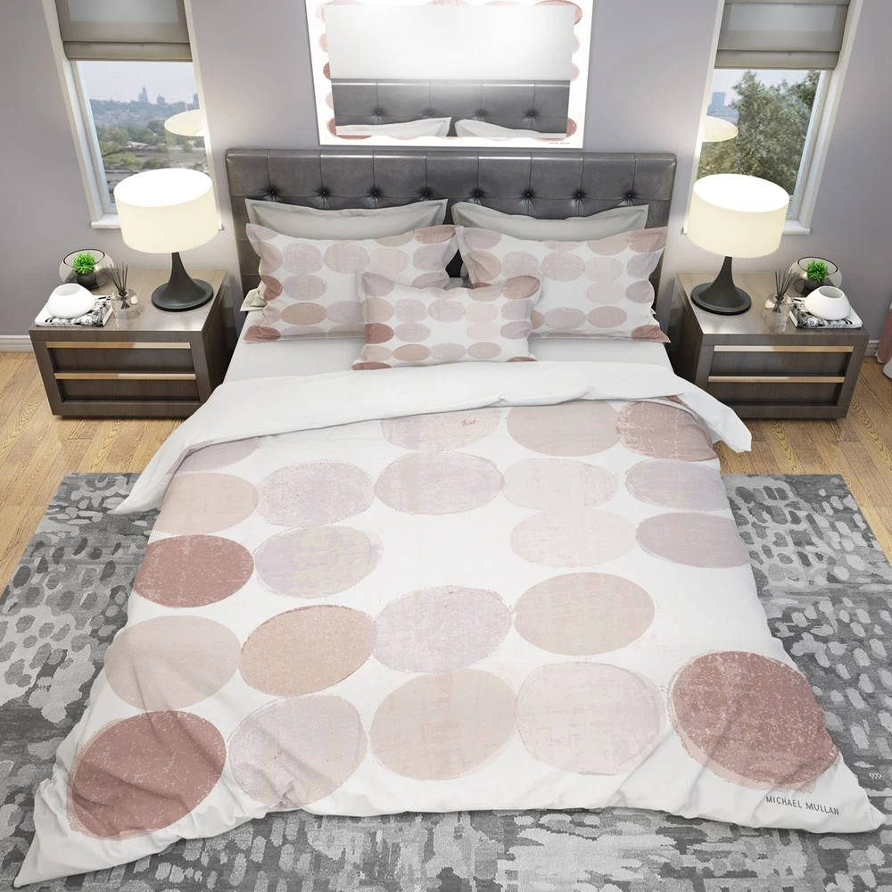 Transform your bedroom into a cozy retreat with this luxurious bedding set. The 'Shade of Pink Geometric Dots II' design boasts vibrant colors, stemming from high-density Italian ink, and is made with the softest 100% microfiber polyester, ensuring a comfortable and restful sleep. This mid-century modern set includes a duvet cover and two shams, available in twin, queen, and king sizes. Plus, it's wrinkle-resistant, odorless, and easy to clean. Made in Canada, this bedding set is perfect for updating your bedroom decor.Features: Vibrant colors printed with high-density Italian ink Made with ultra-soft, lightweight, and wrinkle-resistant 100% microfiber polyester Includes one duvet cover and two pillow shams for a complete, stylish look Trendy and fun design brightens and updates any Free Shipping Over $49.99* Details Designart 'Shade of Pink Geometric Dots II' Geometric Bedding Set - Duvet Cover Product Description: Transform your bedroom into a cozy retreat with this luxurious bedding set. The 'Shade of Pink Geometric Dots II' design boasts vibrant colors, stemming from high-density Italian ink, and is made with the softest 100% microfiber polyester, ensuring a comfortable and restful sleep. This mid-century modern set includes a duvet cover and two shams, available in twin, queen, and king sizes. Plus, it's wrinkle-resistant, odorless, and easy to clean. Made in Canada, this bedding set is perfect for updating your bedroom decor. Features: Vibrant colors printed with high-density Italian ink Made with ultra-soft, lightweight, and wrinkle-resistant 100% microfiber polyester Includes one duvet cover and two pillow shams for a complete, stylish look Trendy and fun design brightens and updates any bedroom Made in Canada Comforter insert and pillow cases not included Other details: MaterialPolyester PatternGeometric ColorBeige StyleAbstract, Mid-Century Modern ReversibleNo King: Duvet Cover104 inches wide x 88 inches long 2 King Shams20 inches wide x 36 inches long Queen: Duvet Cover88 inches wide x 88 inches long 2 Standard Shams16 inches wide x 26 inches long Twin: Duvet Cover68 inches wide x 88 inches long 1 Standard Sham16 inches wide x 26 inches long Care InstructionsMachine wash on cold gentle cycle. Wash separately on first wash. Use only non-chlorine bleach when needed. Tumble dry low. Remove promptly.