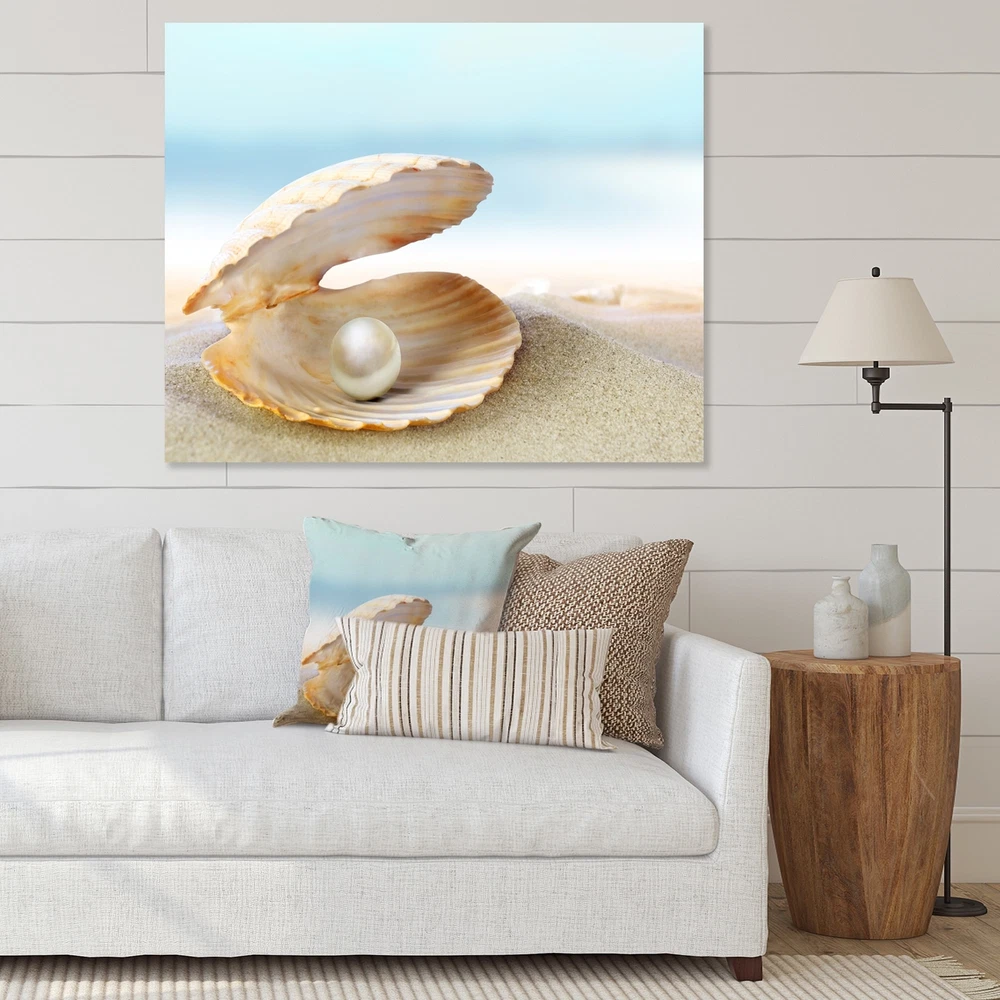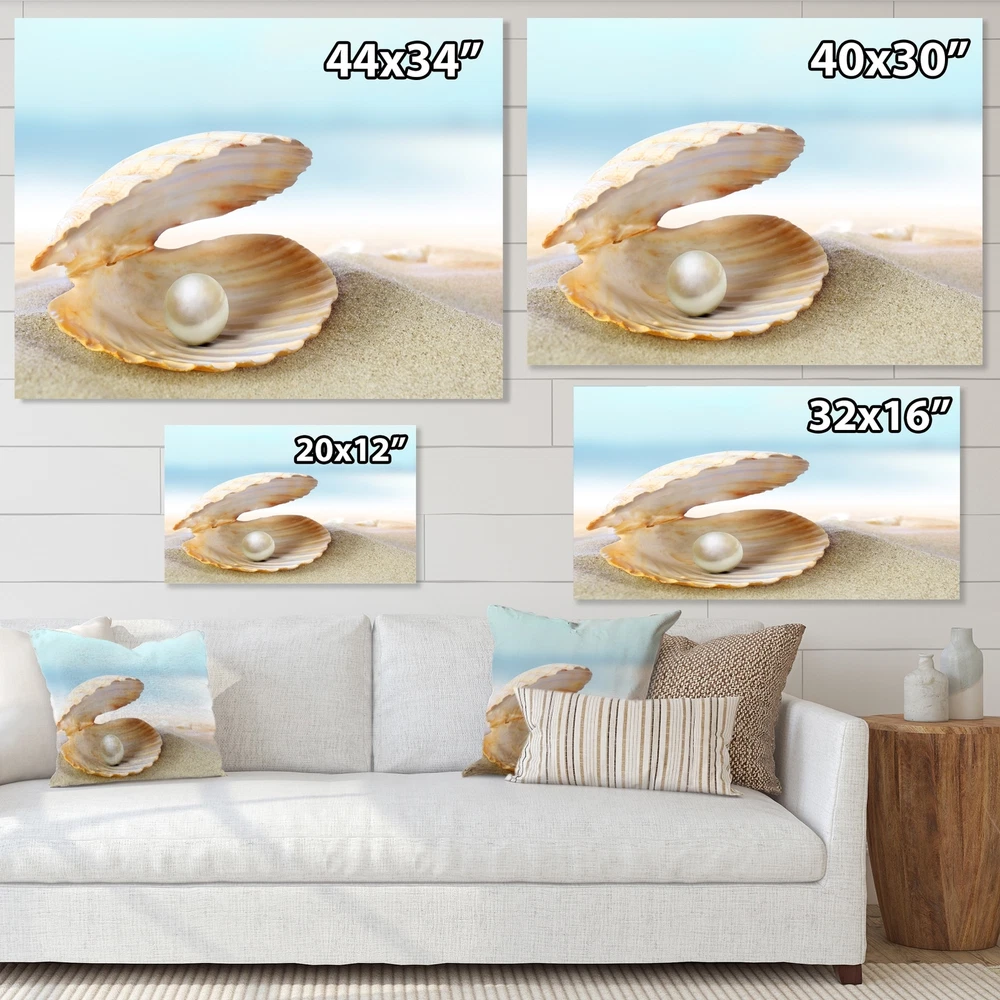 This beautiful Shell With A Pearl Canvas Art is printed using the highest quality fade-resistant ink on canvas. Every one of our fine art giclee canvas prints is printed on premium quality cotton canvas, using the finest quality inks which will not fade over time. Each giclee print is stretched tightly over a 1-inch wood sub frame for small size prints or a 1.5-inch wood subframe for large size prints (40x30 60x28 ...) ensuring the canvas is taught and does not buckle. This canvas art print is gallery-wrapped (the design continues on the sides), giving it a real art gallery feel. All of our canvas prints are carefully packaged with plastic protection, fragile labeling, and sturdy boxes to ensure safe delivery. Every canvas print arrives ready to hang on the wall, with the hanging kits Free Shipping Over $49.99* Details Designart "Shell With A Cultured Pearl" Nautical & Coastal Canvas Wall Art Print Product Description: This beautiful Shell With A Cultured Pearl Canvas Art is printed using the highest quality fade-resistant ink on canvas. Every one of our fine art giclee canvas prints is printed on premium quality cotton canvas, using the finest quality inks which will not fade over time. Each giclee print is stretched tightly over a 1-inch wood sub frame for small size prints or a 1.5-inch wood subframe for large size prints (40x30 60x28 ...) ensuring the canvas is taught and does not buckle. This canvas art print is gallery-wrapped (the design continues on the sides), giving it a real art gallery feel. All of our canvas prints are carefully packaged with plastic protection, fragile labeling, and sturdy boxes to ensure safe delivery. Every canvas print arrives ready to hang on the wall, with the hanging kits included. - Style Nautical & Coastal - Subject Animals, Beach - Color Beige - This canvas giclee print is gallery-wrapped (the design continues on the sides) , giving it a real art gallery feel. - Premium quality cotton canvas. - Arrives ready to hang on the wall - Easy to Hang