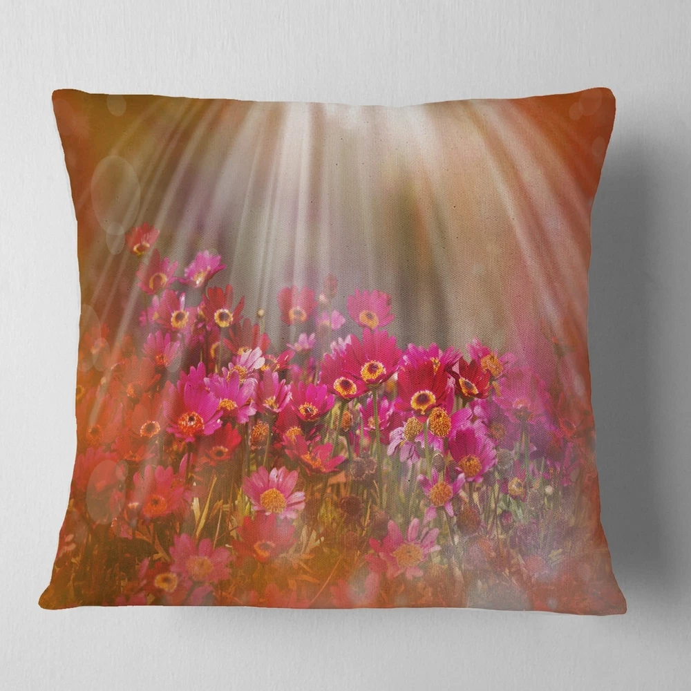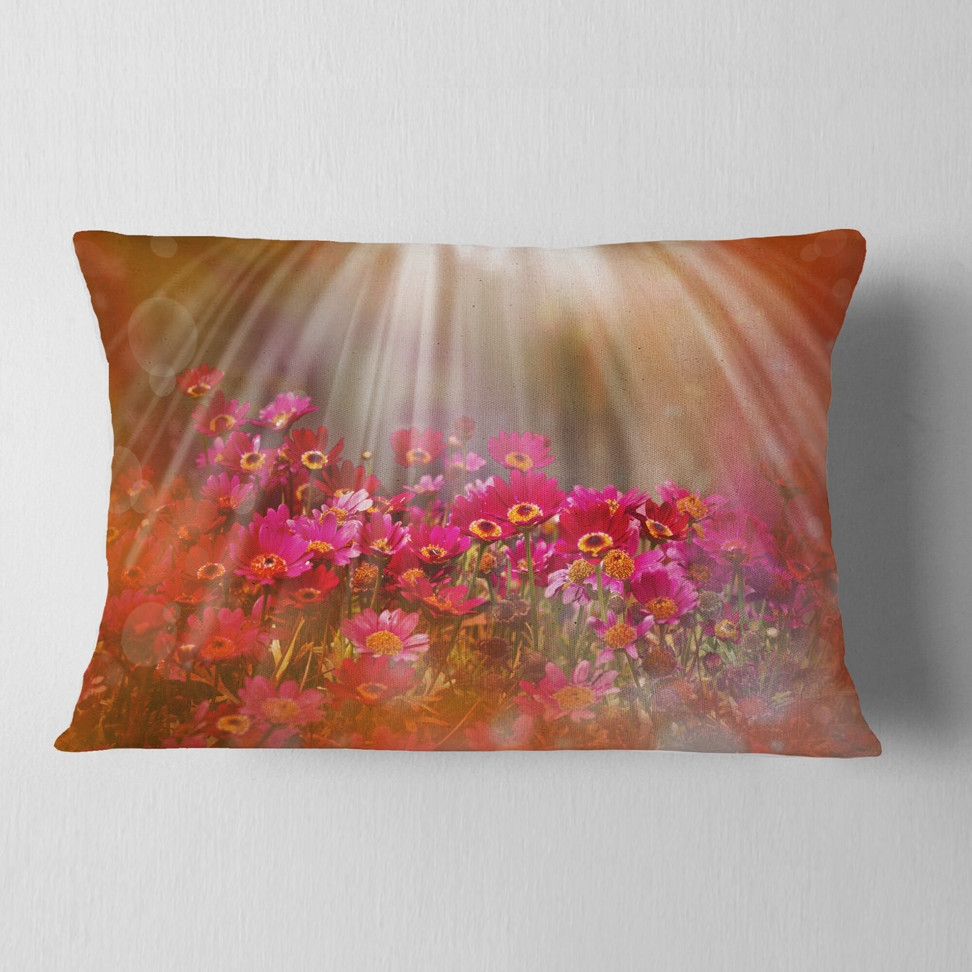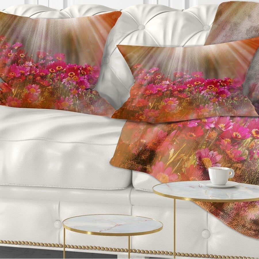 Decorative Throw Pillows for Couch Bed Sofa with Zip CoversAn easy, fun way to add a pop of color or bring new life to any room in your home or office is with these beautiful Floral throw pillows. Dress up your bed, sofa or lounger with this decorative design art pillows. Perfect as Farmhouse bedroom décor, lounge décor Traditional living room décor. It adds a fun accent to any room. Throw pillows really do work wonders: they can transform any room from uninviting discomfort to warm and welcoming. And they really do go almost anywhere - arrange a couple on the couch or sofa, place one in your overstuffed chair for extra coziness, toss a couple on the bed and prop yourself up for a great read.These Floral pillow is printed using High Color Density Italian inks to create a vibrantly colored, Free Shipping Over $49.99* Details Designart 'Sunrays over Little Red Flowers' Floral Throw Pillow Product Description: Decorative Throw Pillows for Couch Bed Sofa with Zip Covers An easy, fun way to add a pop of color or bring new life to any room in your home or office is with these beautiful Floral throw pillows. Dress up your bed, sofa or lounger with this decorative design art pillows. Perfect as Farmhouse bedroom décor, lounge décor Traditional living room décor. It adds a fun accent to any room. Throw pillows really do work wondersthey can transform any room from uninviting discomfort to warm and welcoming. And they really do go almost anywhere - arrange a couple on the couch or sofa, place one in your overstuffed chair for extra coziness, toss a couple on the bed and prop yourself up for a great read. These Floral pillow is printed using High Color Density Italian inks to create a vibrantly colored, sharp artwork. Features: Perfect accent to any furniture piece Basic shapes with a modern graphic design twist Printed on 100% light weight polyester Cushion filled with 100% polyester fill Wrinkle resistant fabric Zip Closure so you can remove the pillow from its' cover Down-like comfort - Odorless 100% Hypoallergenic Machine Wash Cold Separately, Gently Cycle Only, No bleach, hang to dry Print on Demand with High Density Italian Ink Available in Several sizes Attribute :Farmhouse, Traditional, Modern Subject Floral, Landscapes, Country Charm