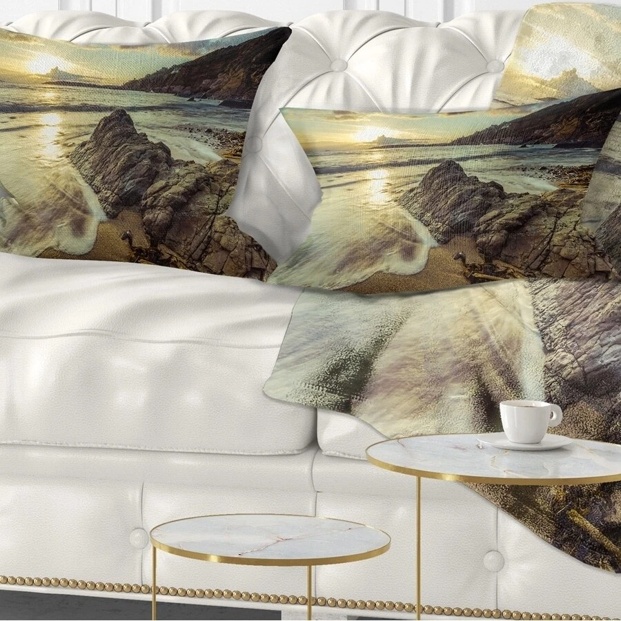 Decorative Throw Pillows for Couch Bed Sofa with Zip CoversAn easy, fun way to add a pop of color or bring new life to any room in your home or office is with these beautiful Sea & Shore throw pillows. Dress up your bed, sofa or lounger with this decorative design art pillows. Perfect as Coastal bedroom décor, lounge décor Beach living room décor. It adds a fun accent to any room. Throw pillows really do work wonders: they can transform any room from uninviting discomfort to warm and welcoming. And they really do go almost anywhere - arrange a couple on the couch or sofa, place one in your overstuffed chair for extra coziness, toss a couple on the bed and prop yourself up for a great read.These Sea & Shore pillow is printed using High Color Density Italian inks to create a vibrantly Free Shipping Over $49.99* Details Designart 'Sunset at Beach Vintage Style' Modern Seascape Throw Pillow Product Description: Decorative Throw Pillows for Couch Bed Sofa with Zip Covers An easy, fun way to add a pop of color or bring new life to any room in your home or office is with these beautiful Sea & Shore throw pillows. Dress up your bed, sofa or lounger with this decorative design art pillows. Perfect as Coastal bedroom décor, lounge décor Beach living room décor. It adds a fun accent to any room. Throw pillows really do work wondersthey can transform any room from uninviting discomfort to warm and welcoming. And they really do go almost anywhere - arrange a couple on the couch or sofa, place one in your overstuffed chair for extra coziness, toss a couple on the bed and prop yourself up for a great read. These Sea & Shore pillow is printed using High Color Density Italian inks to create a vibrantly colored, sharp artwork. Features: Perfect accent to any furniture piece Basic shapes with a modern graphic design twist Printed on ultra smooth and 100% light weight polyester Cushion filled with 100% polyester fill Wrinkle resistant fabric Zip Closure so you can remove the pillow from its' cover Down-like comfort - Odorless 100% Hypoallergenic Machine Wash Cold Separately, Gently Cycle Only, No bleach, hang to dry Print on Demand with High Density Italian Ink Available in Several sizes Attribute :Coastal, Beach, Tropical Subject Sea & Shore, Nautical, Landscapes