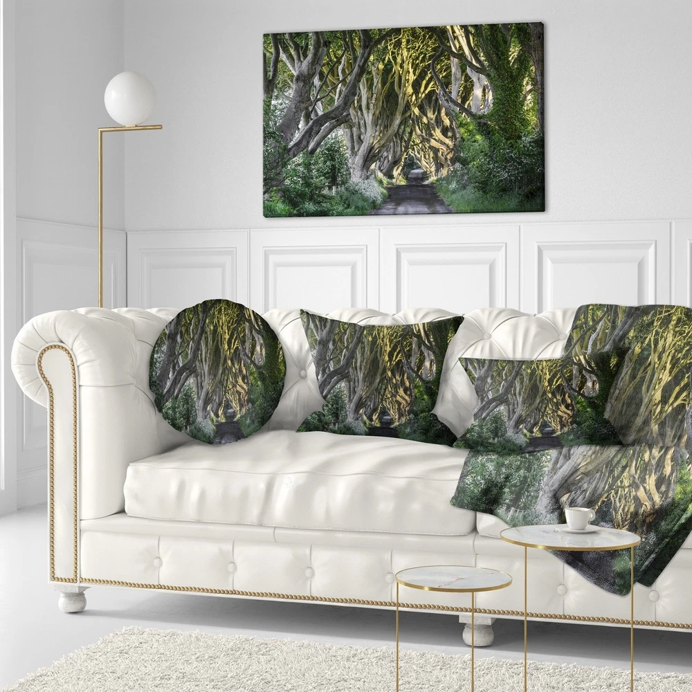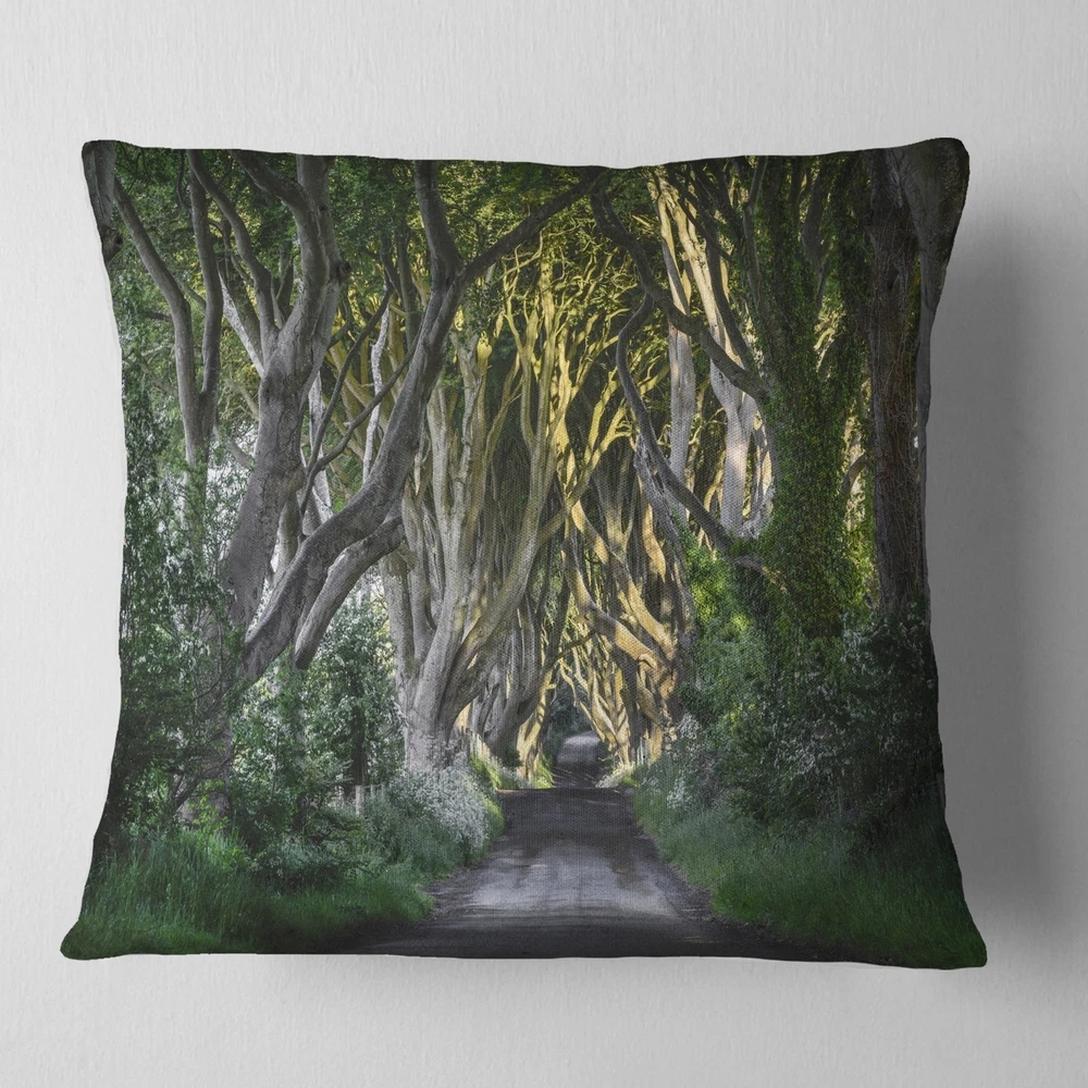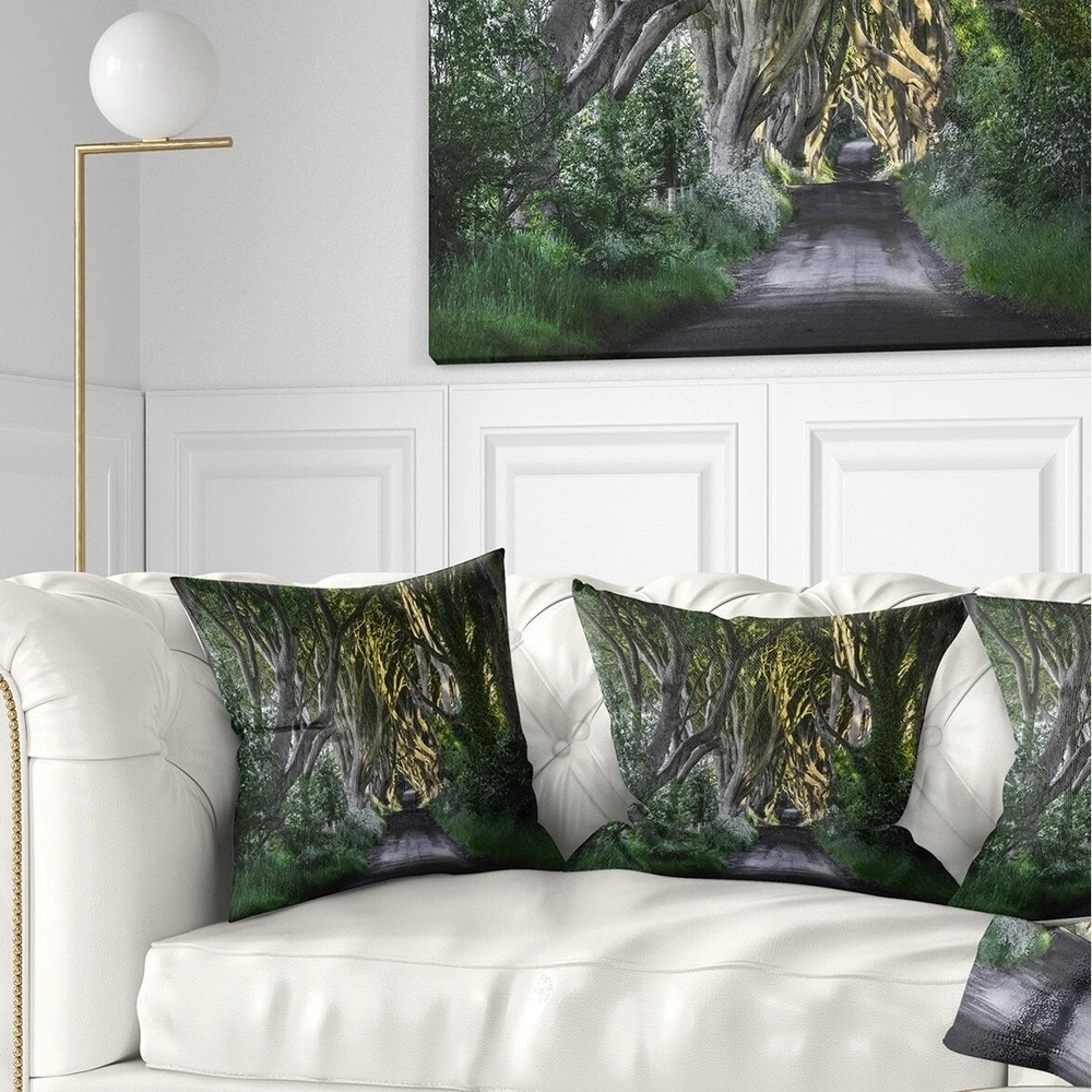 Decorative Throw Pillows for Couch Bed Sofa with Zip CoversAn easy, fun way to add a pop of color or bring new life to any room in your home or office is with these beautiful Landscape throw pillows. Dress up your bed, sofa or lounger with this decorative design art pillows. Perfect as Farmhouse bedroom décor, lounge décor Traditional living room décor. It adds a fun accent to any room. Throw pillows really do work wonders: they can transform any room from uninviting discomfort to warm and welcoming. And they really do go almost anywhere - arrange a couple on the couch or sofa, place one in your overstuffed chair for extra coziness, toss a couple on the bed and prop yourself up for a great read.These Landscapes pillow is printed using High Color Density Italian inks to create a vibrantly Free Shipping Over $49.99* Details Designart 'The Dark Hedges Ireland Landscape' Photography Throw Pillow Product Description: Decorative Throw Pillows for Couch Bed Sofa with Zip Covers An easy, fun way to add a pop of color or bring new life to any room in your home or office is with these beautiful Landscape throw pillows. Dress up your bed, sofa or lounger with this decorative design art pillows. Perfect as Farmhouse bedroom décor, lounge décor Traditional living room décor. It adds a fun accent to any room. Throw pillows really do work wondersthey can transform any room from uninviting discomfort to warm and welcoming. And they really do go almost anywhere - arrange a couple on the couch or sofa, place one in your overstuffed chair for extra coziness, toss a couple on the bed and prop yourself up for a great read. These Landscapes pillow is printed using High Color Density Italian inks to create a vibrantly colored, sharp artwork. Features: Perfect accent to any furniture piece Basic shapes with a modern graphic design twist Printed on ultra smooth and 100% light weight polyester Cushion filled with 100% polyester fill Wrinkle resistant fabric Zip Closure so you can remove the pillow from its' cover Down-like comfort - Odorless 100% Hypoallergenic Machine Wash Cold Separately, Gently Cycle Only, No bleach, hang to dry Print on Demand with High Density Italian Ink Available in Several sizes Attribute :Farmhouse, Traditional, Fine Art Giclee Subject Landscapes, Country Charrm, photography
