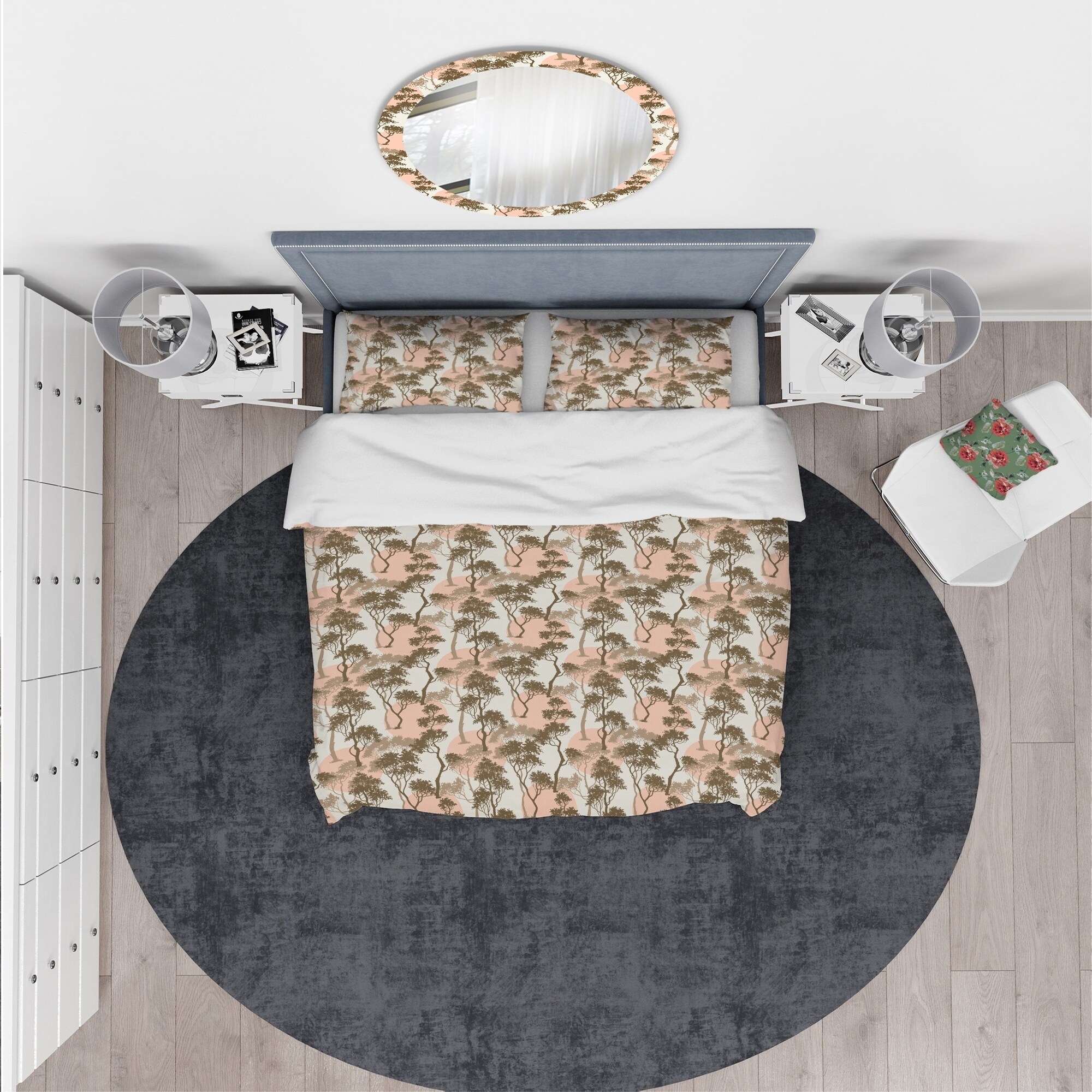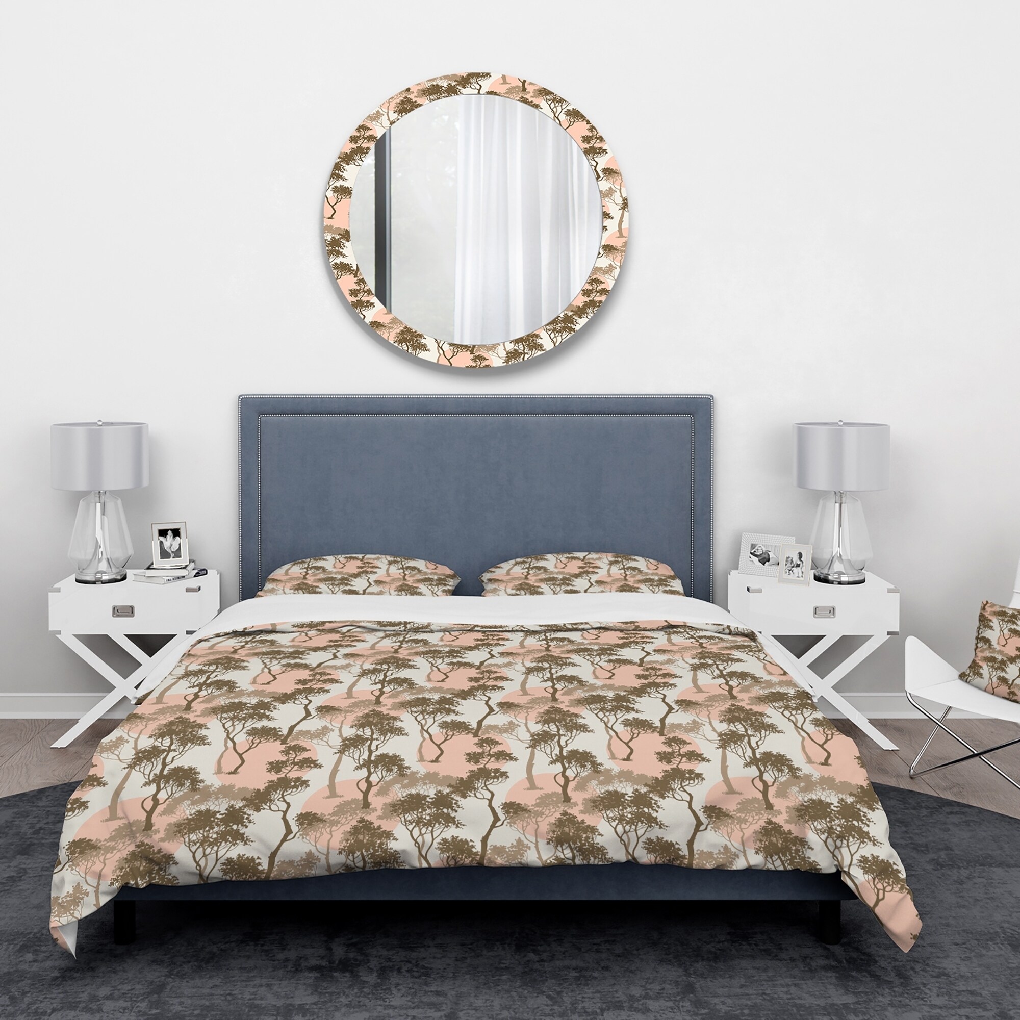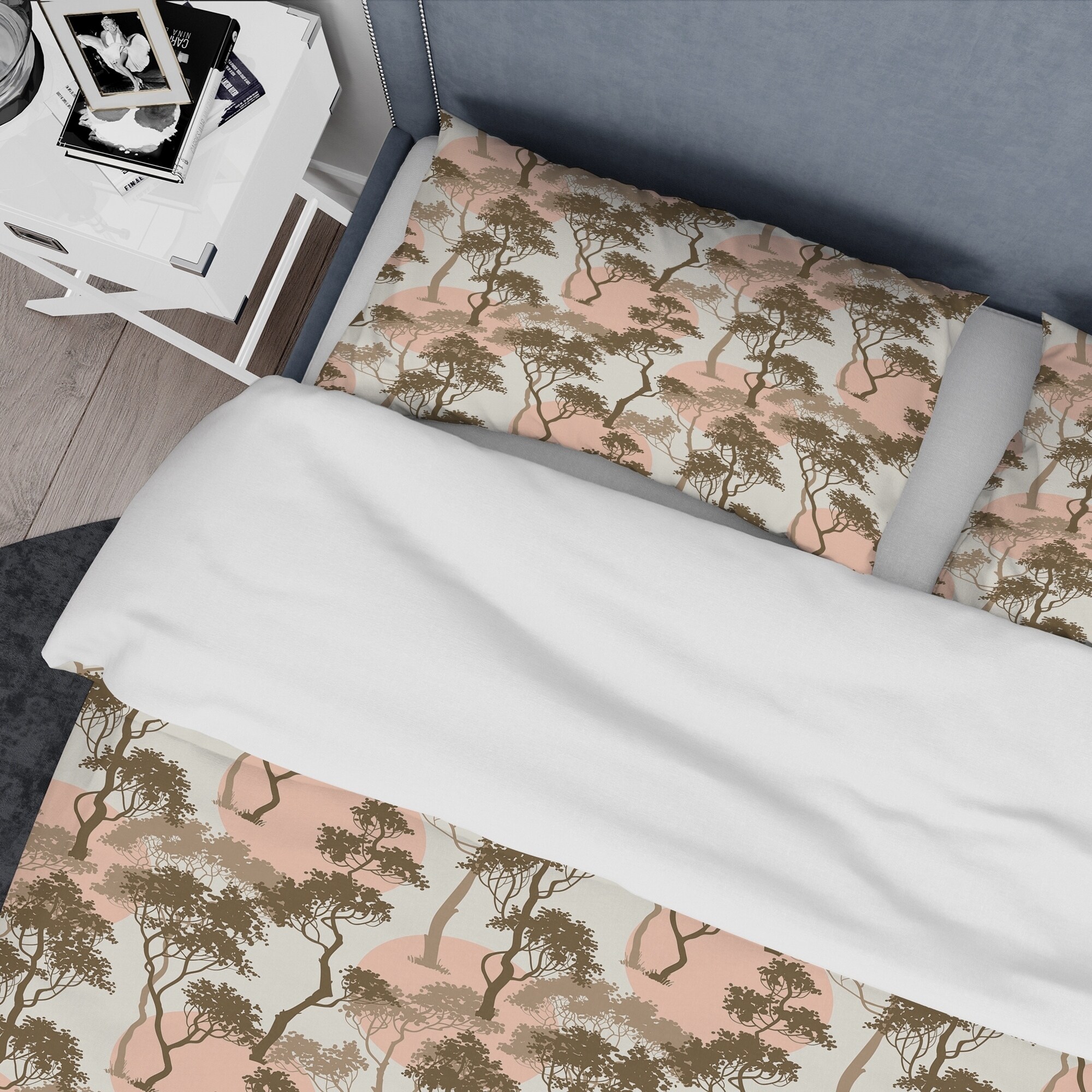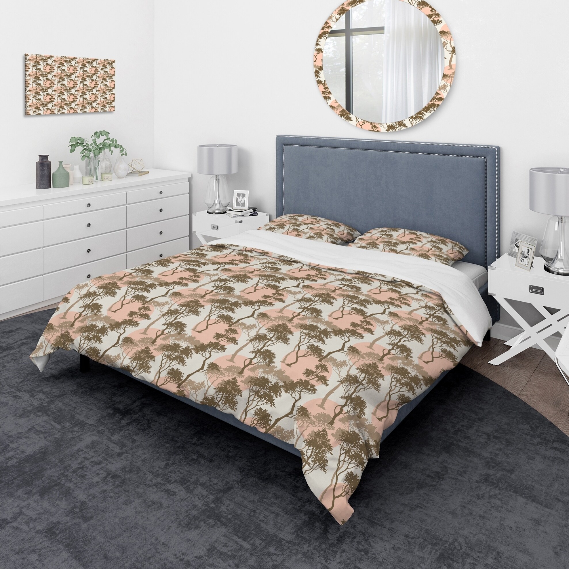 Transform your bedroom into a calming oasis with the Designart 'Trees Under The Full Moon in Forest' Abstract Bedding Set. Made from high-density Italian ink and 100% microfiber polyester, this set is ultra-soft and wrinkle-resistant, ensuring you have a comfortable night's sleep. The Forest bed set comes complete with one duvet cover and two pillow shams, making it easy to create a stylish, cohesive look in your bedroom. Available in twin, queen, and king sizes, this luxurious bedding set is perfect for any bedroom decor.Features: High-density Italian ink creates vibrant, long-lasting colors 100% microfiber polyester fabric is ultra-soft and lightweight with down-like comfort The Forest bed set includes one duvet cover and two standard pillow shams Elegant and soft colors add a trendy Free Shipping Over $49.99* Details Designart 'Trees Under The Full Moon in Forest' Abstract Bedding Set - Duvet Product Description: Transform your bedroom into a calming oasis with the Designart 'Trees Under The Full Moon in Forest' Abstract Bedding Set. Made from high-density Italian ink and 100% microfiber polyester, this set is ultra-soft and wrinkle-resistant, ensuring you have a comfortable night's sleep. The Forest bed set comes complete with one duvet cover and two pillow shams, making it easy to create a stylish, cohesive look in your bedroom. Available in twin, queen, and king sizes, this luxurious bedding set is perfect for any bedroom decor. Features: High-density Italian ink creates vibrant, long-lasting colors 100% microfiber polyester fabric is ultra-soft and lightweight with down-like comfort The Forest bed set includes one duvet cover and two standard pillow shams Elegant and soft colors add a trendy and fun touch to your bedroom Made in Canada Comforter inserts and pillow inserts are not included King: 1 Duvet Cover104 inches wide x 88 inches long 2 King Shams20 inches wide x 36 inches long Queen: 1 Duvet Cover88 inches wide x 88 inches long 2 Standard Shams16 inches wide x 26 inches long Twin: 1 Duvet Cover68 inches wide x 88 inches long 1 Standard Sham16 inches wide x 26 inches long Other Details: MaterialPolyester PatternAbstract ColorGreen StyleTraditional Abstract, Traditional, Abstract ReversibleNo Care InstructionsMachine wash on cold gentle cycle. Wash separately on first wash. Use only non-chlorine bleach when needed. Tumble dry low. Remove promptly.