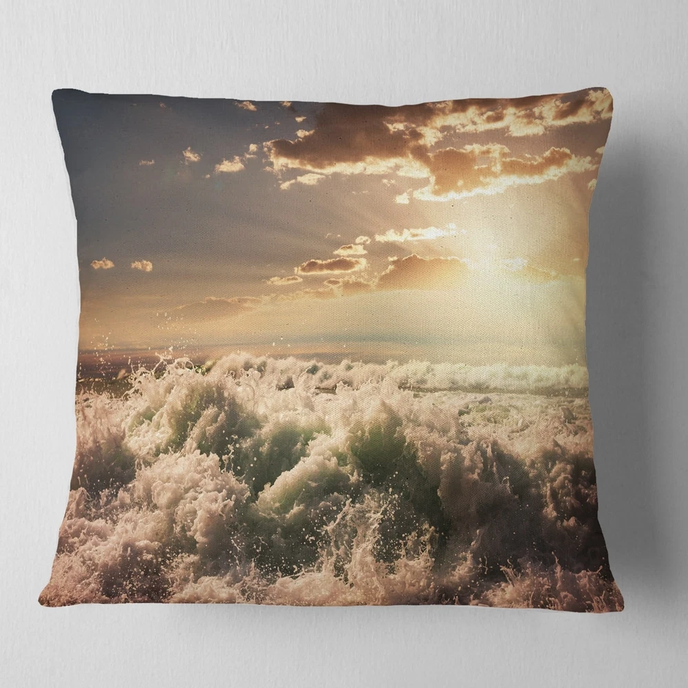 Decorative Throw Pillows for Couch Bed Sofa with Zip CoversAn easy, fun way to add a pop of color or bring new life to any room in your home or office is with these beautiful Sea & Shore throw pillows. Dress up your bed, sofa or lounger with this decorative design art pillows. Perfect as Coastal bedroom décor, lounge décor Beach living room décor. It adds a fun accent to any room. Throw pillows really do work wonders: they can transform any room from uninviting discomfort to warm and welcoming. And they really do go almost anywhere - arrange a couple on the couch or sofa, place one in your overstuffed chair for extra coziness, toss a couple on the bed and prop yourself up for a great read.These Sea & Shore pillow is printed using High Color Density Italian inks to create a vibrantly Free Shipping Over $49.99* Details Designart 'Troubled White Waves on Beach' Seascape Throw Pillow Product Description: Decorative Throw Pillows for Couch Bed Sofa with Zip Covers An easy, fun way to add a pop of color or bring new life to any room in your home or office is with these beautiful Sea & Shore throw pillows. Dress up your bed, sofa or lounger with this decorative design art pillows. Perfect as Coastal bedroom décor, lounge décor Beach living room décor. It adds a fun accent to any room. Throw pillows really do work wondersthey can transform any room from uninviting discomfort to warm and welcoming. And they really do go almost anywhere - arrange a couple on the couch or sofa, place one in your overstuffed chair for extra coziness, toss a couple on the bed and prop yourself up for a great read. These Sea & Shore pillow is printed using High Color Density Italian inks to create a vibrantly colored, sharp artwork. Features: Perfect accent to any furniture piece Basic shapes with a modern graphic design twist Printed on 100% light weight polyester Cushion filled with 100% polyester fill Wrinkle resistant fabric Zip Closure so you can remove the pillow from its' cover Down-like comfort - Odorless 100% Hypoallergenic Machine Wash Cold Separately, Gently Cycle Only, No bleach, hang to dry Print on Demand with High Density Italian Ink Available in Several sizes Attribute :Coastal, Beach, Tropical Subject Sea & Shore, Nautical, Landscapes