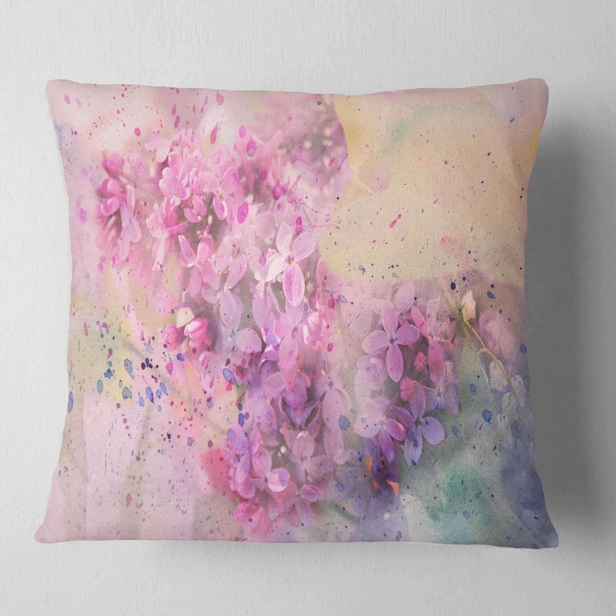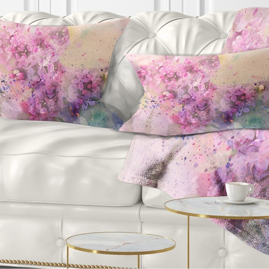Decorative Throw Pillows for Couch Bed Sofa with Zip CoversAn easy, fun way to add a pop of color or bring new life to any room in your home or office is with these beautiful Floral throw pillows. Dress up your bed, sofa or lounger with this decorative design art pillows. Perfect as Farmhouse bedroom décor, lounge décor Traditional living room décor. It adds a fun accent to any room. Throw pillows really do work wonders: they can transform any room from uninviting discomfort to warm and welcoming. And they really do go almost anywhere - arrange a couple on the couch or sofa, place one in your overstuffed chair for extra coziness, toss a couple on the bed and prop yourself up for a great read.These Floral pillow is printed using High Color Density Italian inks to create a vibrantly colored, Free Shipping Over $49.99* Details Designart 'Twig of Lilac Flowers' Floral Throw Pillow Product Description: Decorative Throw Pillows for Couch Bed Sofa with Zip Covers An easy, fun way to add a pop of color or bring new life to any room in your home or office is with these beautiful Floral throw pillows. Dress up your bed, sofa or lounger with this decorative design art pillows. Perfect as Farmhouse bedroom décor, lounge décor Traditional living room décor. It adds a fun accent to any room. Throw pillows really do work wondersthey can transform any room from uninviting discomfort to warm and welcoming. And they really do go almost anywhere - arrange a couple on the couch or sofa, place one in your overstuffed chair for extra coziness, toss a couple on the bed and prop yourself up for a great read. These Floral pillow is printed using High Color Density Italian inks to create a vibrantly colored, sharp artwork. Features: Perfect accent to any furniture piece Basic shapes with a modern graphic design twist Printed on ultra smooth and 100% light weight polyester Cushion filled with 100% polyester fill Wrinkle resistant fabric Zip Closure so you can remove the pillow from its' cover Down-like comfort - Odorless 100% Hypoallergenic Machine Wash Cold Separately, Gently Cycle Only, No bleach, hang to dry Print on Demand with High Density Italian Ink Available in Several sizes Attribute :Farmhouse, Traditional, Modern Subject Floral, Landscapes, Country Charm