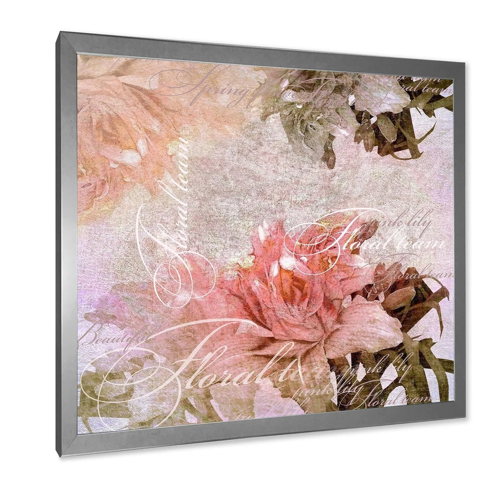 This beautiful Vintage Flowers In Pastel Colours Framed wall Art is printed using the highest quality fade resistant ink on canvas. Every one of our Framed Giclee Prints is printed on premium quality canvas, using the finest quality inks which will not fade over time and then mounted and framed on a 1.5 inch wide frame.This framed art print is available in many different color frames. All of our framed art prints are carefully packaged with corner protectors, fragile labeling, and sturdy boxes to ensure a safe delivery. Every framed art arrives ready to hang on the wall, with the hanging kit included.Features:- Style : Traditional- Subject : Floral- Color : Pink- Premium quality cotton canvas mounted.- Available in several frame colors. - Arrives with instructions and hanging kit Free Shipping Over $49.99* Details Designart "Vintage Flowers In Pastel Colours" Traditional Framed Art Print Product Description: This beautiful Vintage Flowers In Pastel Colours Framed wall Art is printed using the highest quality fade resistant ink on canvas. Every one of our Framed Giclee Prints is printed on premium quality canvas, using the finest quality inks which will not fade over time and then mounted and framed on a 1.5 inch wide frame. This framed art print is available in many different color frames. All of our framed art prints are carefully packaged with corner protectors, fragile labeling, and sturdy boxes to ensure a safe delivery. Every framed art arrives ready to hang on the wall, with the hanging kit included. Features: - Style Traditional - Subject Floral - Color Pink - Premium quality cotton canvas mounted. - Available in several frame colors. - Arrives with instructions and hanging kit
